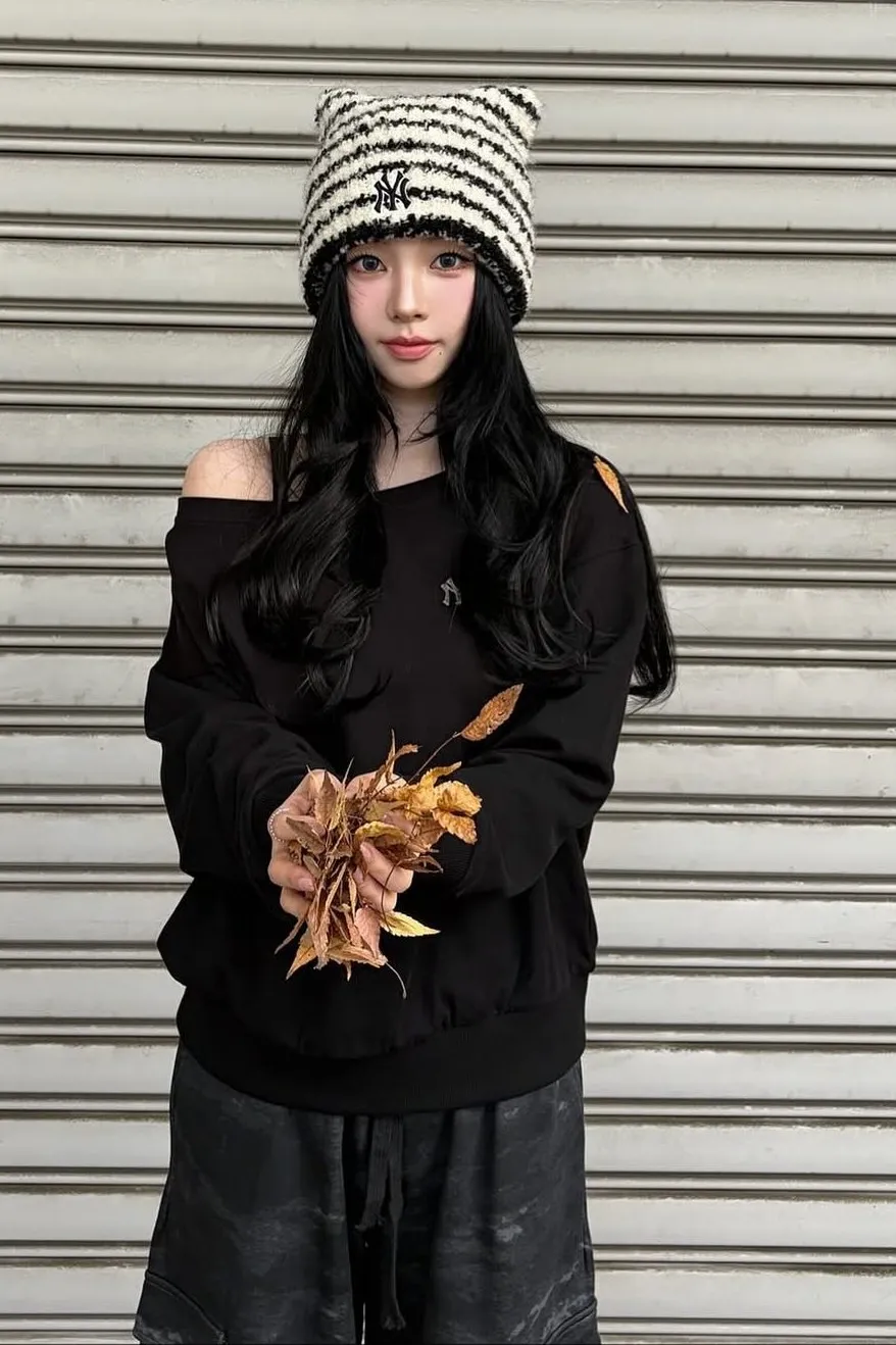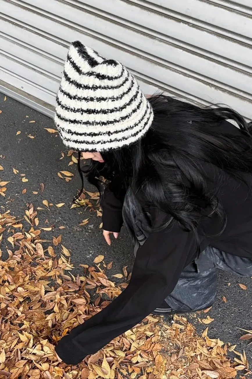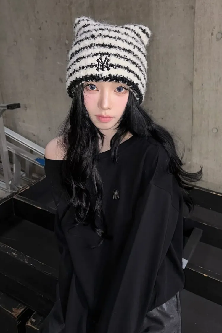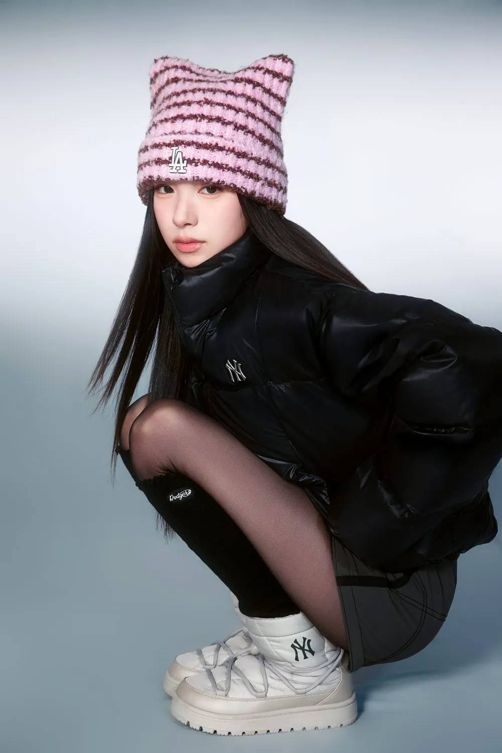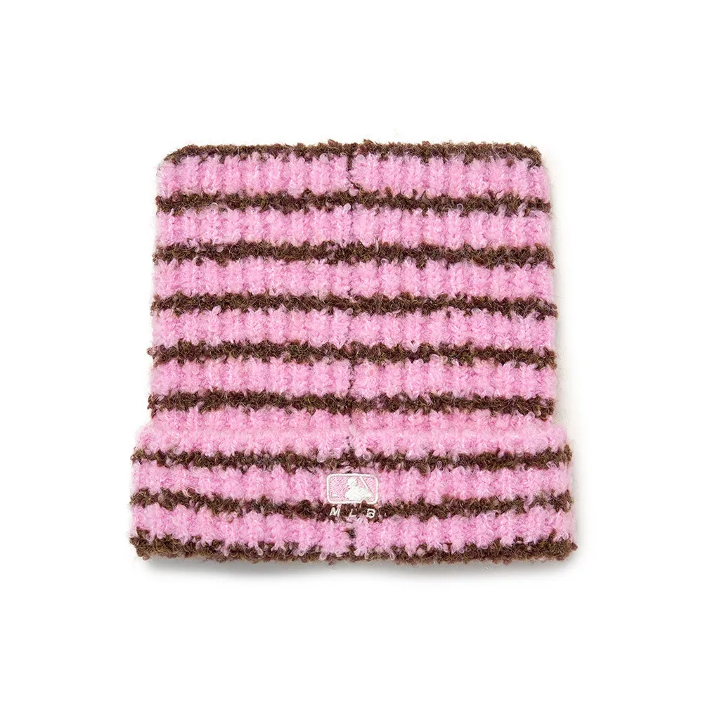 MLB001毛毛條紋貓耳針織毛帽 米 粉 原價$1280 售價$850