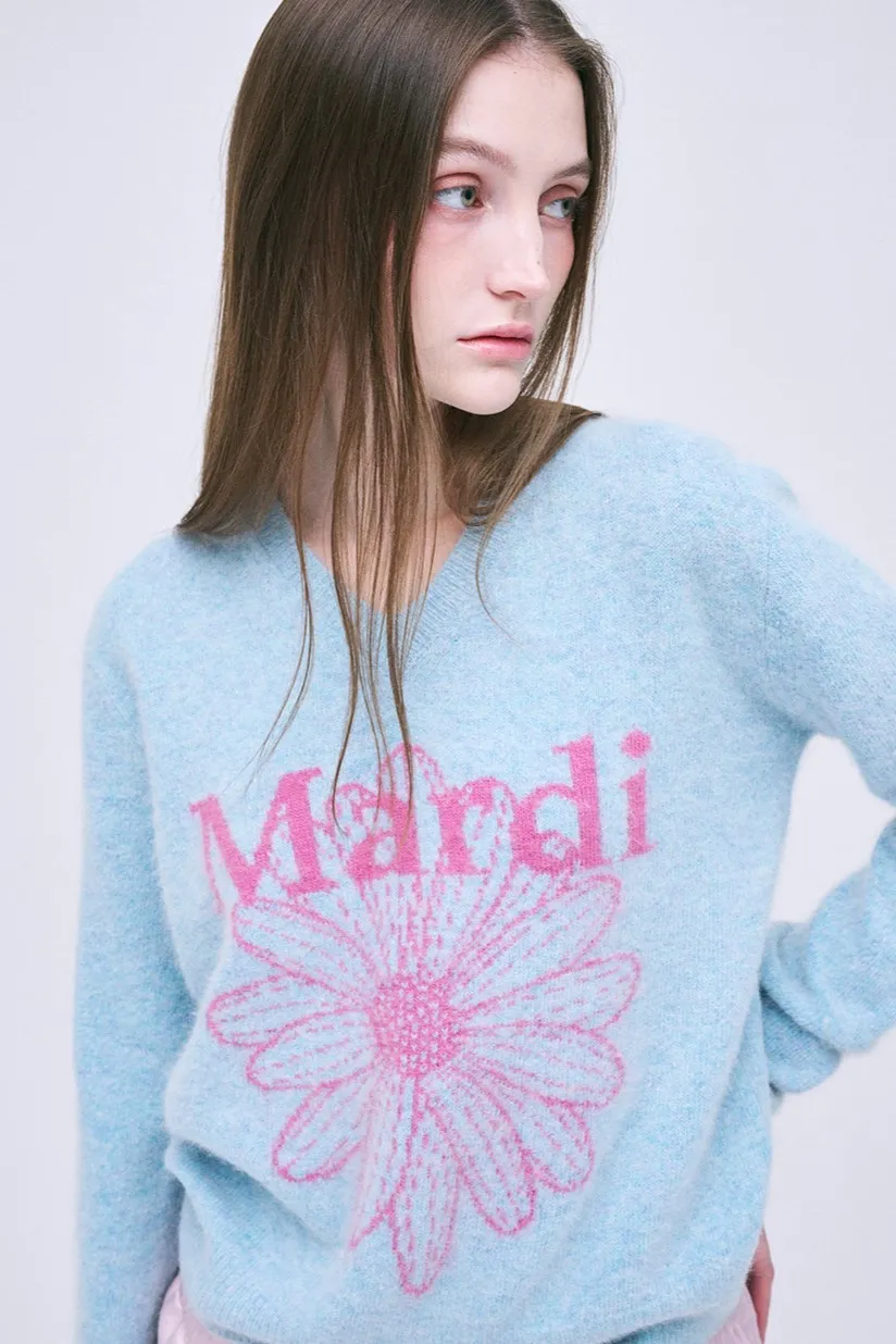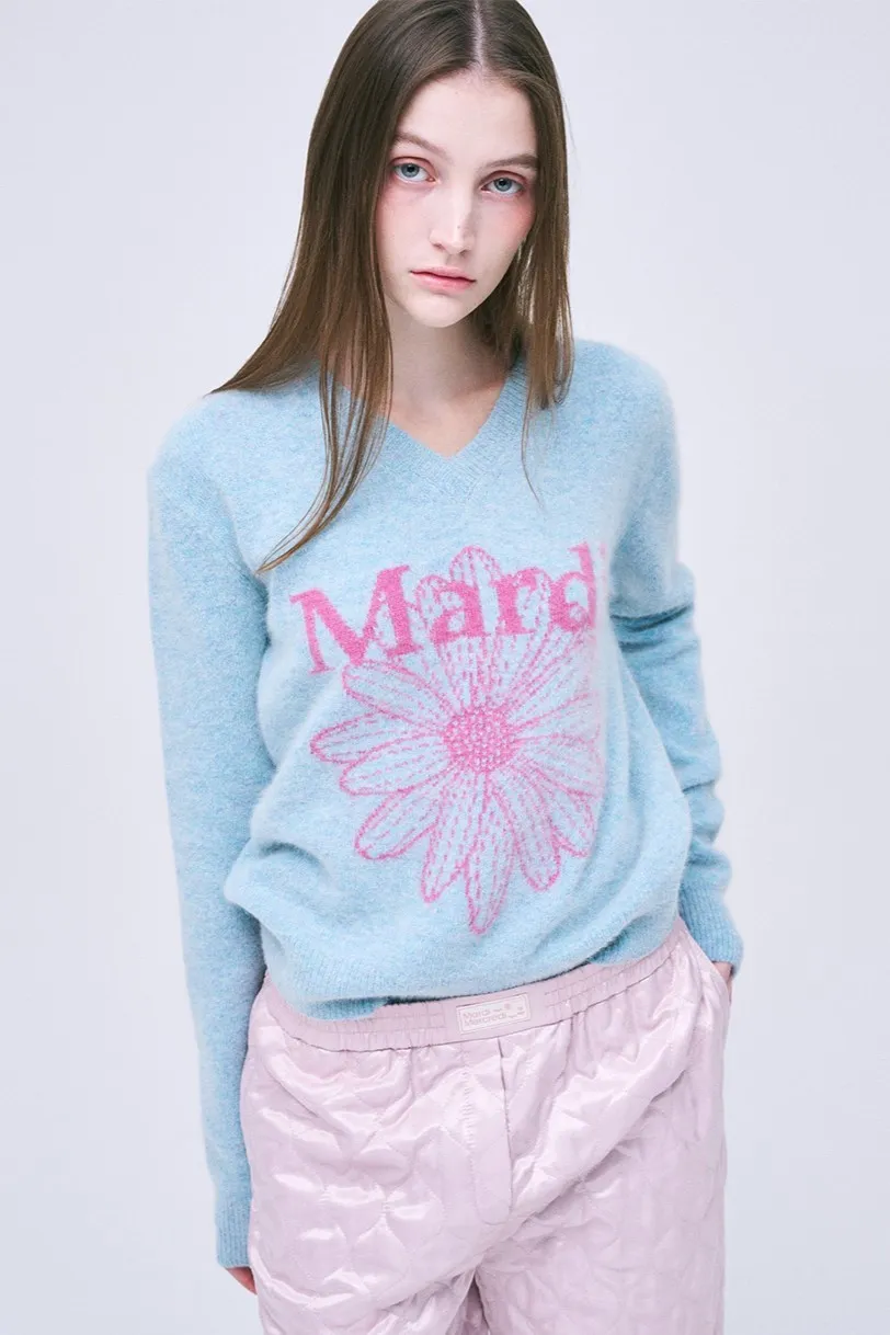 Mard017特價mardi浣熊毛V領藍粉針織衫