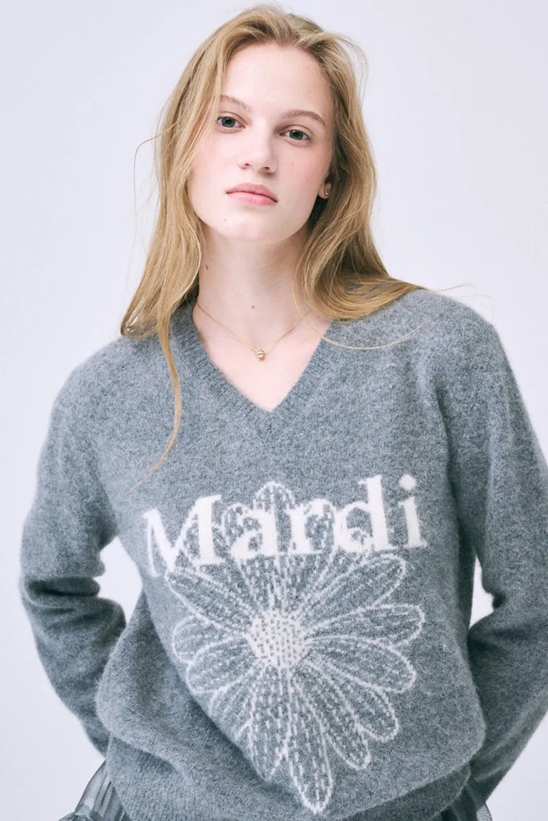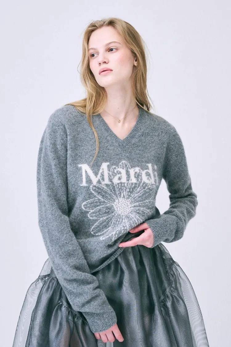 Mard019特價mardi浣熊毛V領灰米針織衫