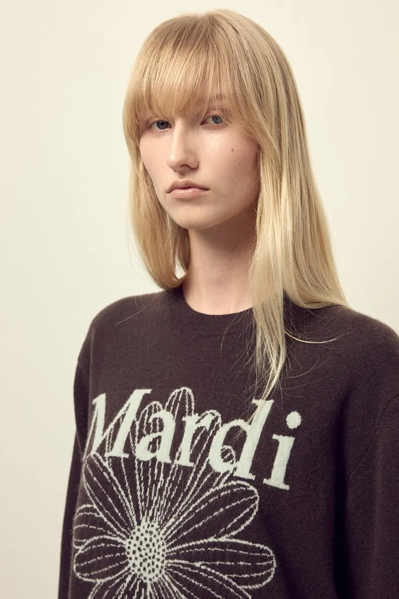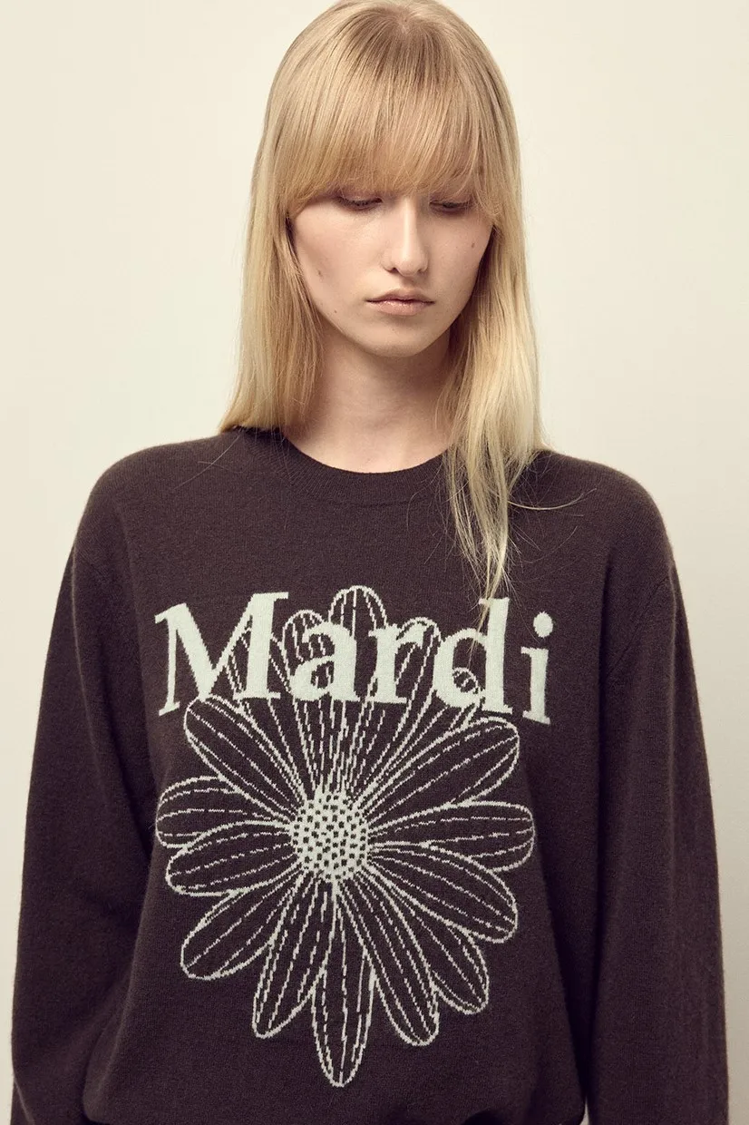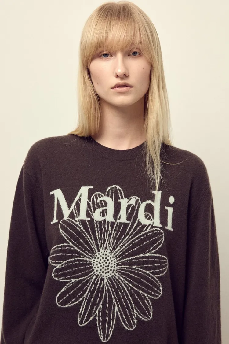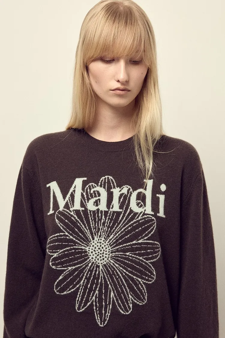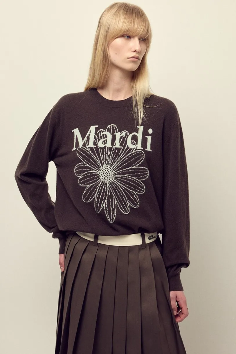 Mard021特價mardi羊毛花朵咖藍針織衫 原價$3680 限時特價$2750元