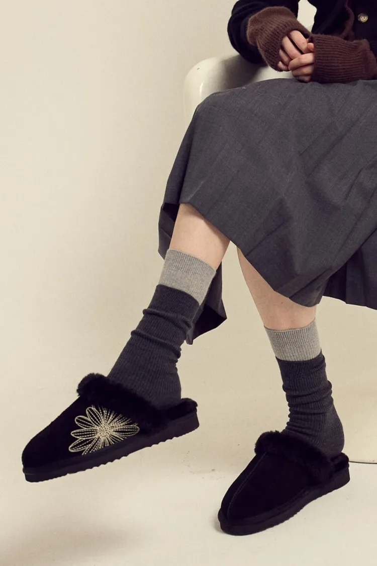 Mard023特價快閃mardi刺繡小花雪靴拖鞋(24小時收單) 原價$2000 特價$1360元