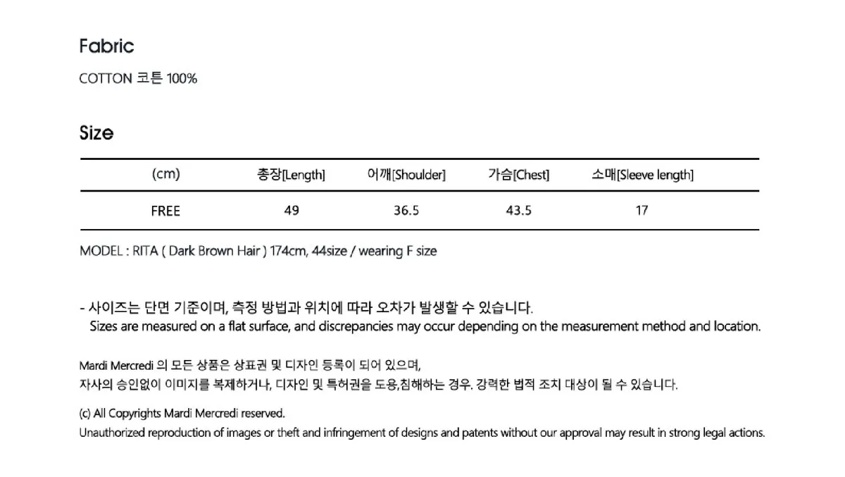 全長49肩寬36.5胸寬43.5袖長17