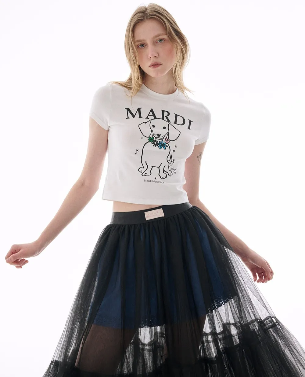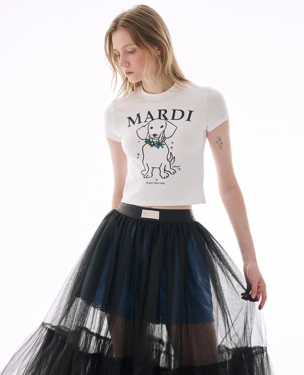 Mardi071彩色花花項鍊狗狗短版T 藍 紫 售價$1280