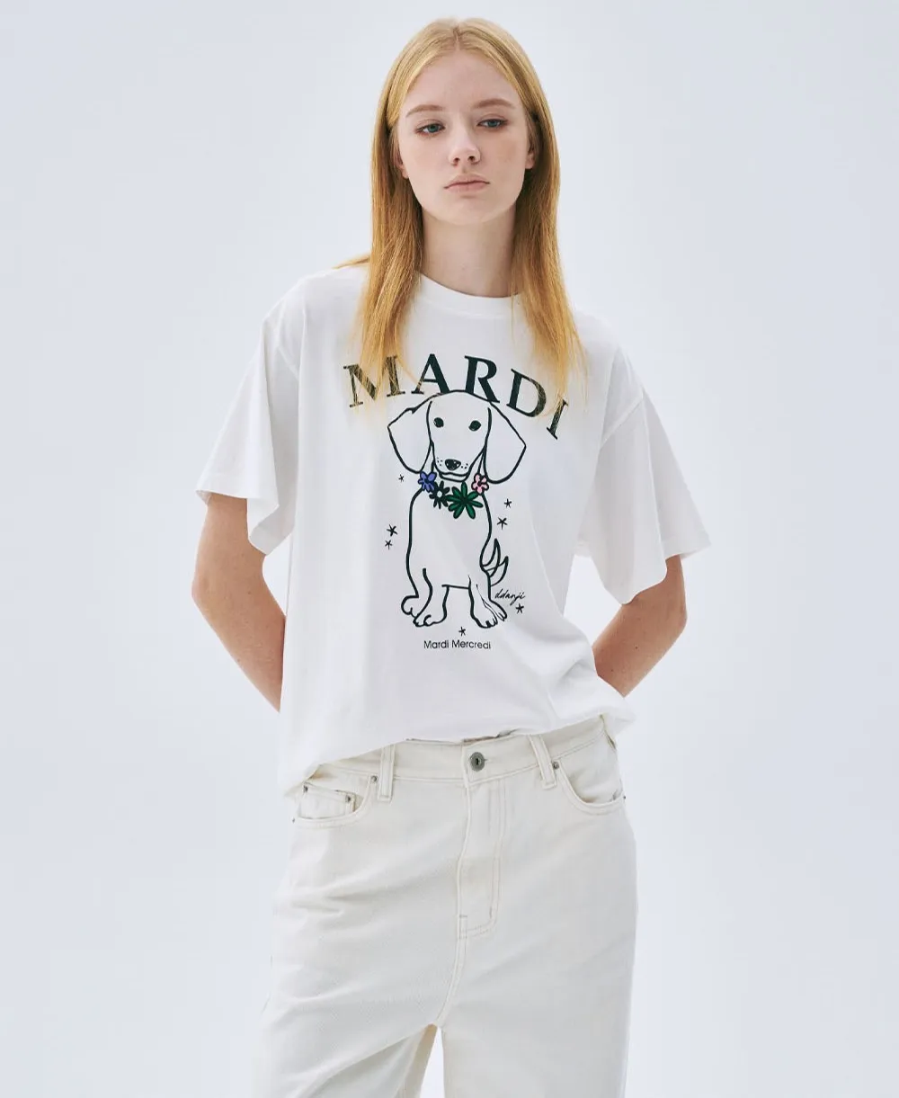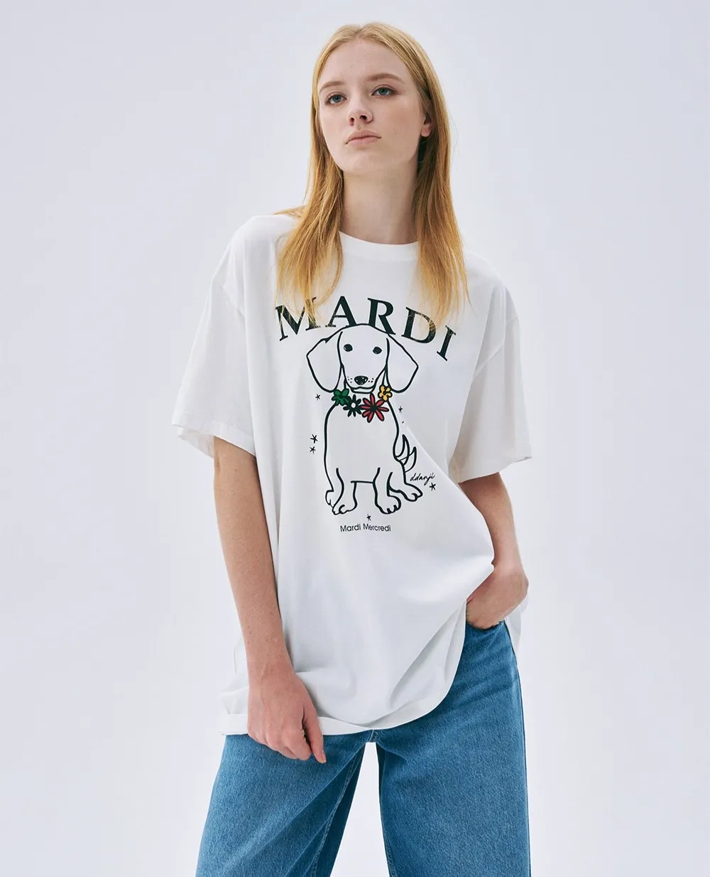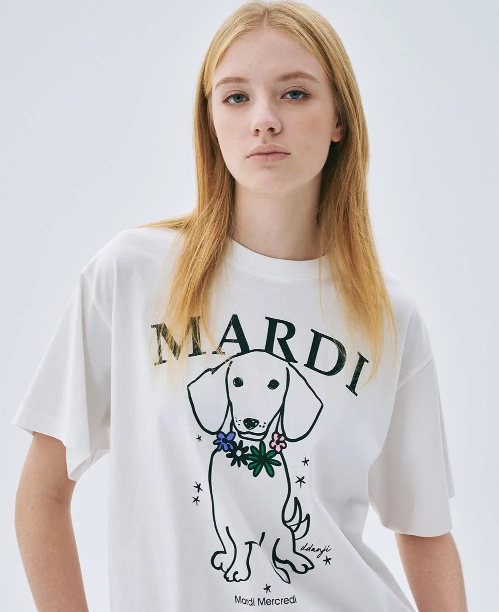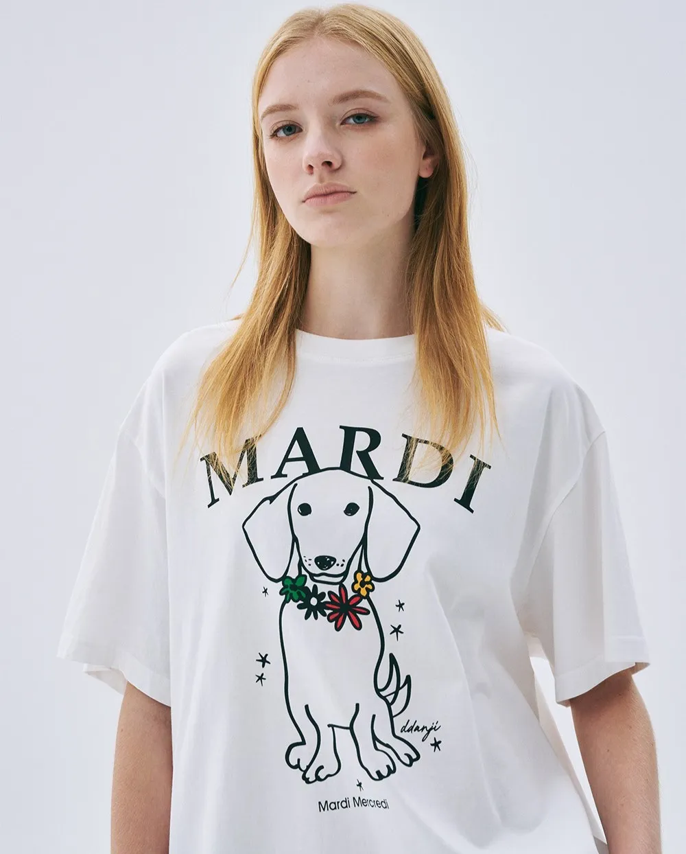 Mardi072彩色花花項鍊狗狗寬鬆Tshirt