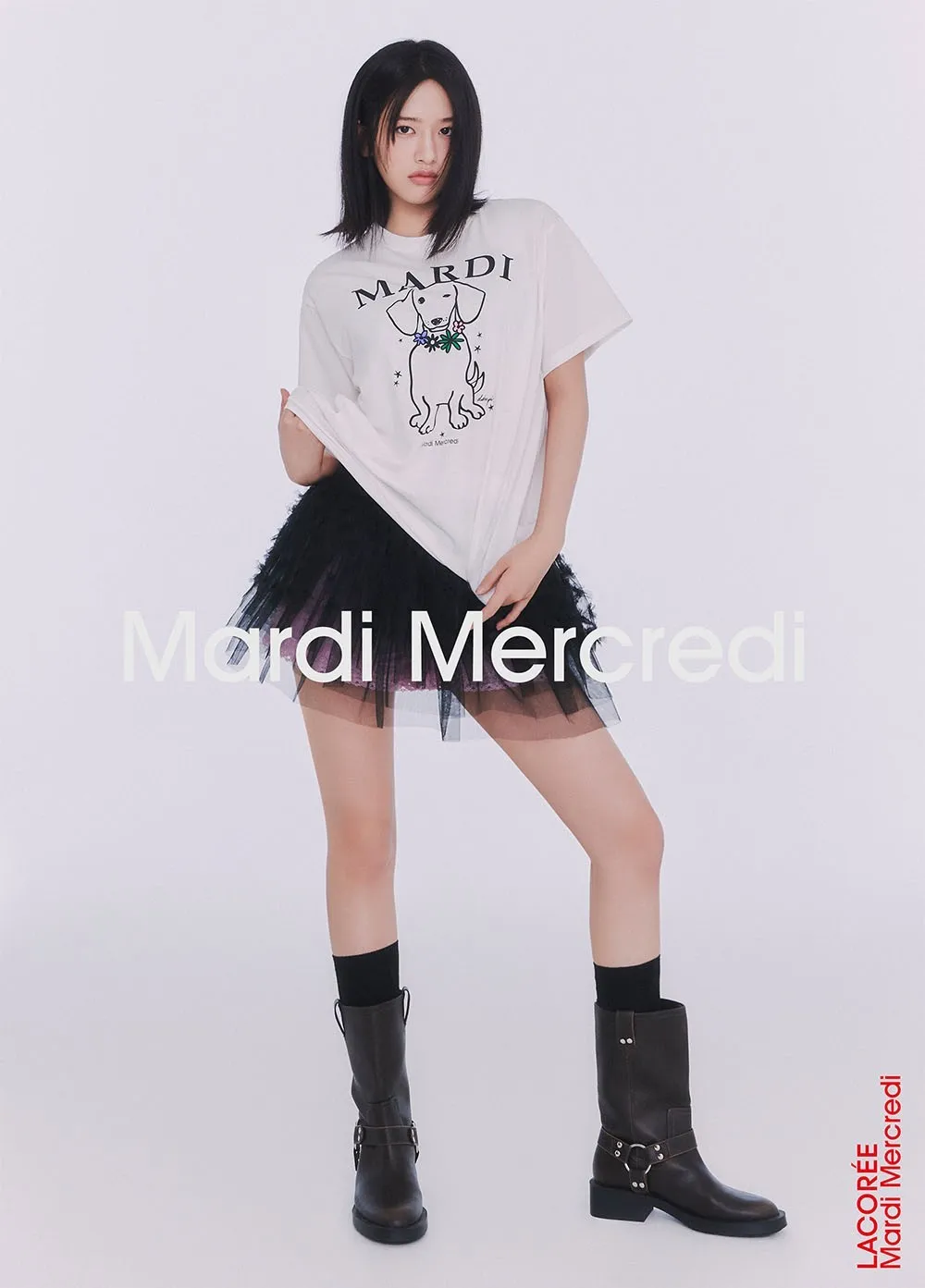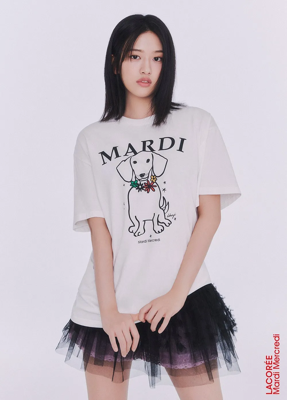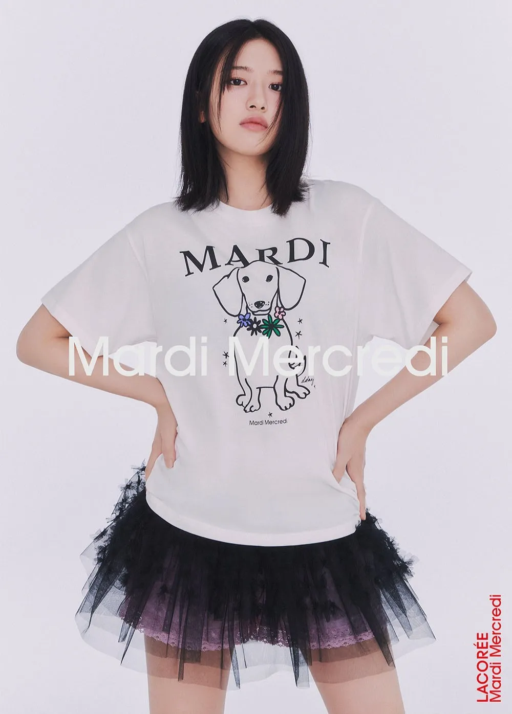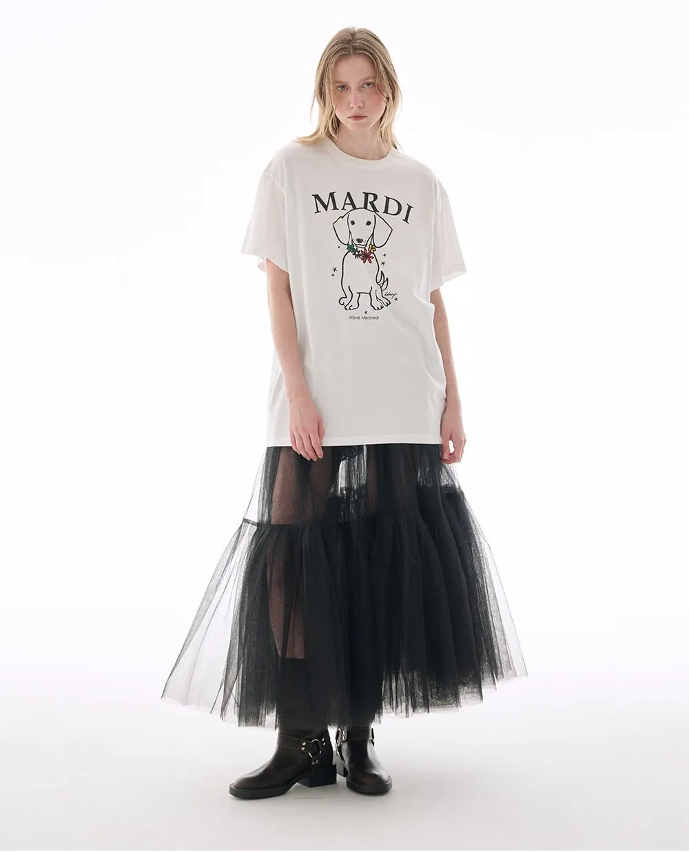 Mardi072彩色花花項鍊狗狗寬鬆Tshirt
