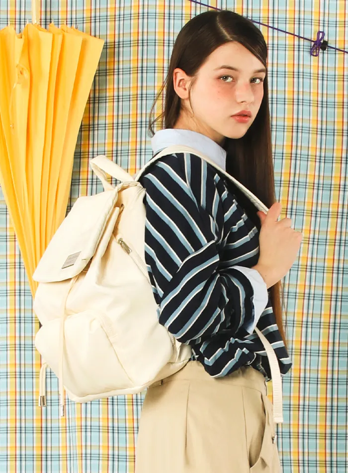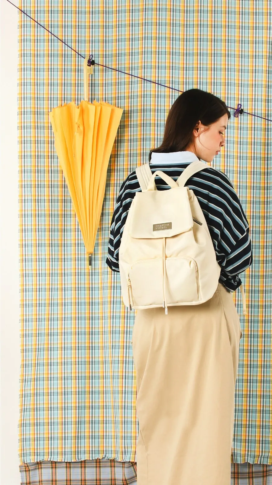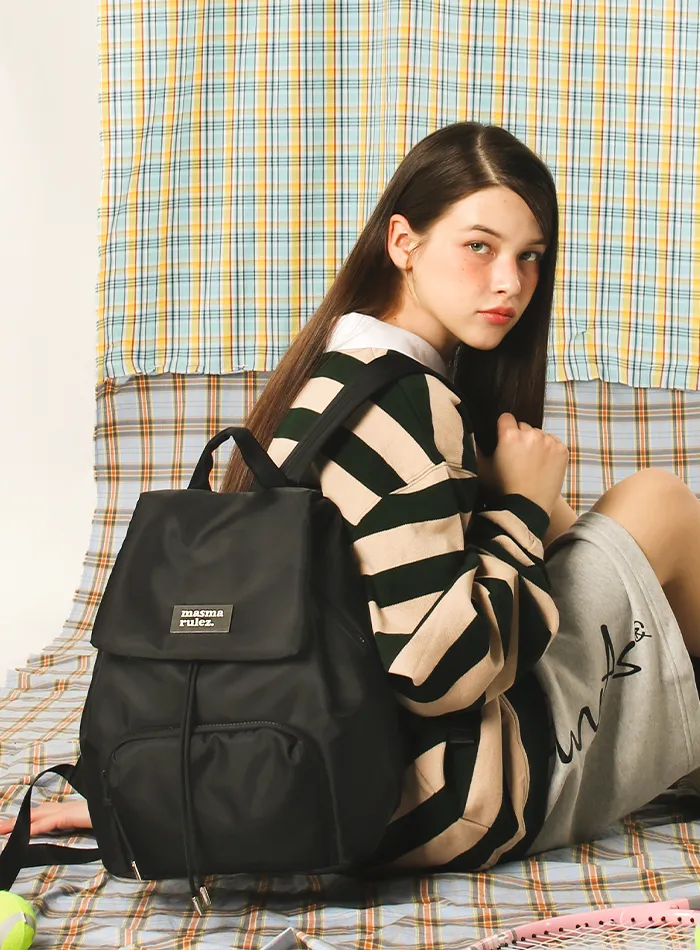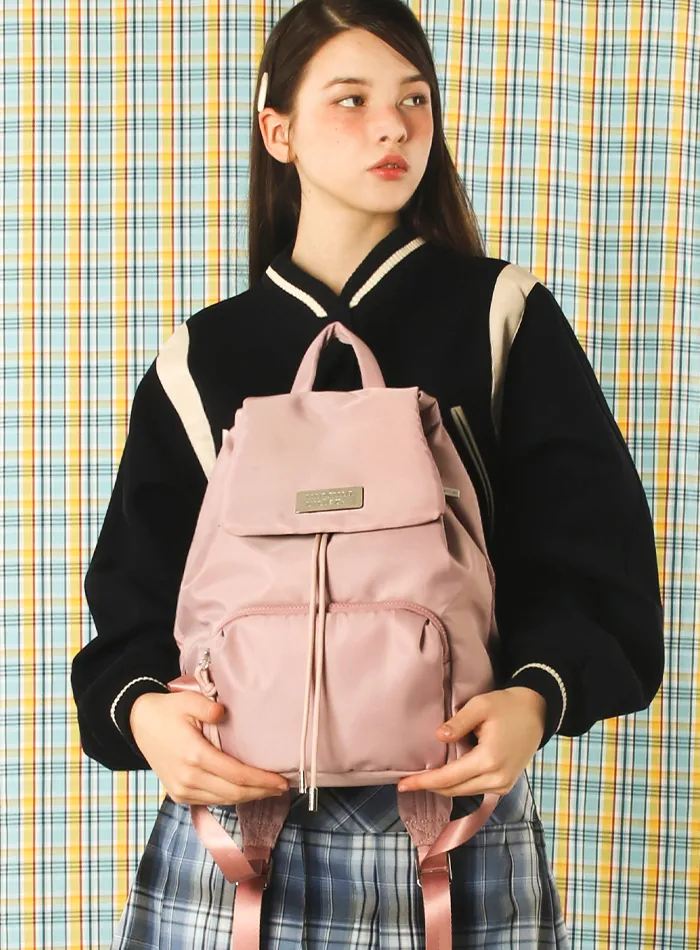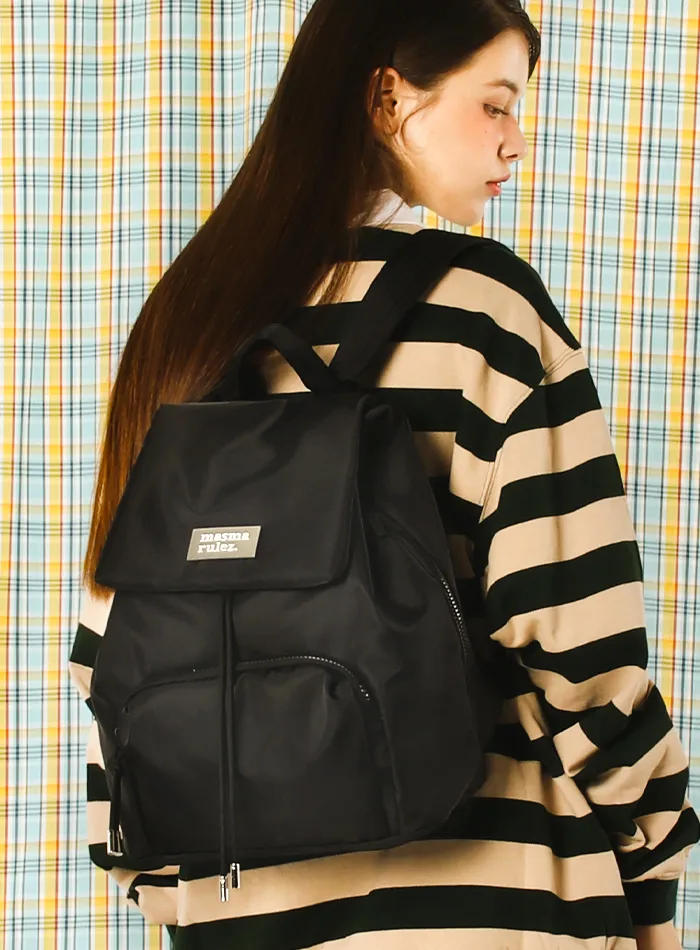 Mas004尼龍翻蓋小號後背包 黑 米 粉 售價$2650
