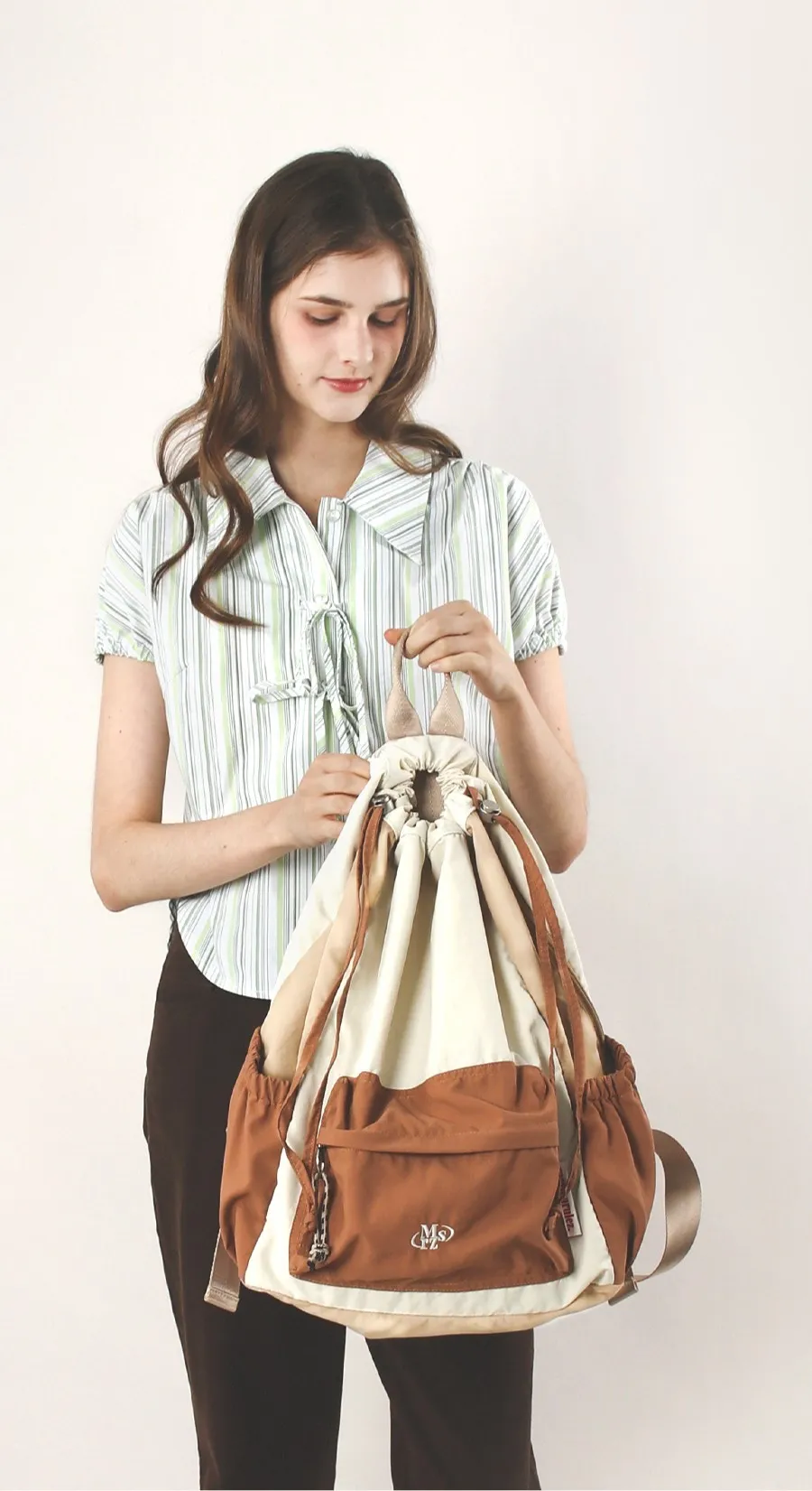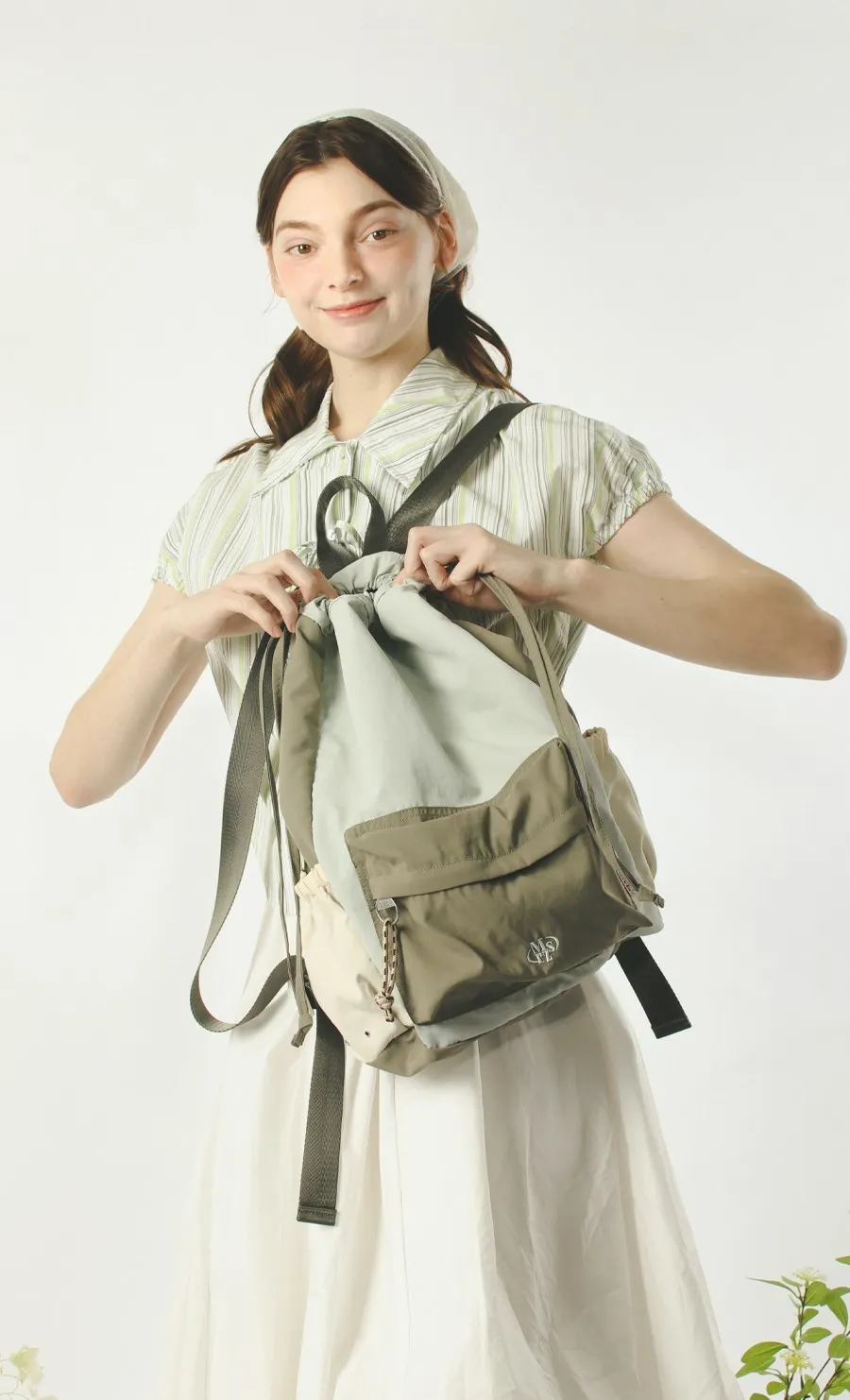 Mas006拚色輕盈縮口後背包 橘咖 黑灰 純米 粉咖 綠灰 售價$1990作為日常旅行的亮點單品,使用便利,休閒又運動的融合,蘊含品牌風格獨有的時尚單品。尼龍+聚酯防潑水尺寸(cm),長33寬15高45以下顏色,綠灰色 以下顏色,粉咖色 以下顏色,純米色 以下顏色,黑灰色 以下顏色,橘咖色