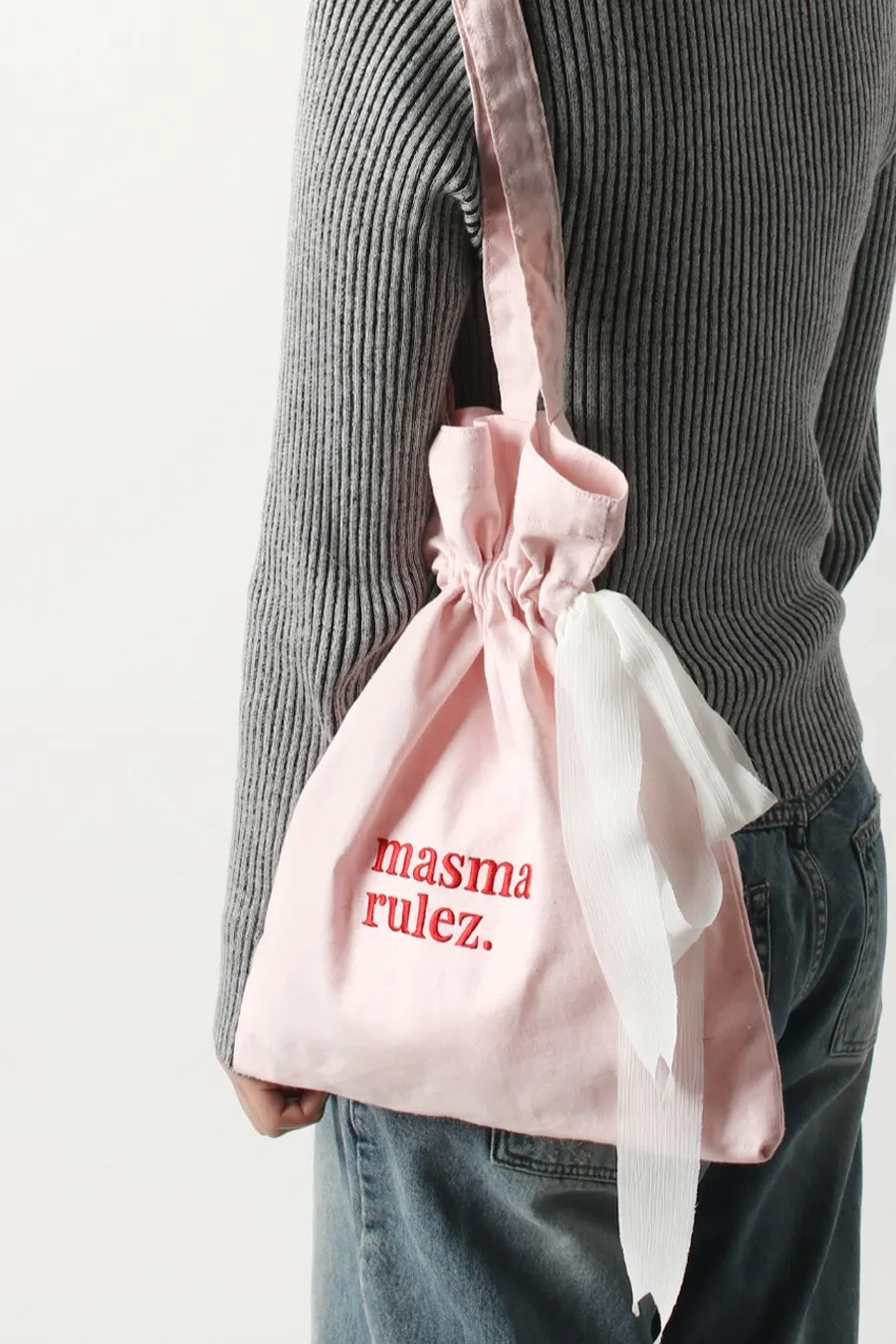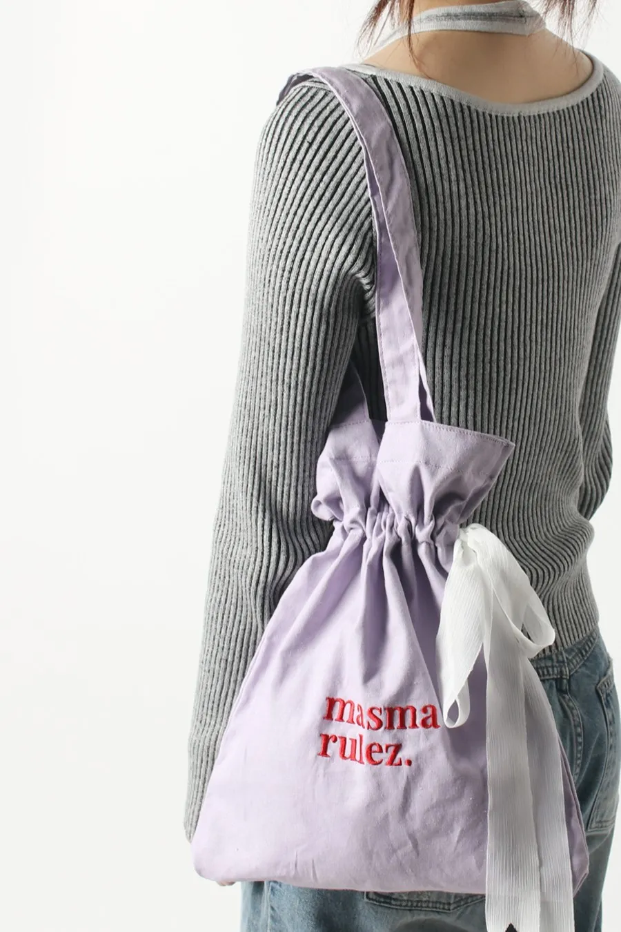 Mas009 夢幻糖果色絲帶束口提袋 米 藍 粉 紫 售價$990尺寸cm長32 高40 背帶31材質 棉可束口,可平攤絲帶點綴可愛芭蕾風有一格小內袋可以收納小物以下為紫色穿搭👇🏻 以下為米色穿搭👇🏻 以下為粉色穿搭👇🏻 以下為藍色穿搭👇🏻