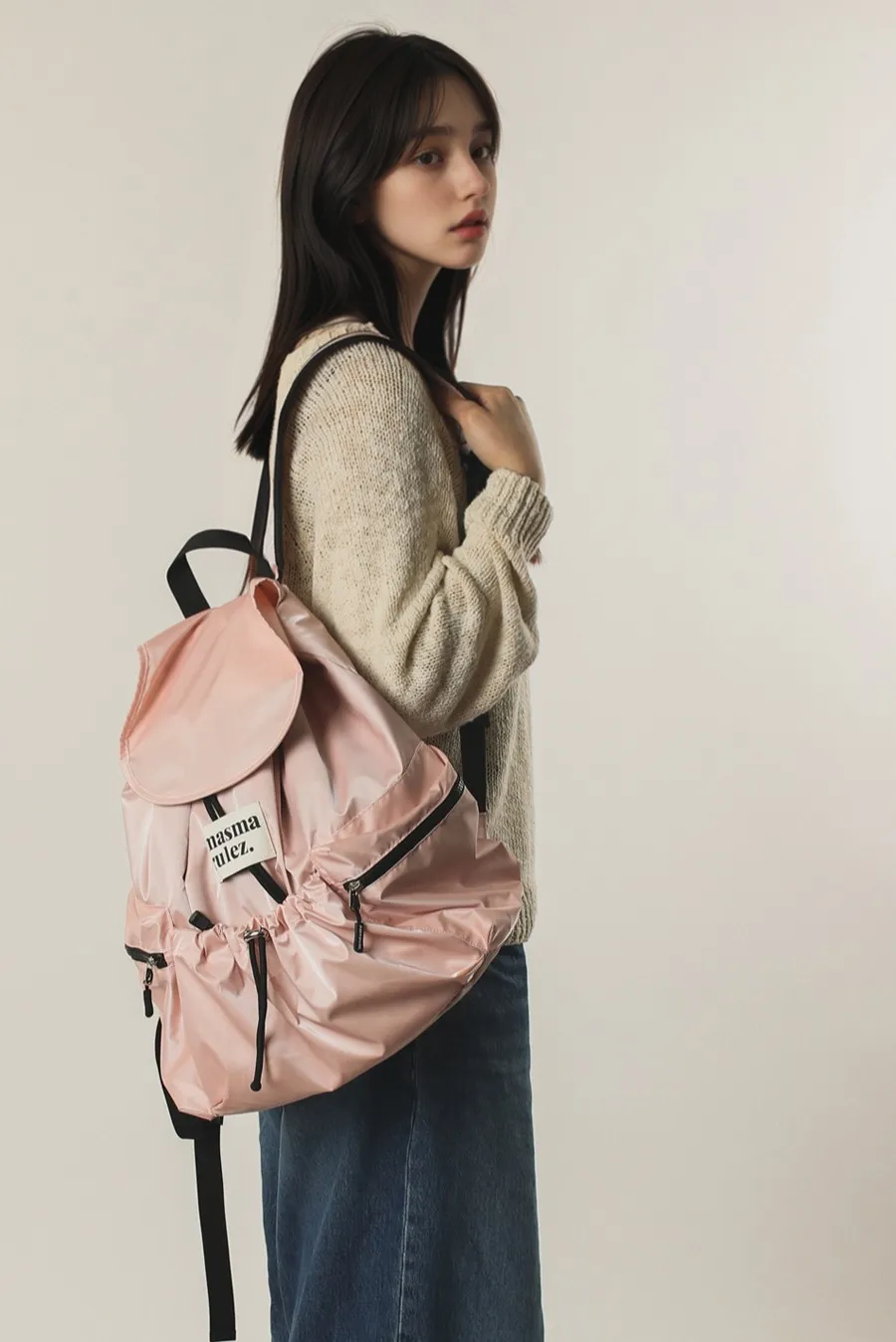 Mas010 絲綢光澤掀蓋束口厚背包 售價$1950