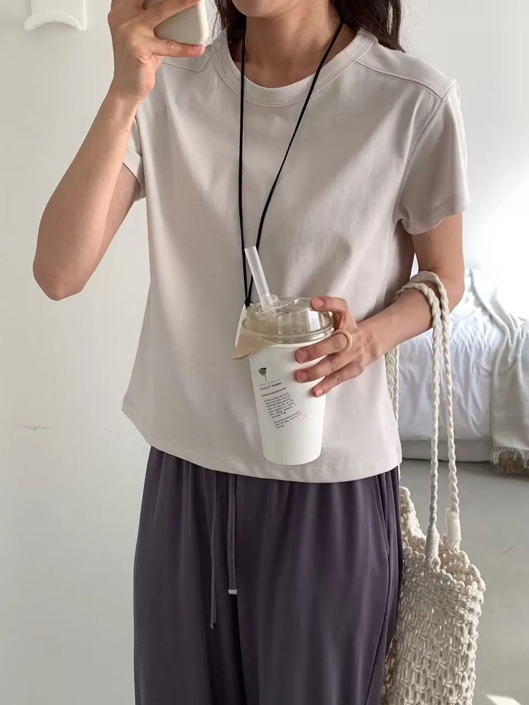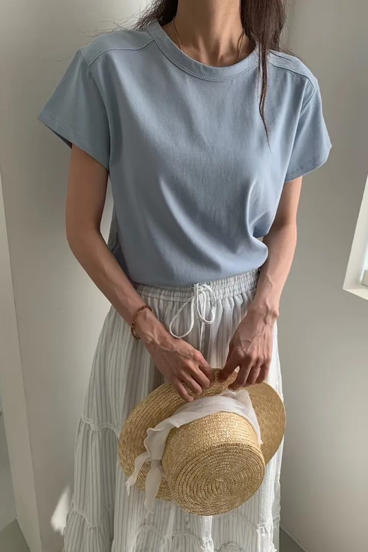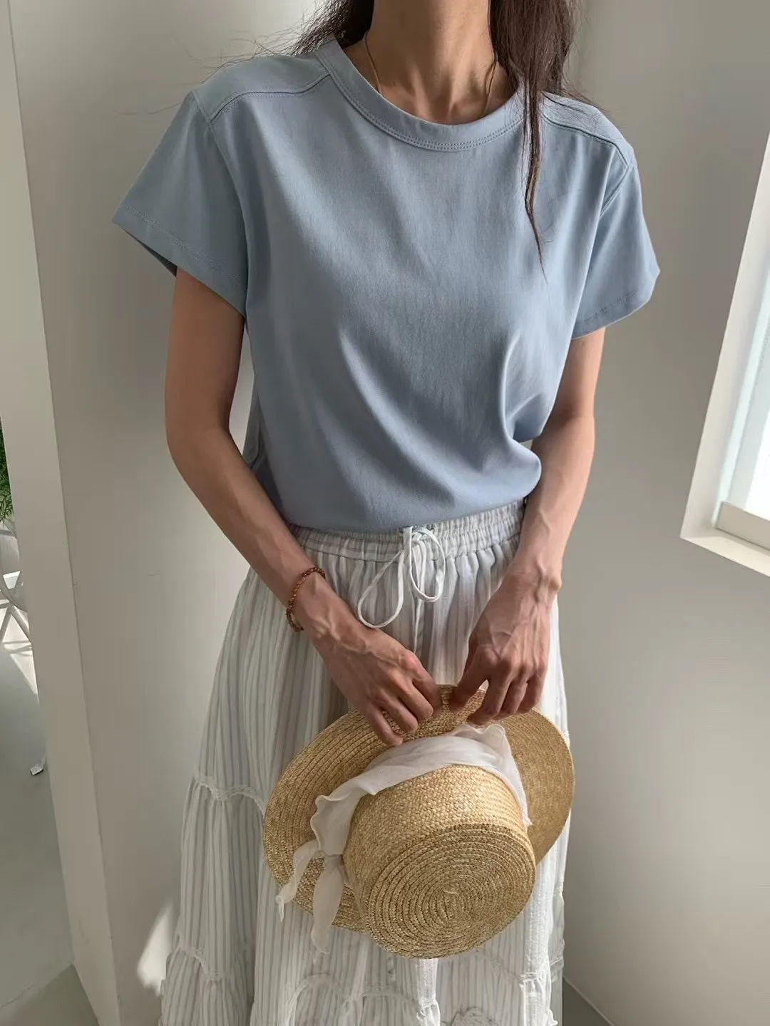 NICE074簡單好看肩線短袖Tshirt 白 米 藍 灰 黑 F M 官網價$590 線上價$560