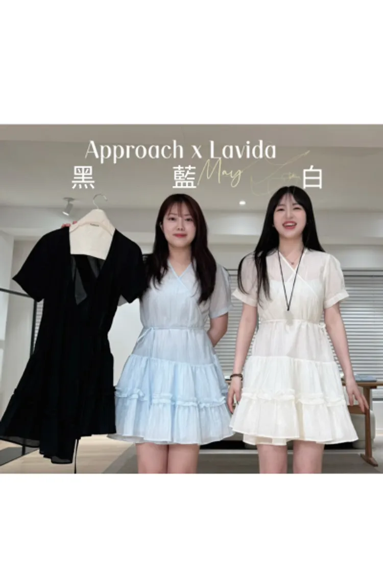 NICE078薄款透光交疊洋裝 米 藍 黑 官網價$1450 線上價$1420