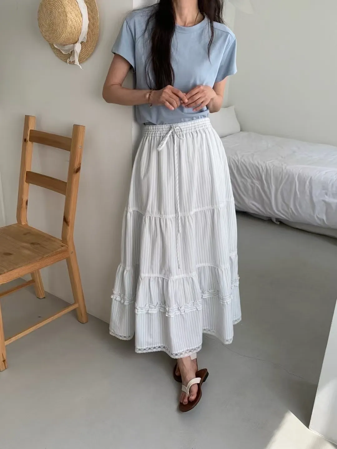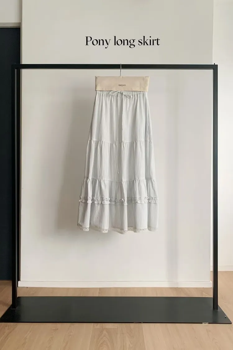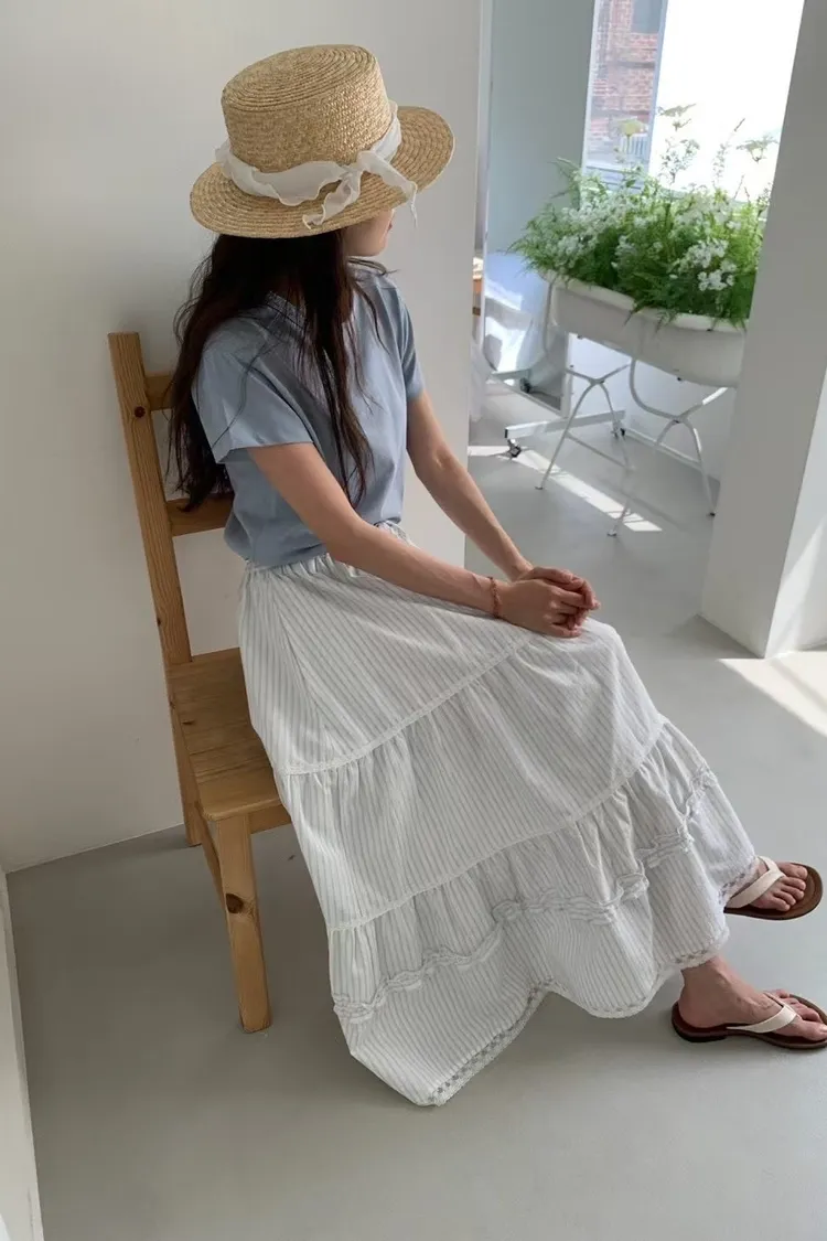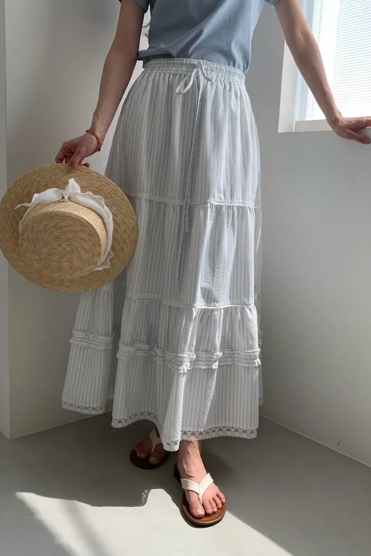 NICE079蛋糕條紋蕾絲下擺長裙 官網價$1580 線上價$1550