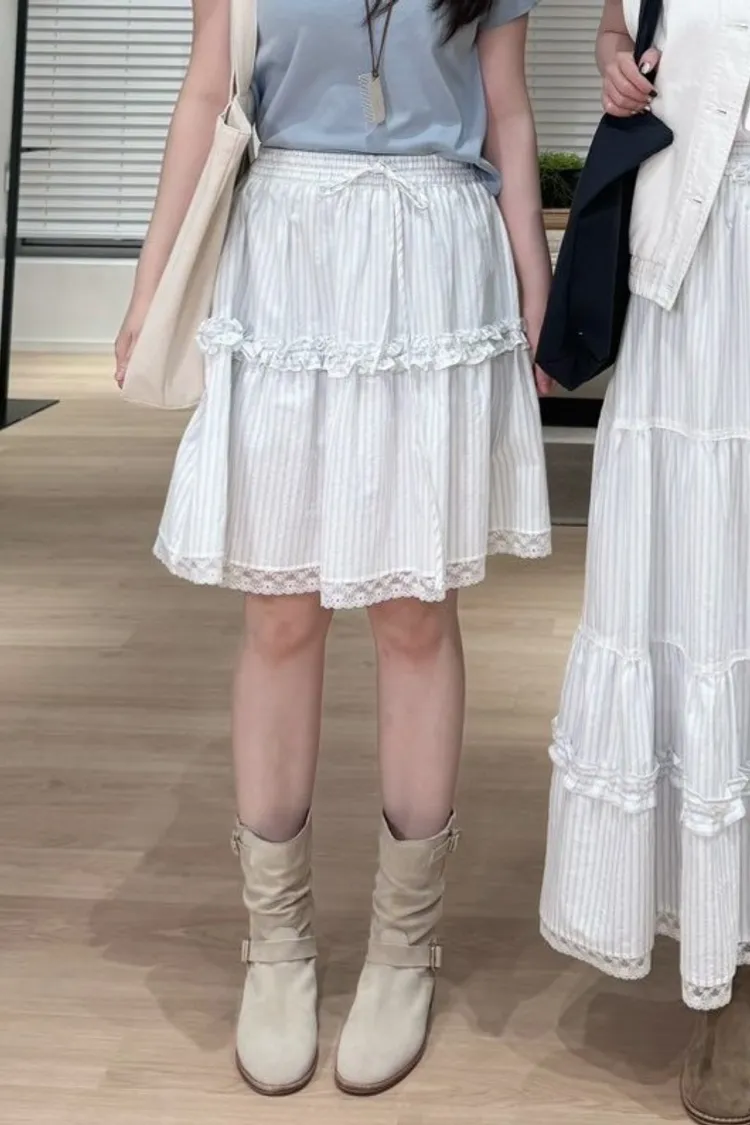 NICE080蛋糕條紋蕾絲下擺短裙 官網價$1399 線上價$1369