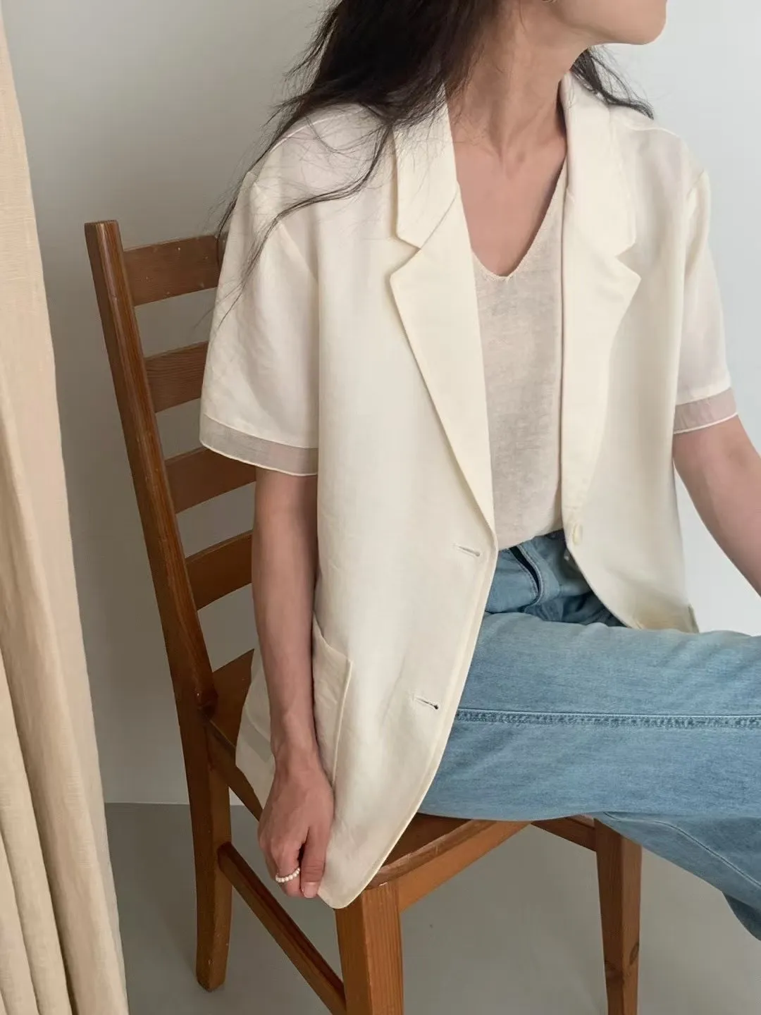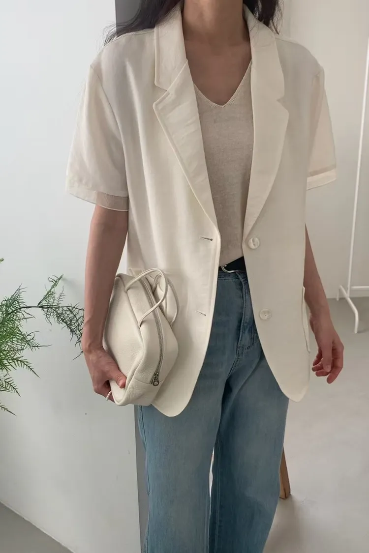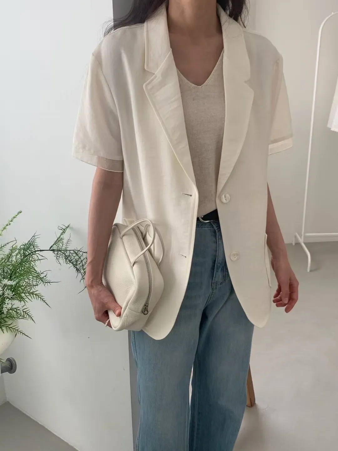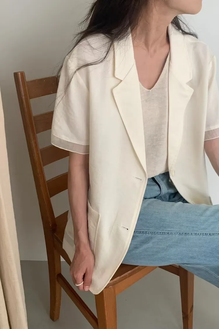 NICE086極限薄款天絲亞麻西裝外套 米 黑 官網價$1950 線上價$1920