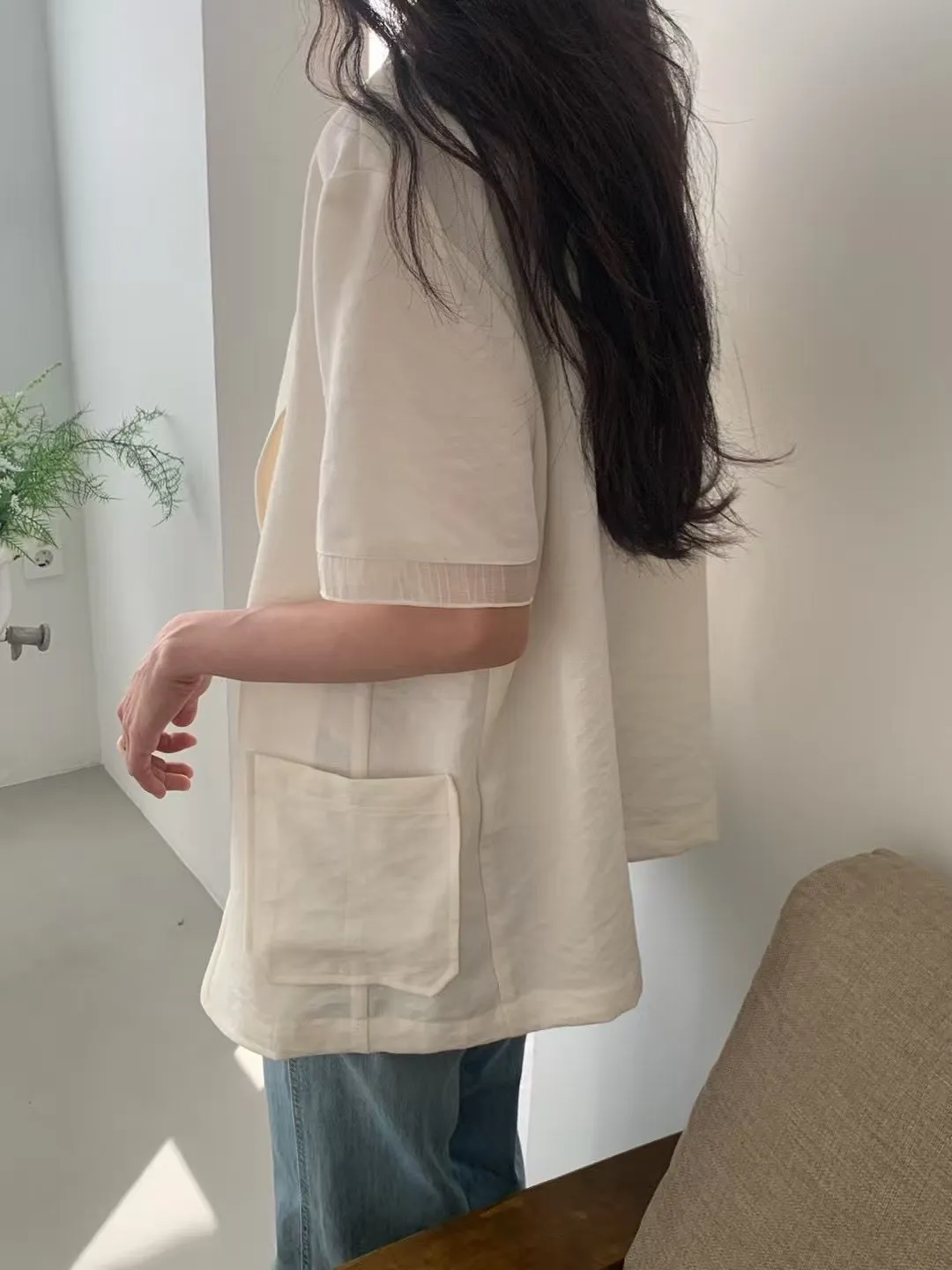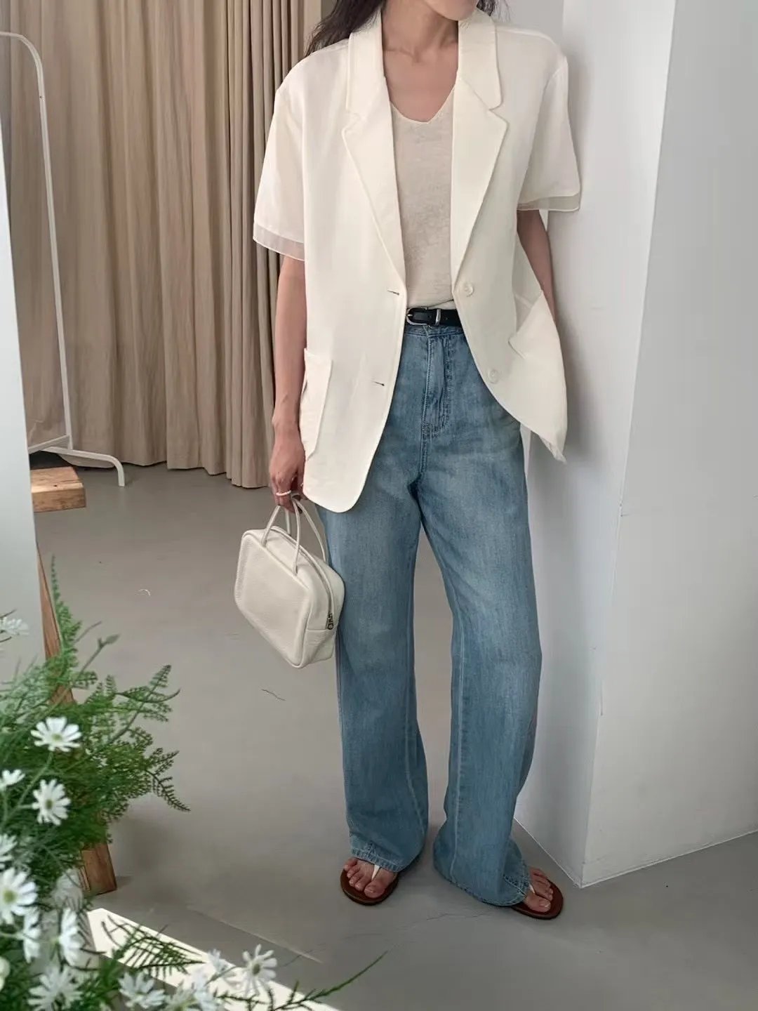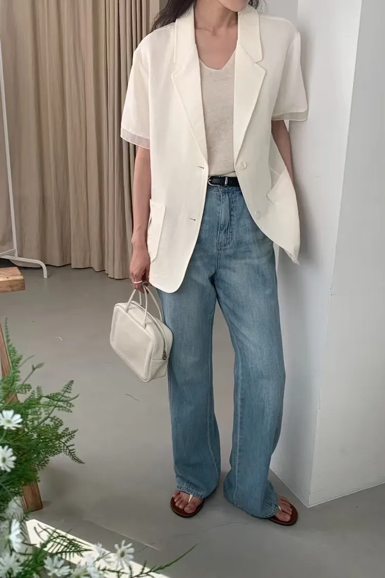 NICE086極限薄款天絲亞麻西裝外套 米 黑 官網價$1950 線上價$1920