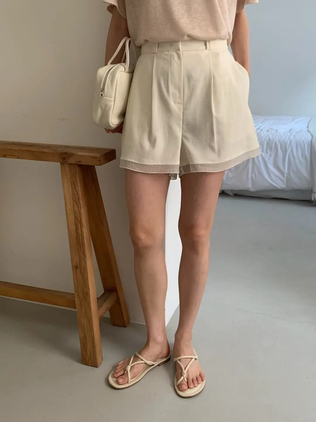NICE087極限薄款天絲亞麻西裝短褲 米 黑 S M L 官網價$1180 線上價$1150