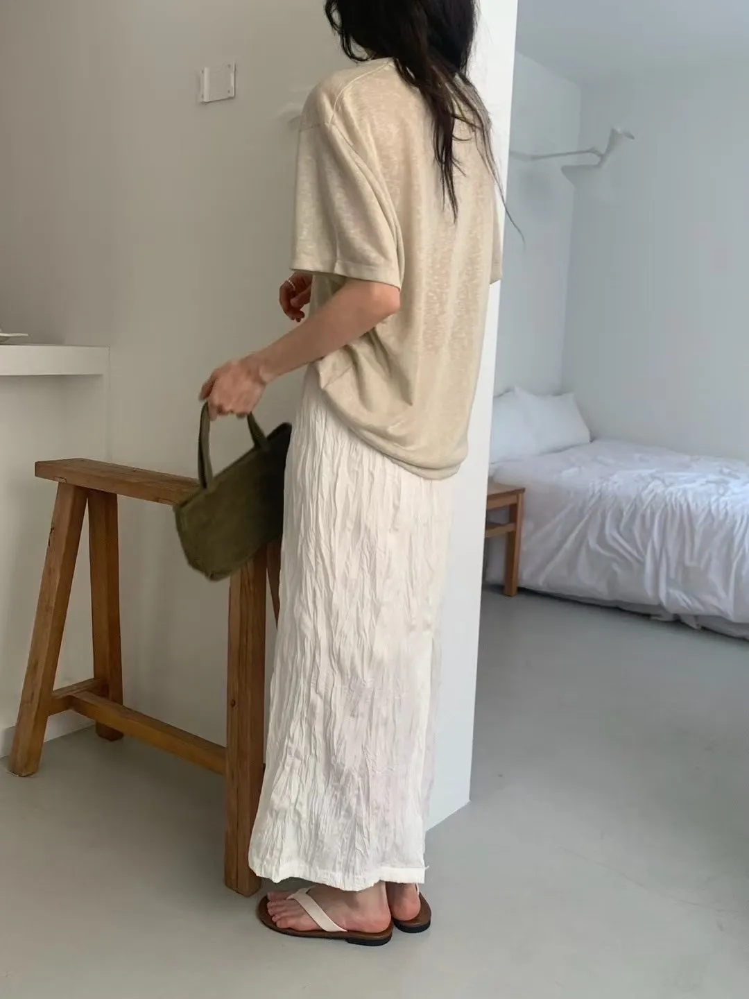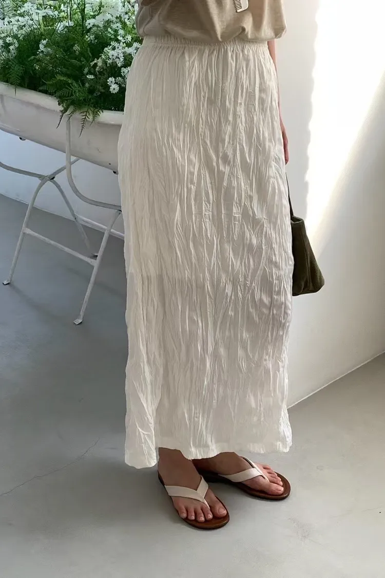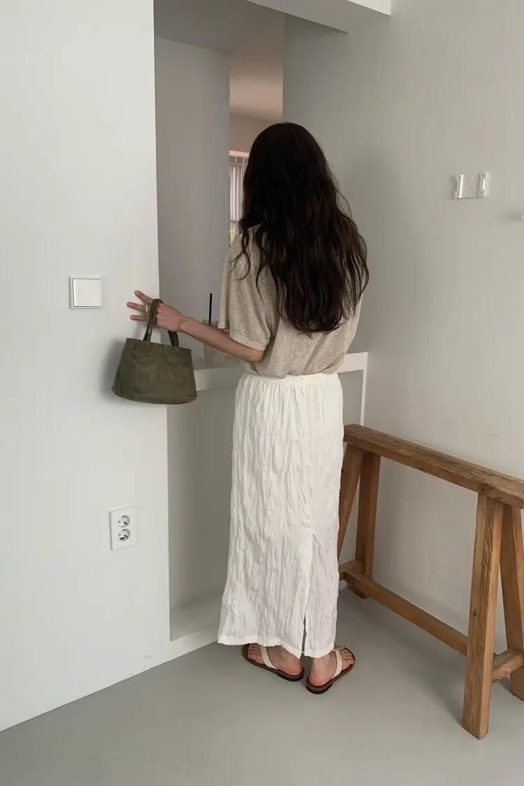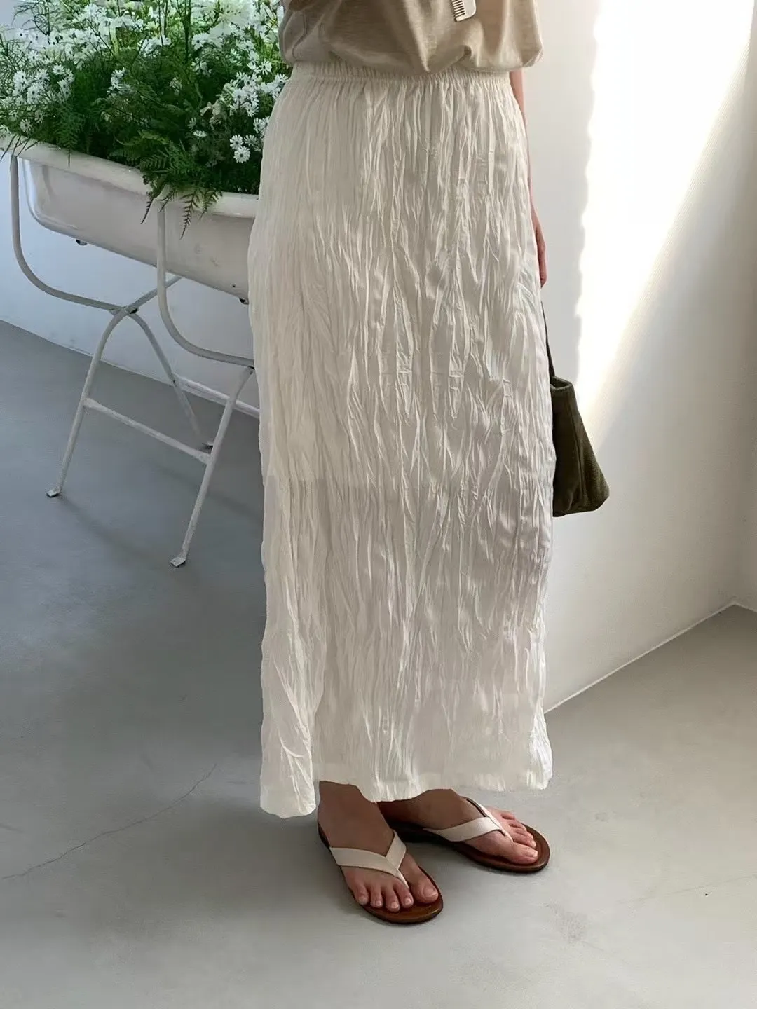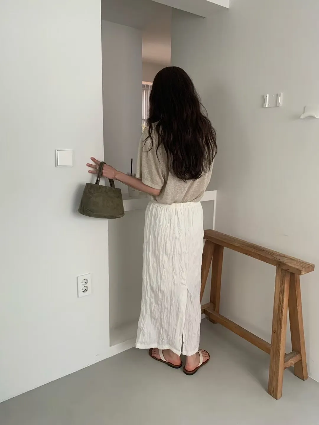 聚酯+彈力 全腰鬆緊 皺皺面料 有內裡 後開叉 無口袋