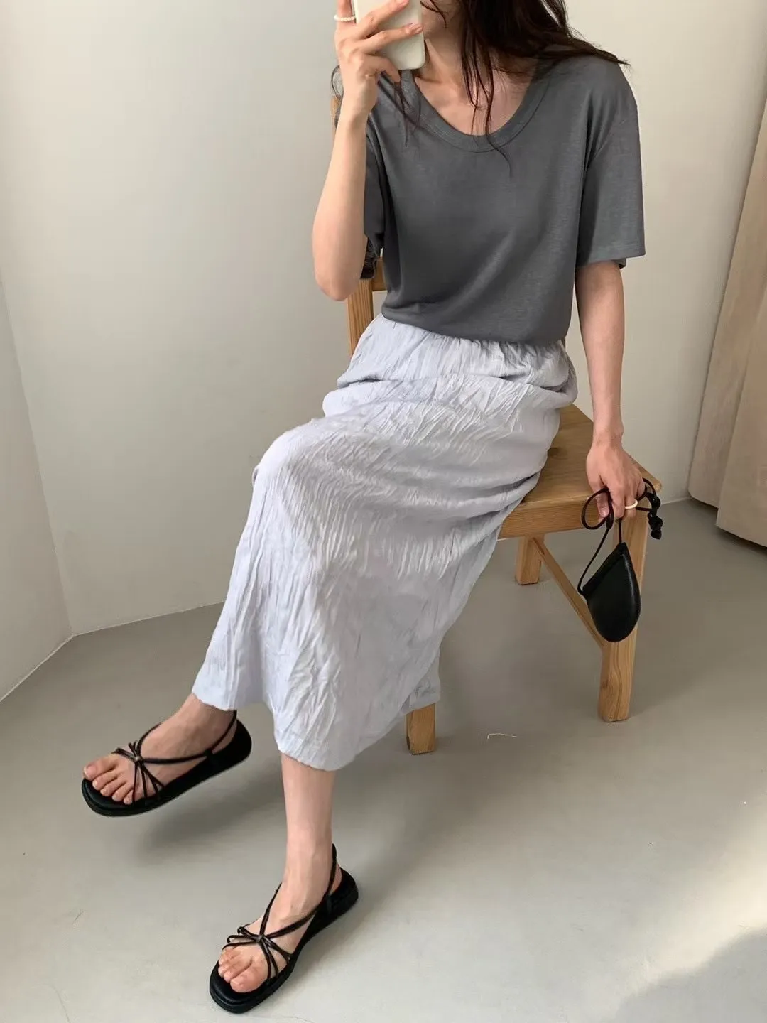 NICE089質感皺皺裙 米 灰 咖 黑S M L 官網價$929 線上價$899
