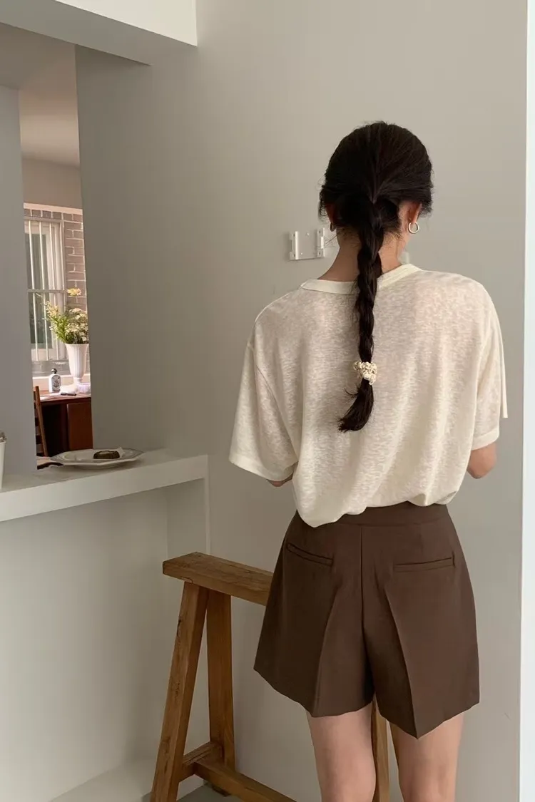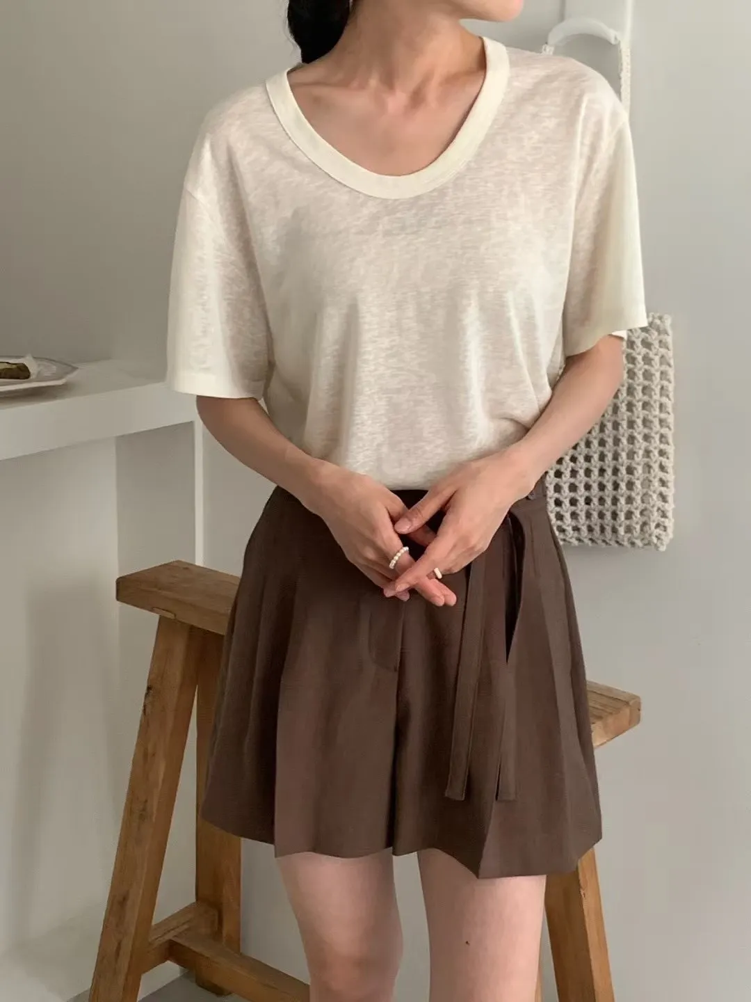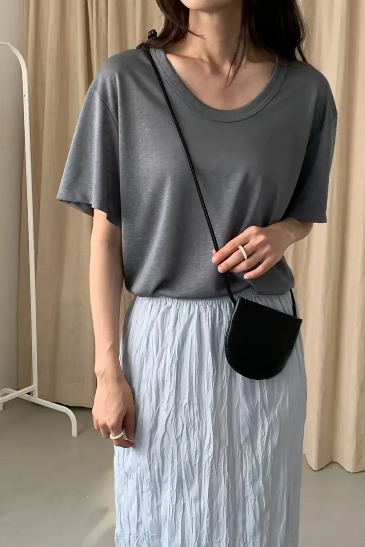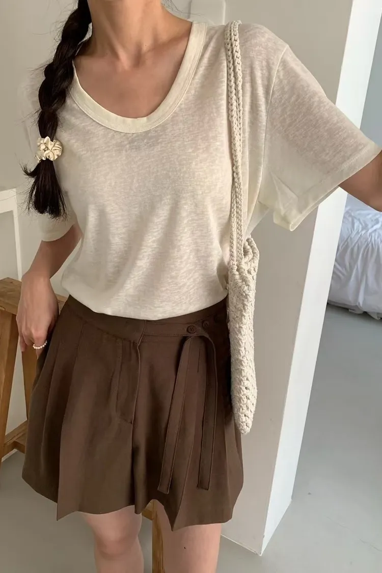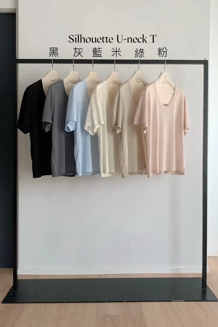 NICE090天絲透光寬U領短袖 米 粉 綠 藍 灰 黑 Tshirt 官網價$650 線上價$620