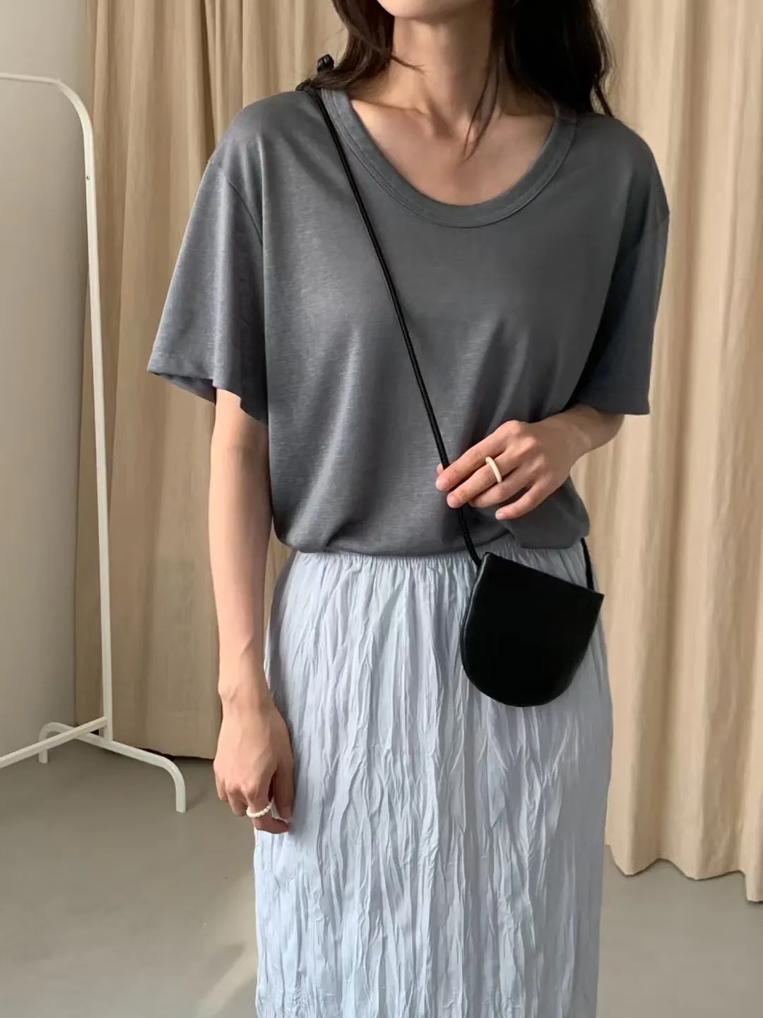 天絲96% 極度柔軟 非常舒服 涼感清爽 大U領 有彈性 混色感面料