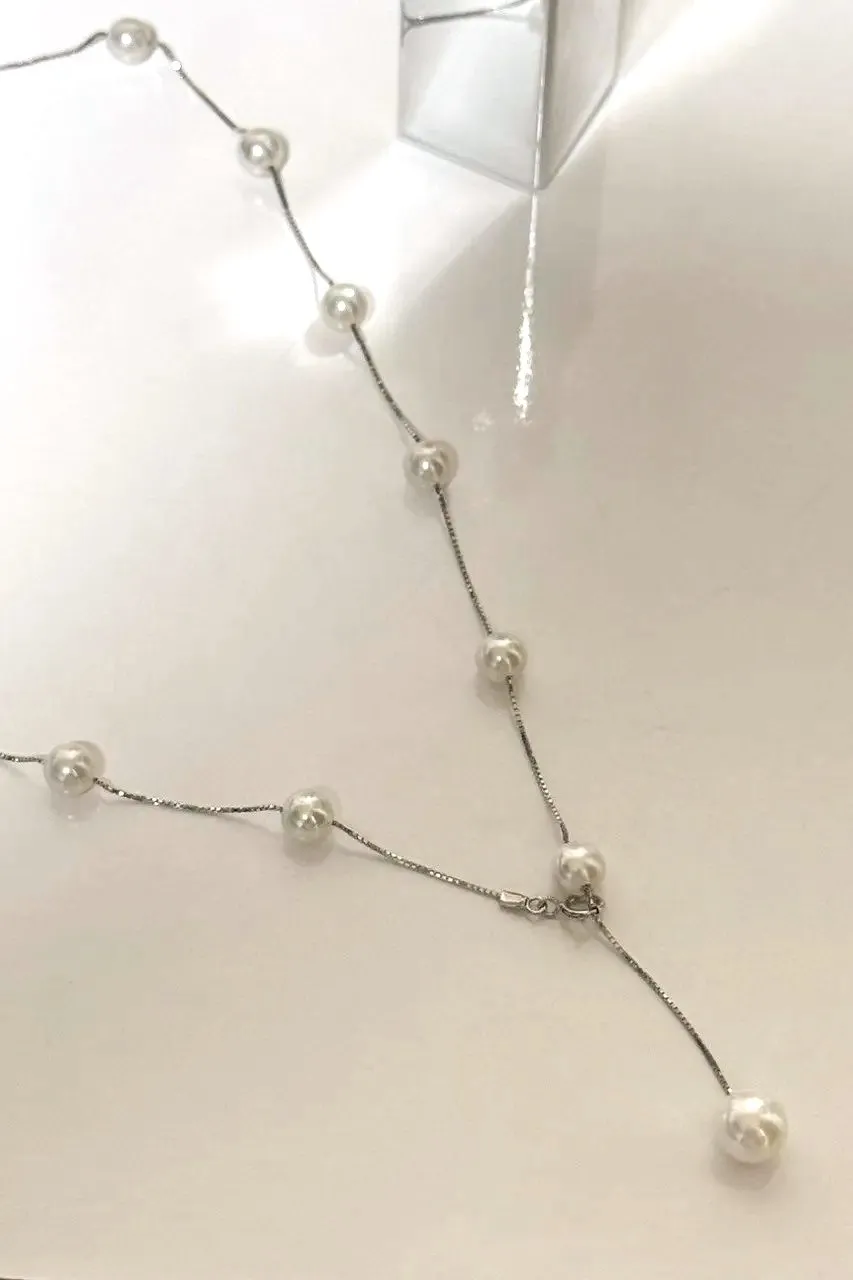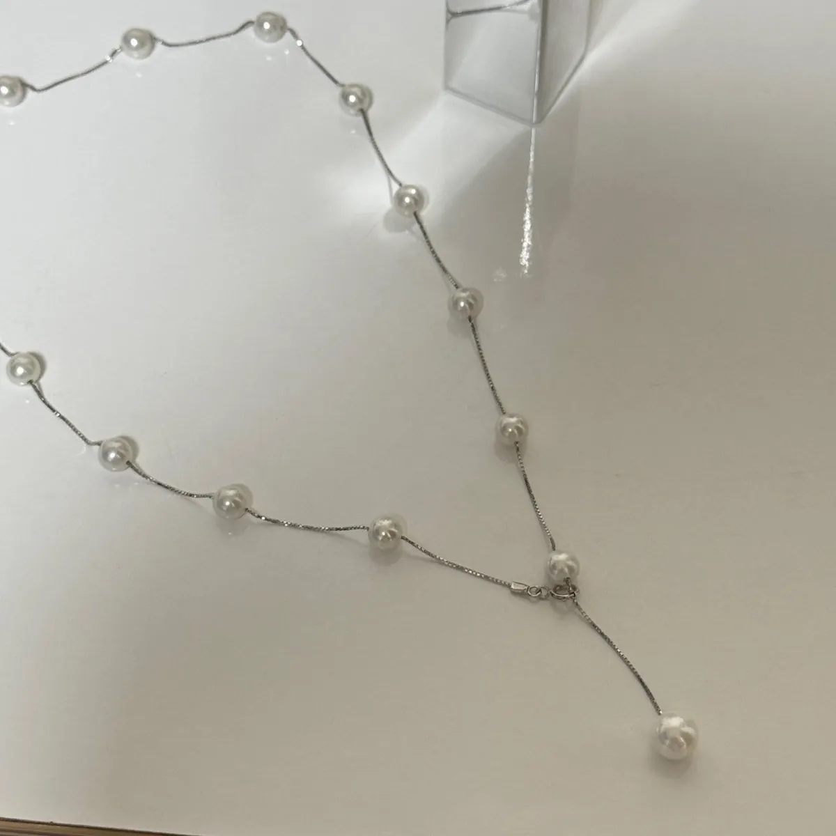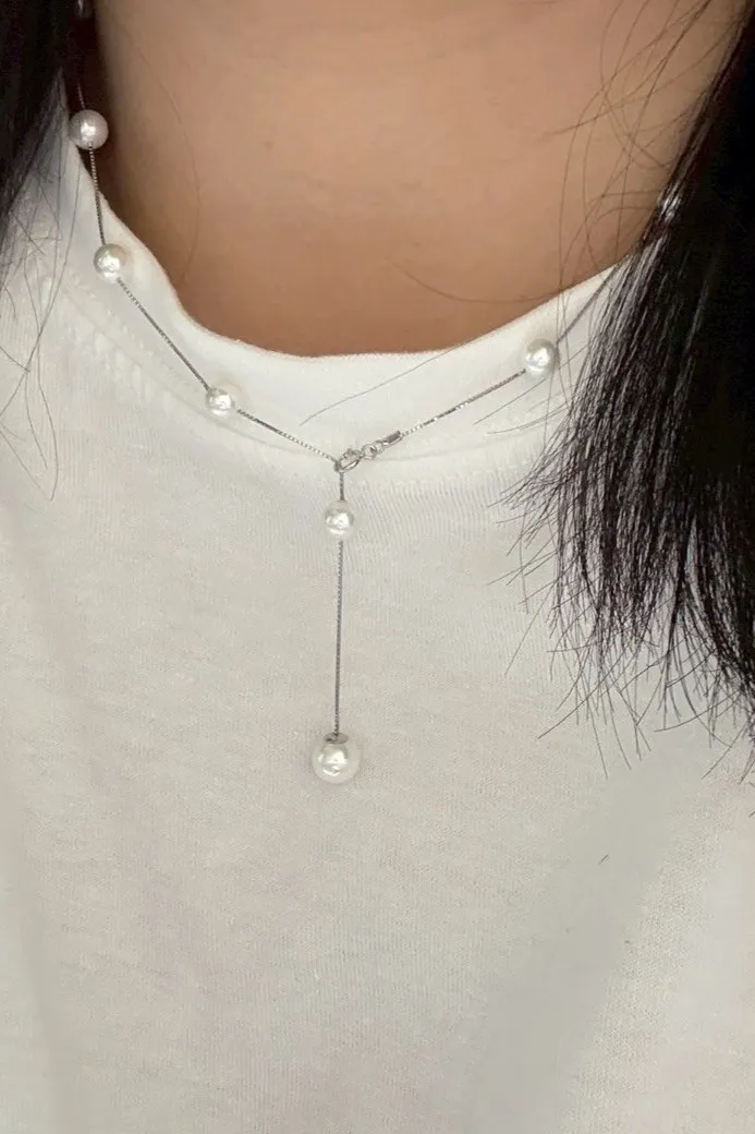 施華洛世奇珍珠+特殊工藝銀鍊條,42公分,可變Y字鍊