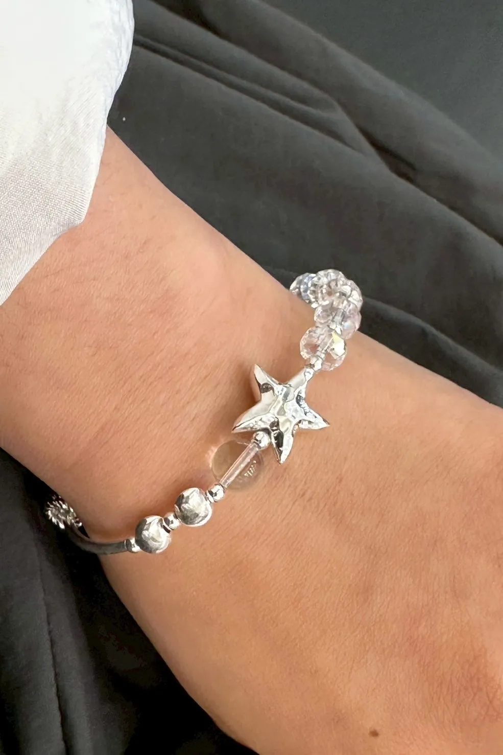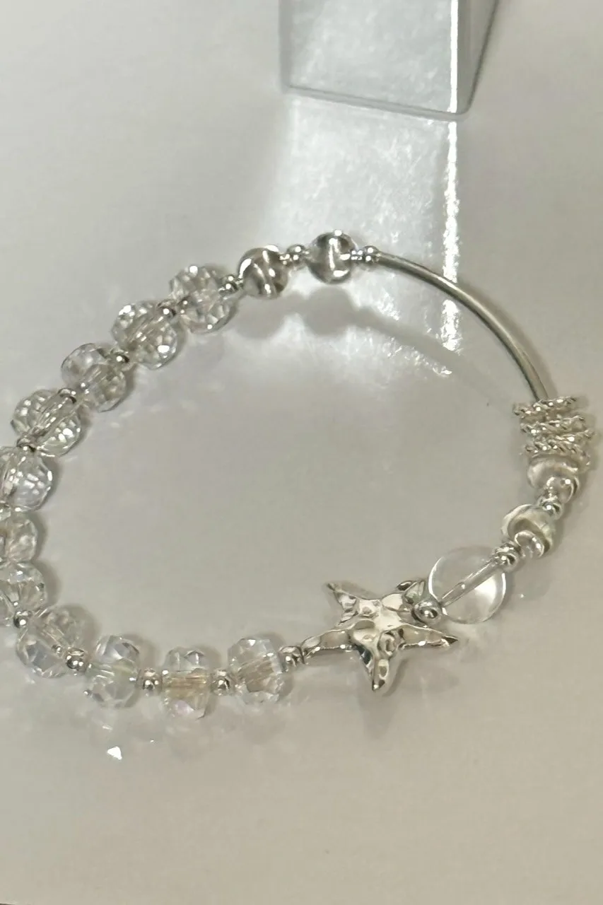 星星+銀圈環+水晶,增加幸運,化險驅凶,彈性繩簡單穿脫