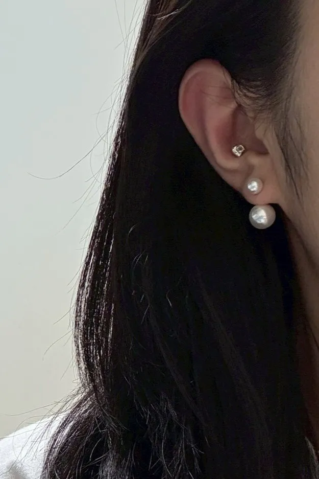 施華洛施奇珍珠,鑲嵌式耳環,耳針跟一顆珍珠是一體的