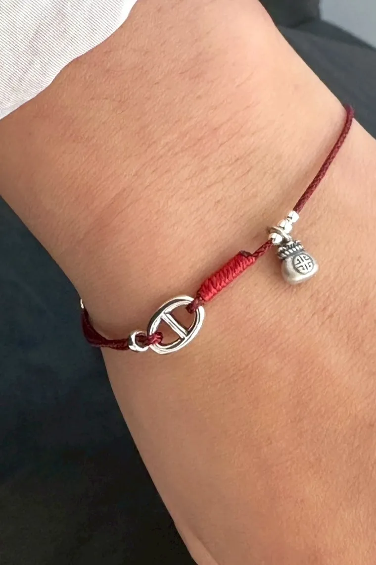 手圍可調,兩銀珠碰在一起可調長度,調好後分開到底拉緊固定