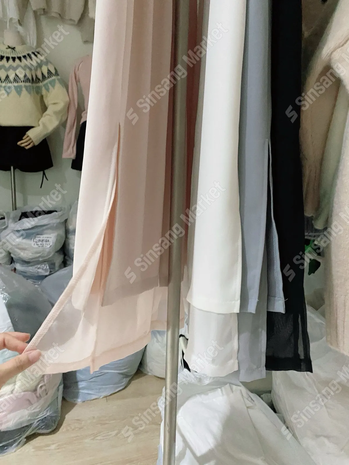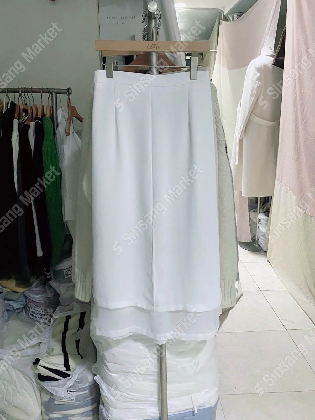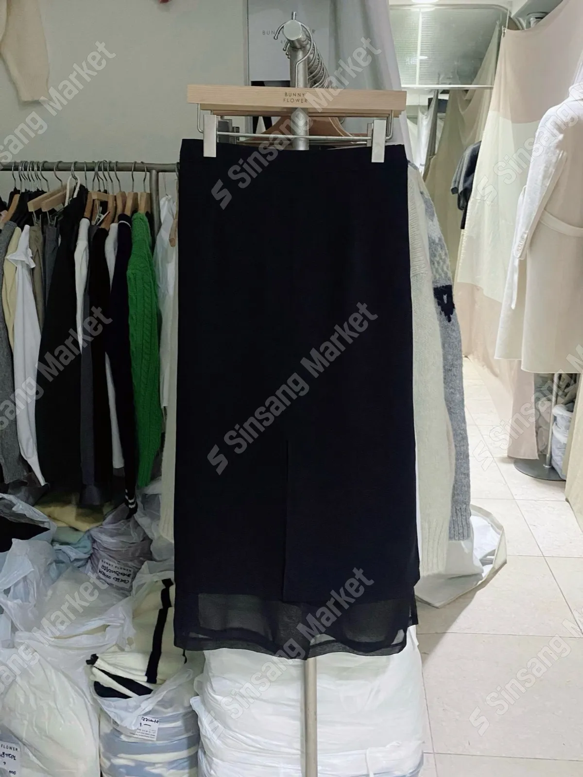 雪紡 觸感細緻滑順 下擺網紗雙層透光 前側後皆開叉 後腰鬆緊