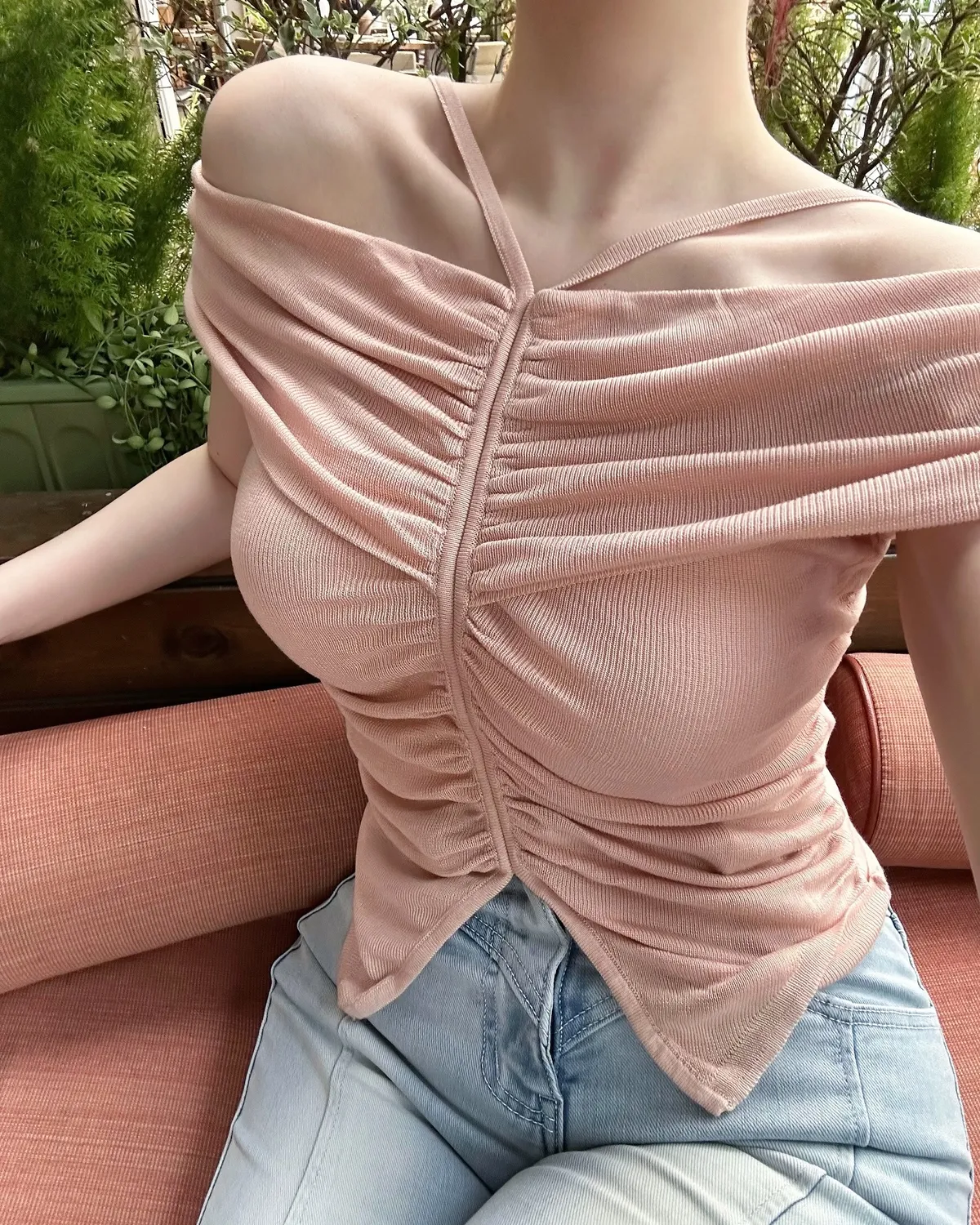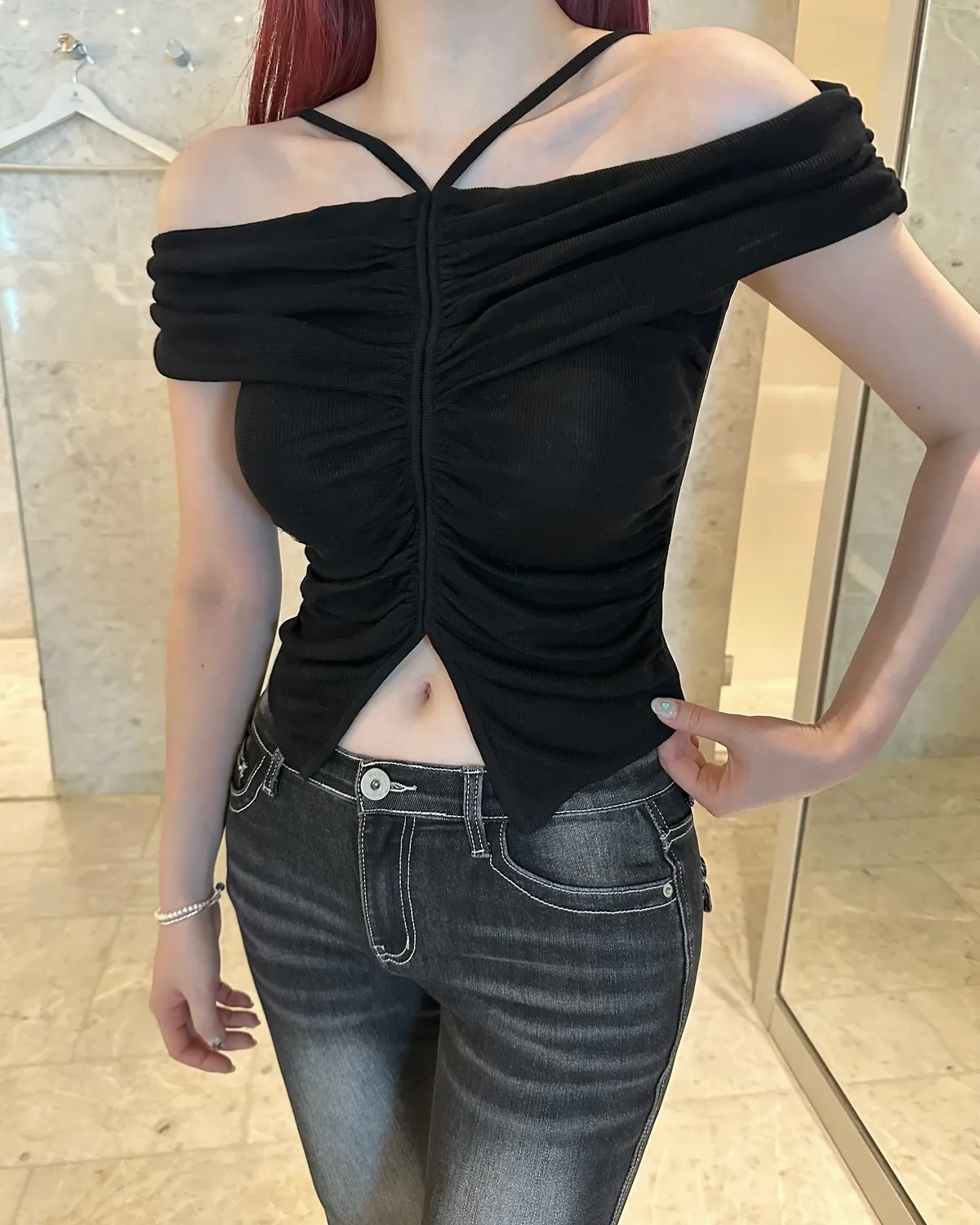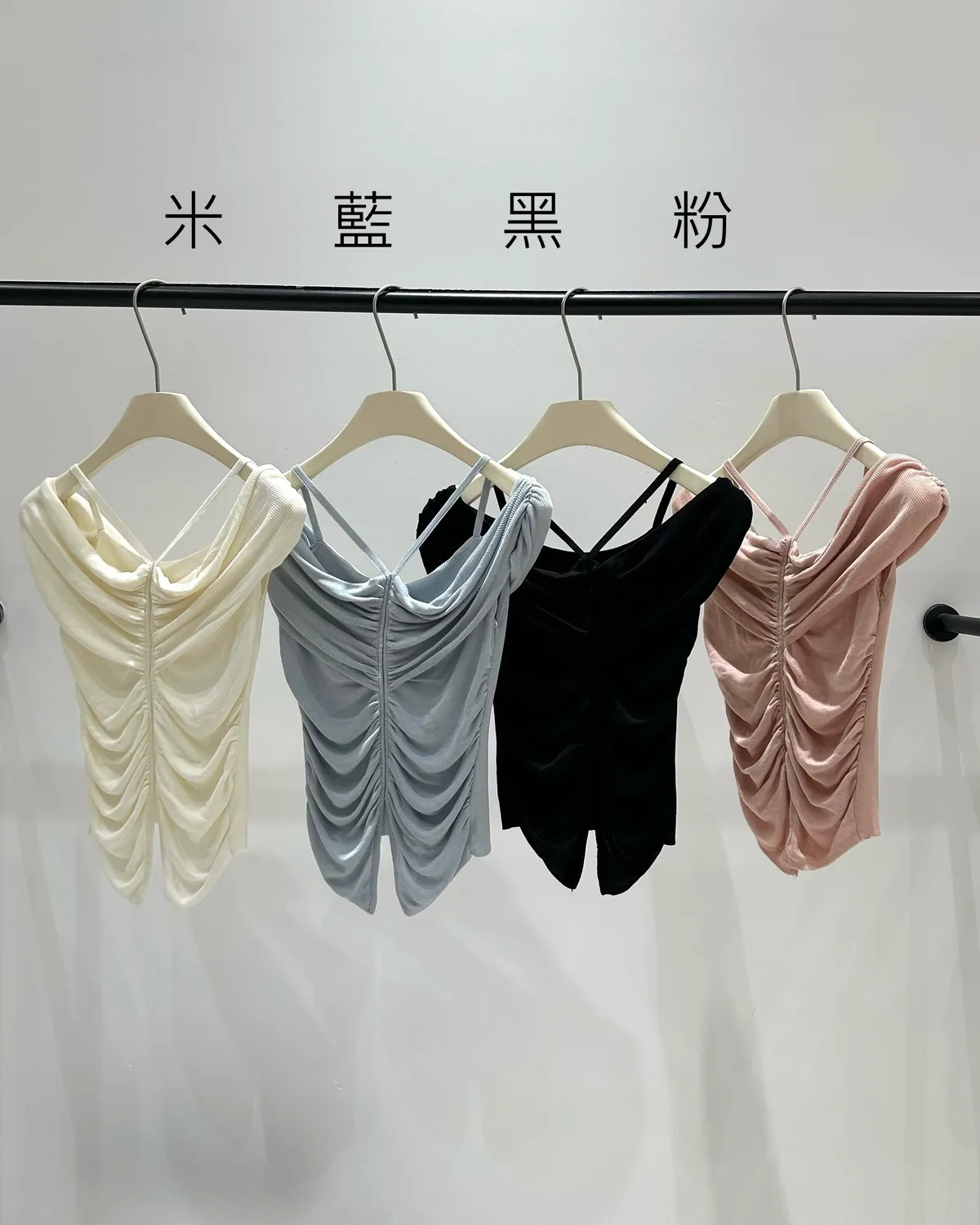 棉+縲縈+彈力 抓皺立體細腰 露鎖骨小性感 美背垂墜