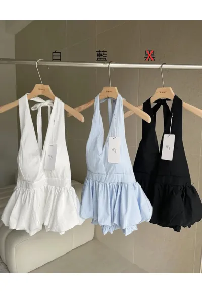 棉+聚酯 後頸綁帶穿脫 V領設計 背後有彈性 薄款杯墊 黑色斷貨
