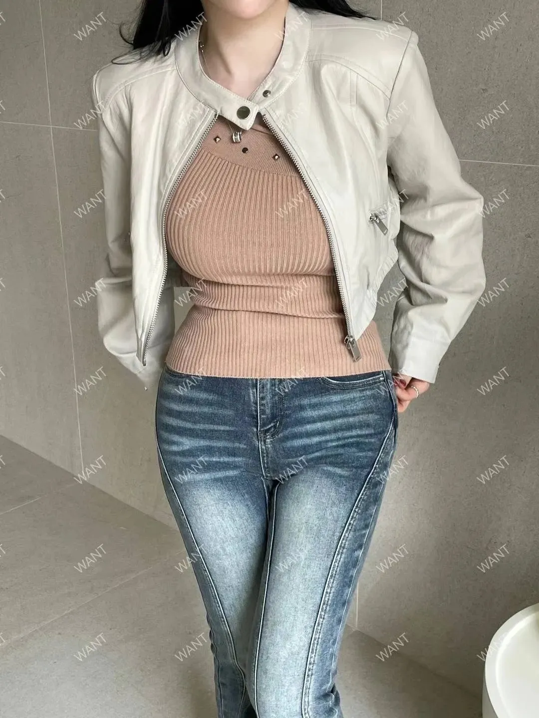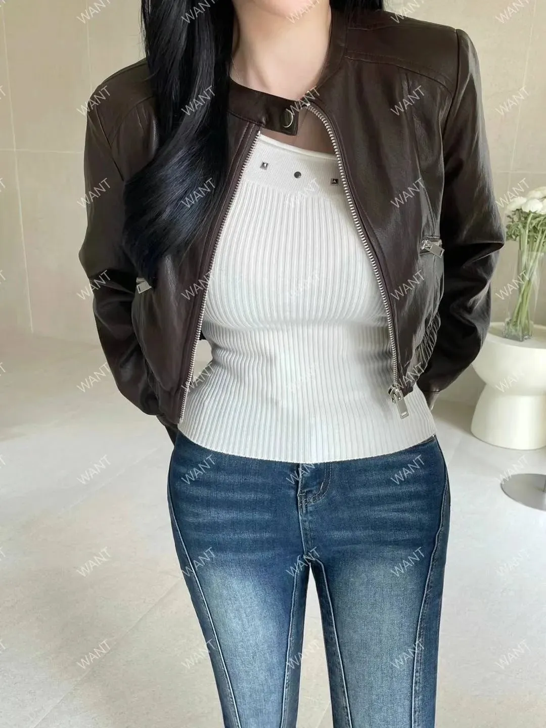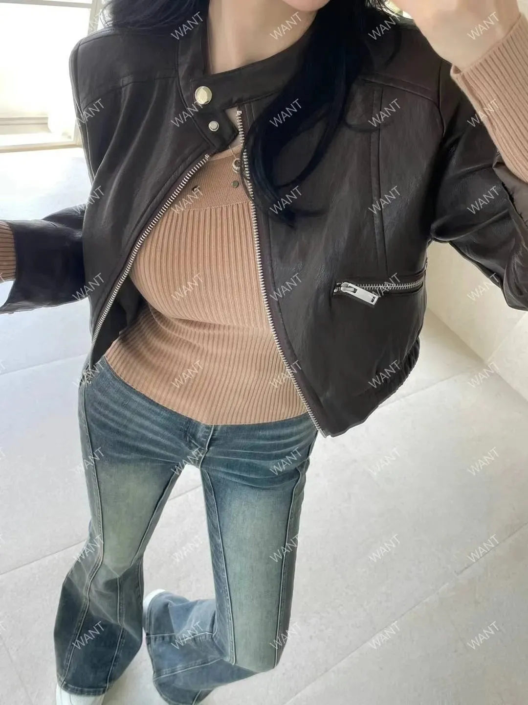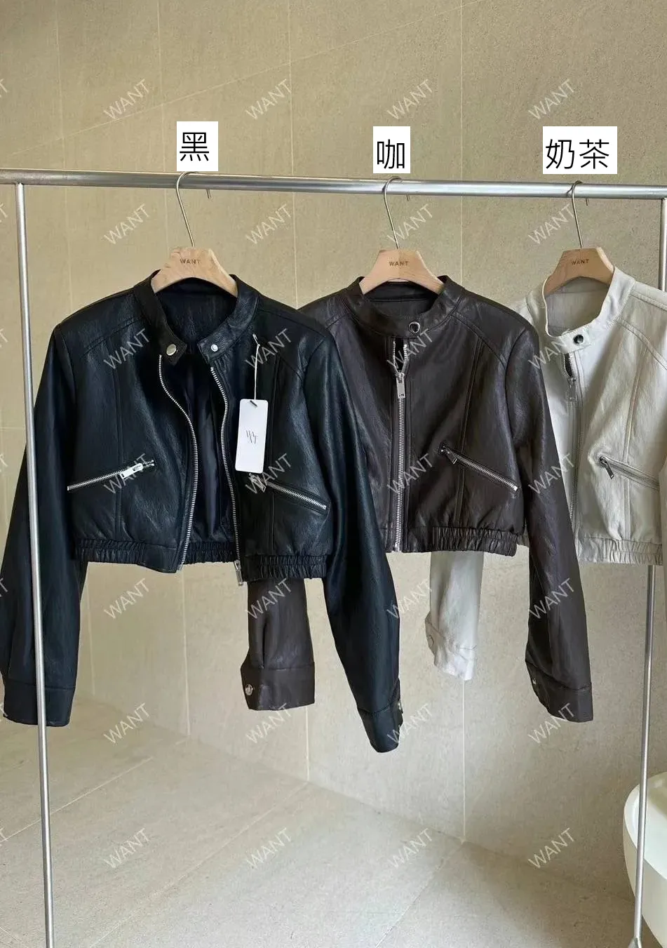 NR234回購款短版拉鍊皮外套(原DF193) 咖 黑 奶茶 官網價$1450 線上價$1420