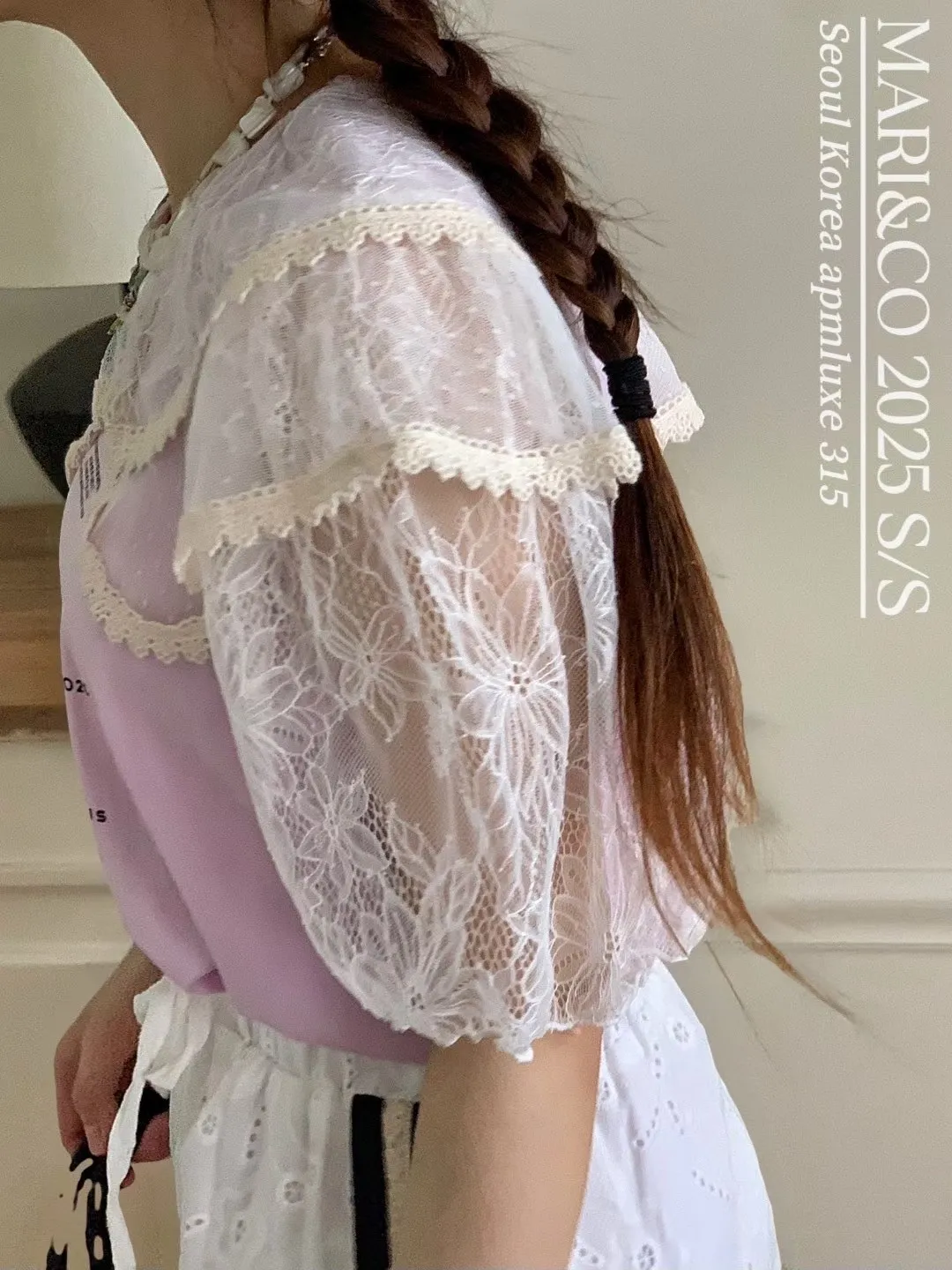 NR242特價極度薄款雙層蕾絲領上衣 白 粉 綠 原價$1280 特價$580