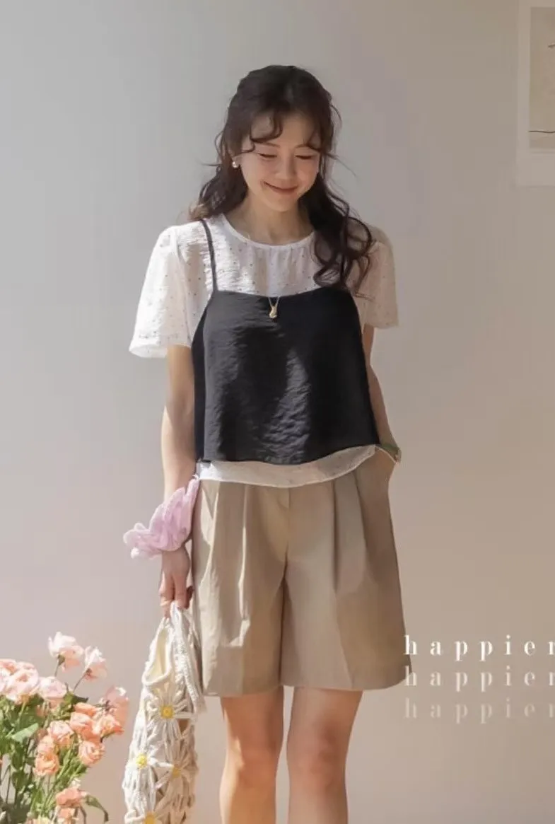 天絲+棉,兩件一組,上衣和背心可拆開 穿到小L