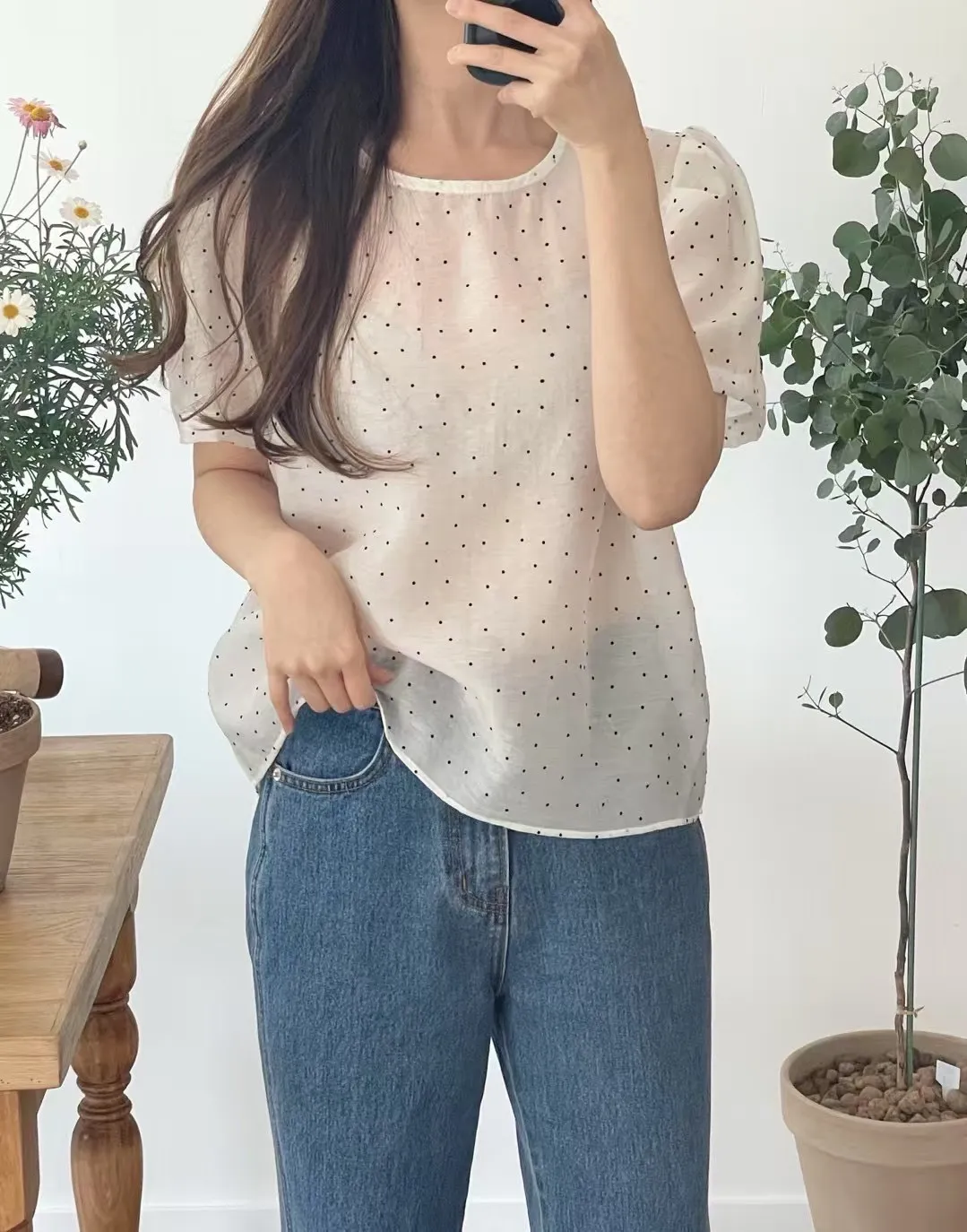 點點上衣,肩寬36胸寬48臂寬22袖長22袖口21全長53