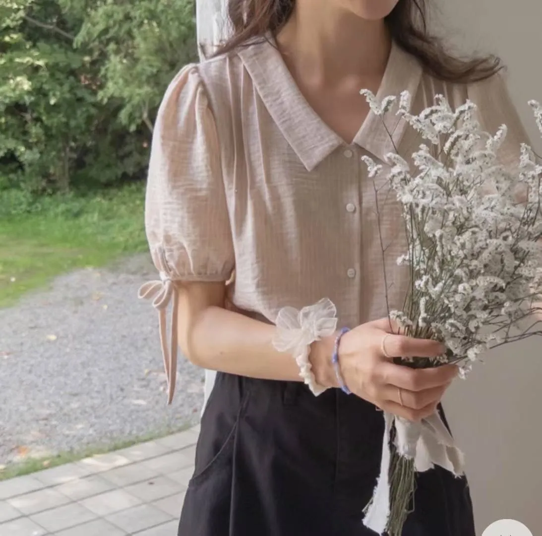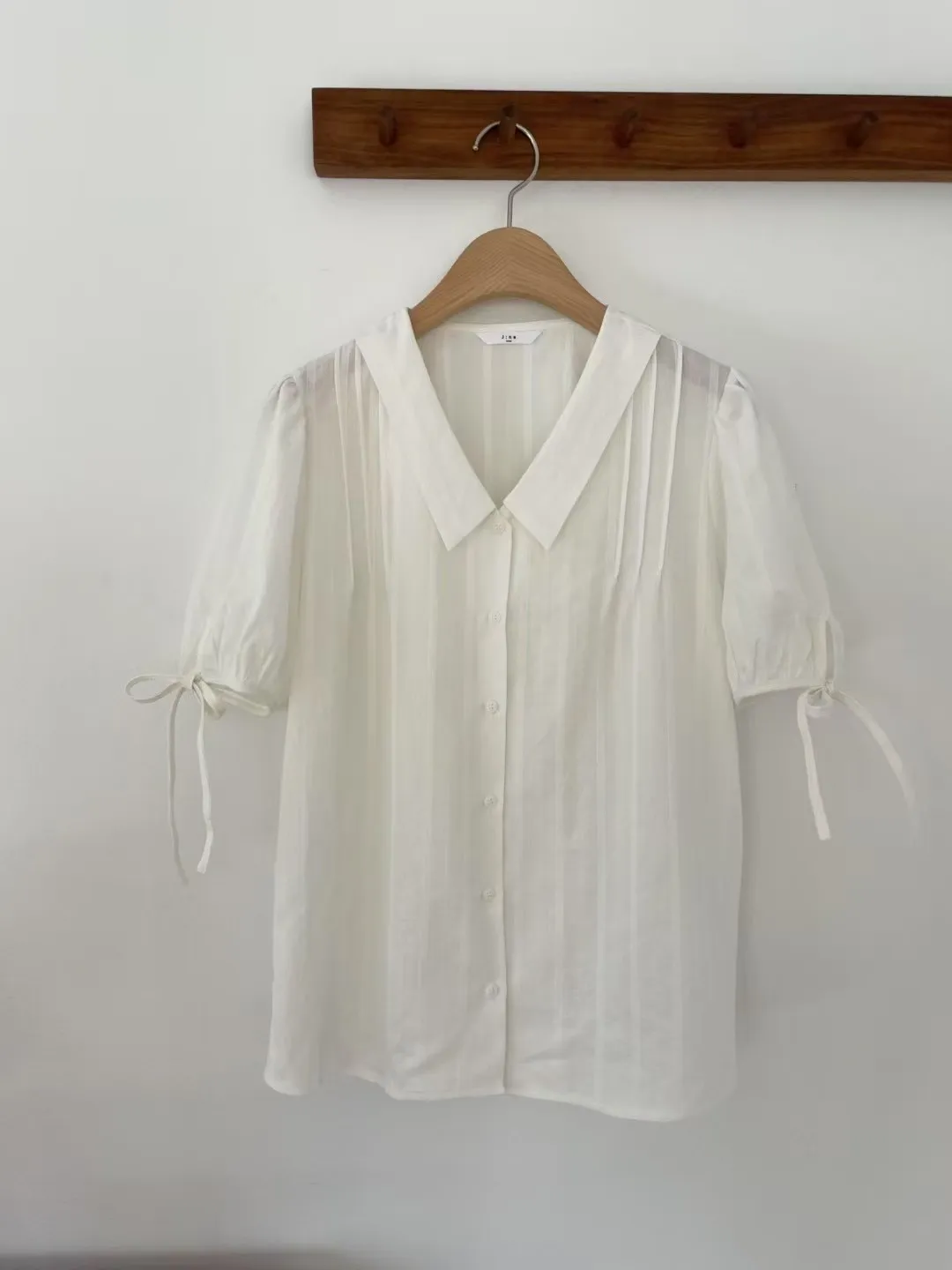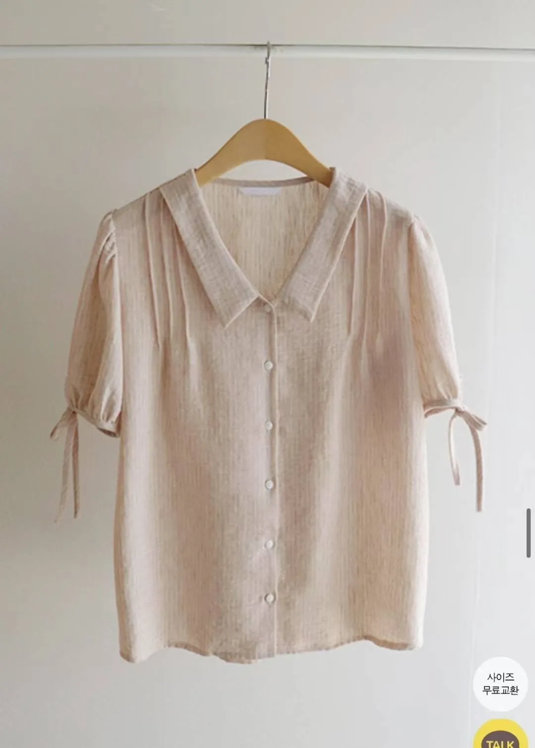 白=純棉,奶茶=聚酯 袖口蝴蝶結 柔軟面料 排釦穿脫