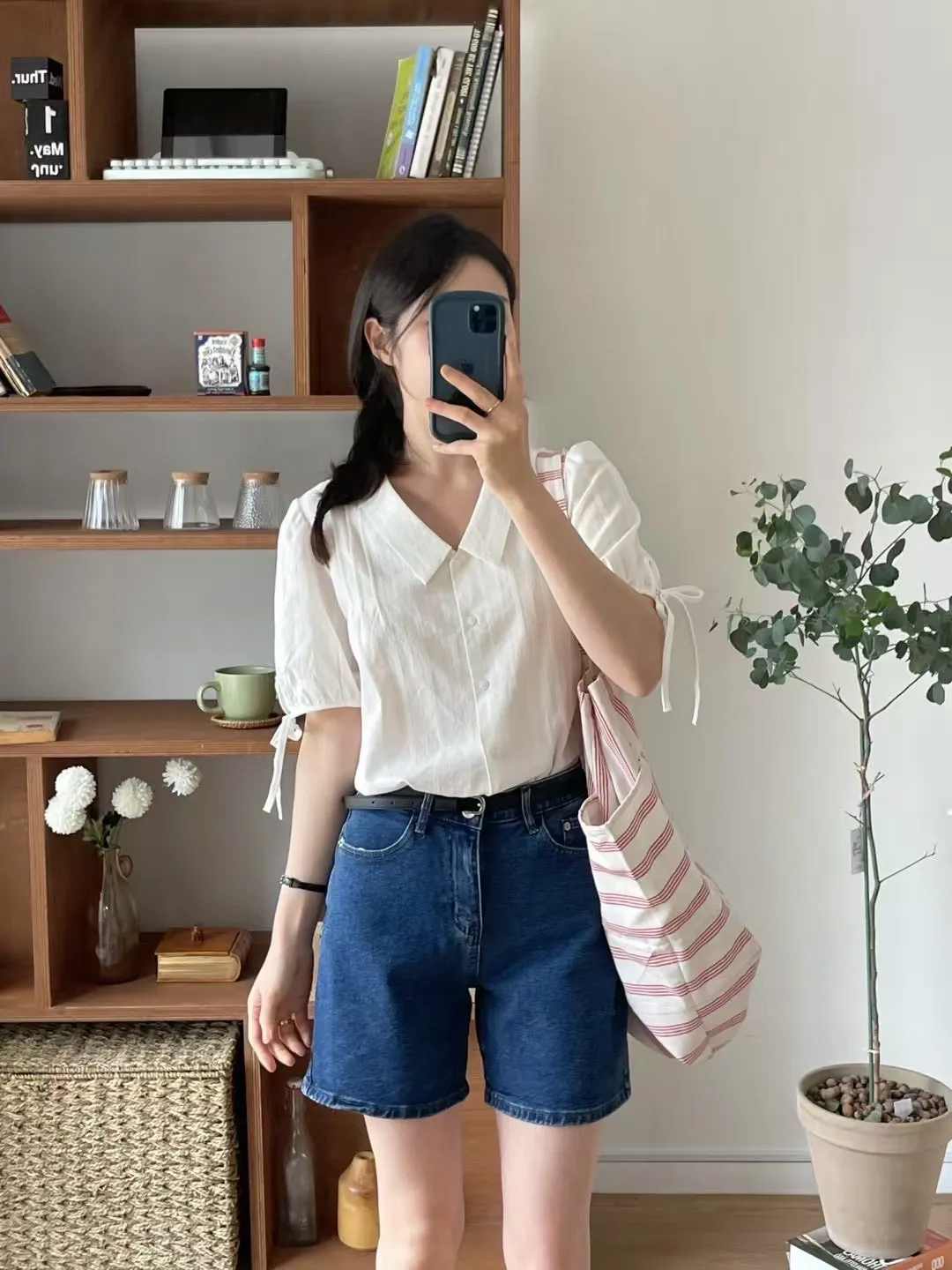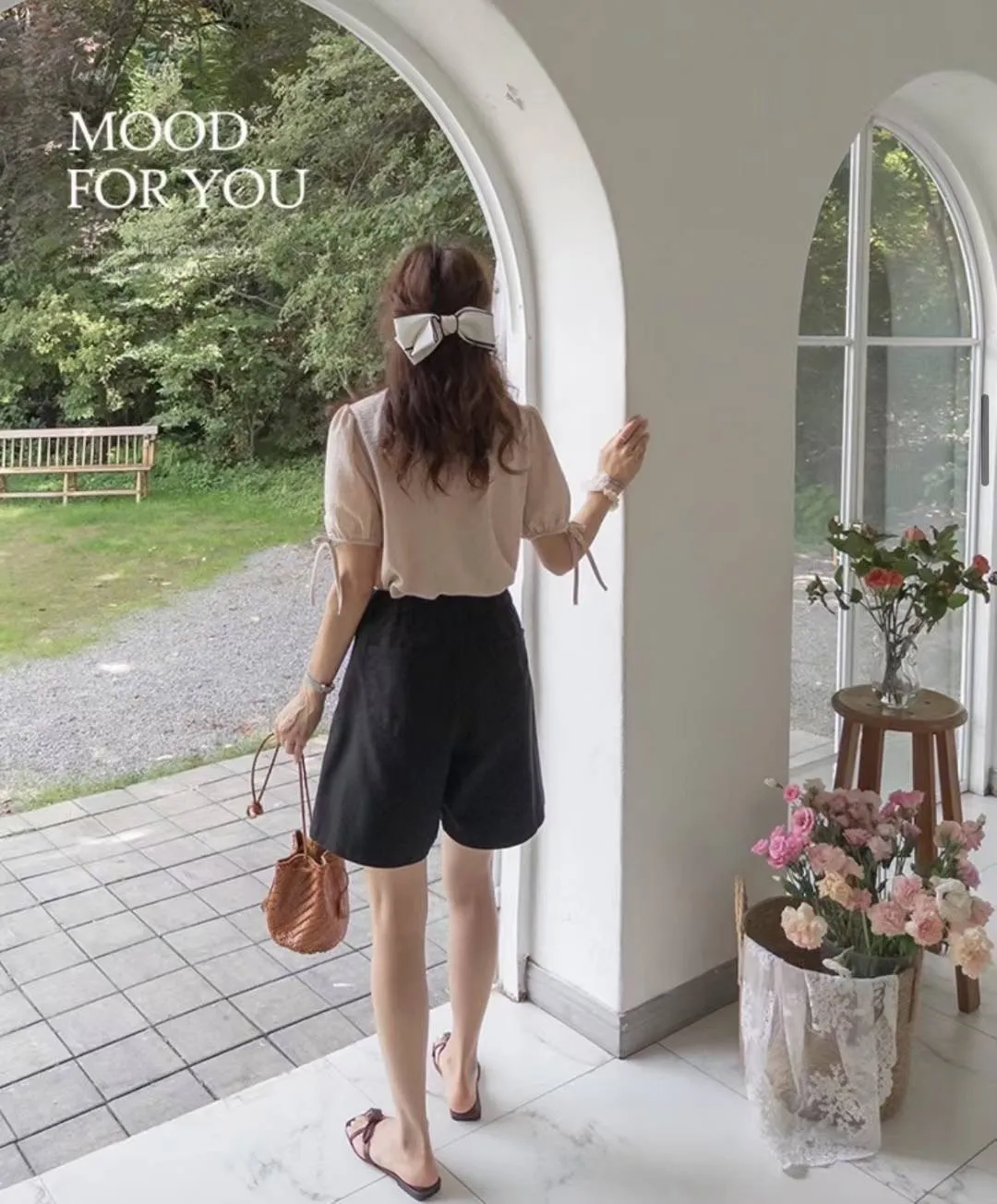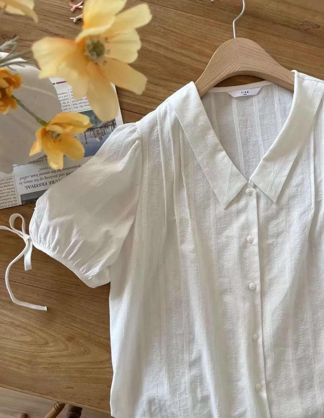 白=純棉,奶茶=聚酯 袖口蝴蝶結 柔軟面料 排釦穿脫