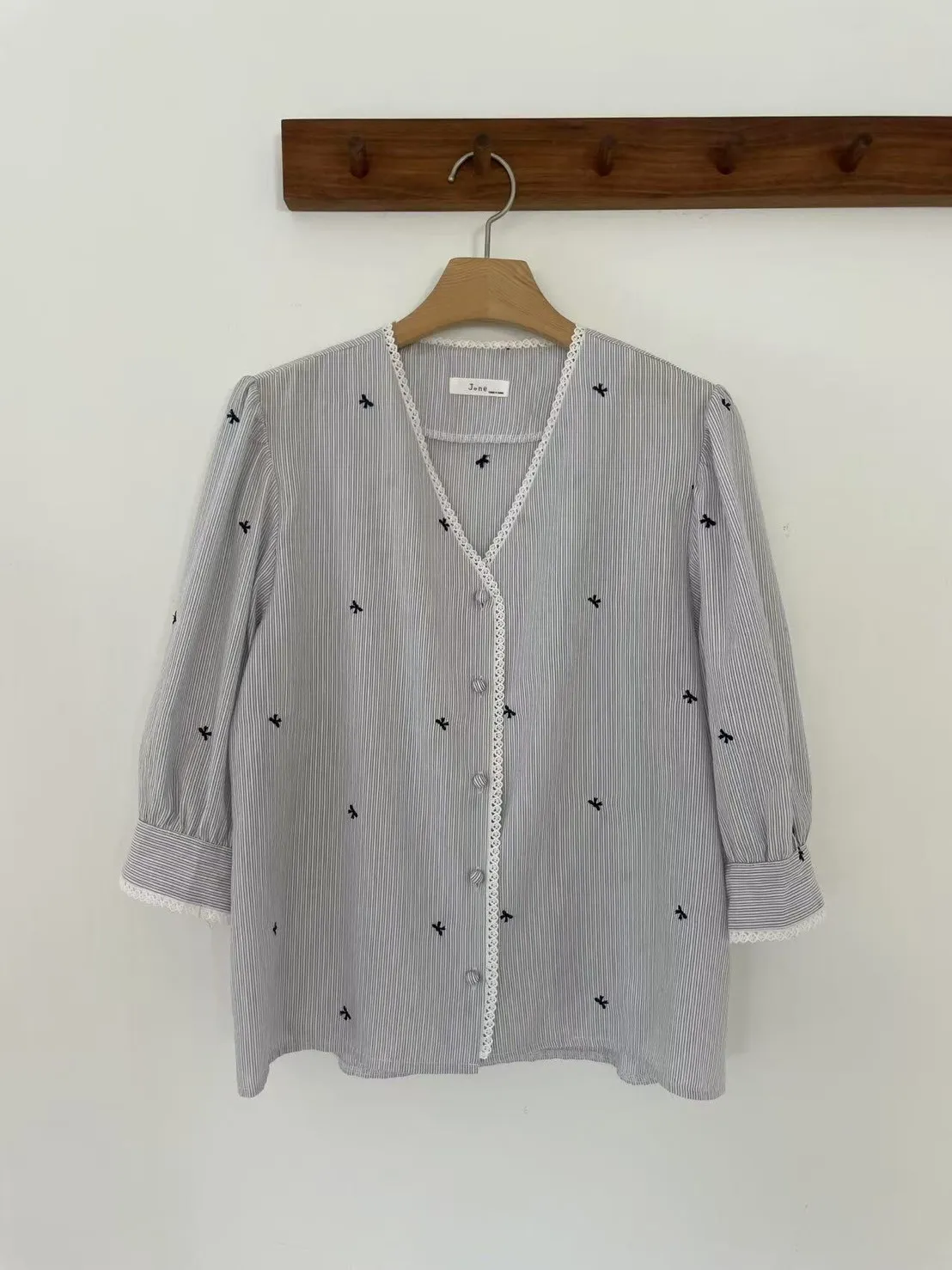 縲縈+聚酯 柔軟舒適 精緻蕾絲滾邊 排釦穿脫 細緻小小蝴蝶結刺繡