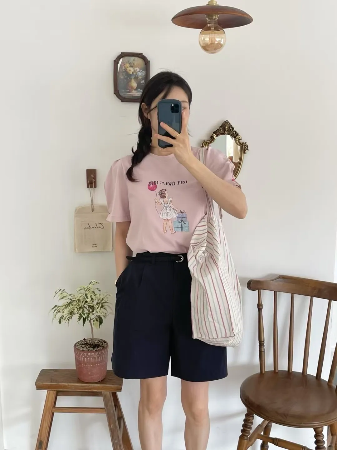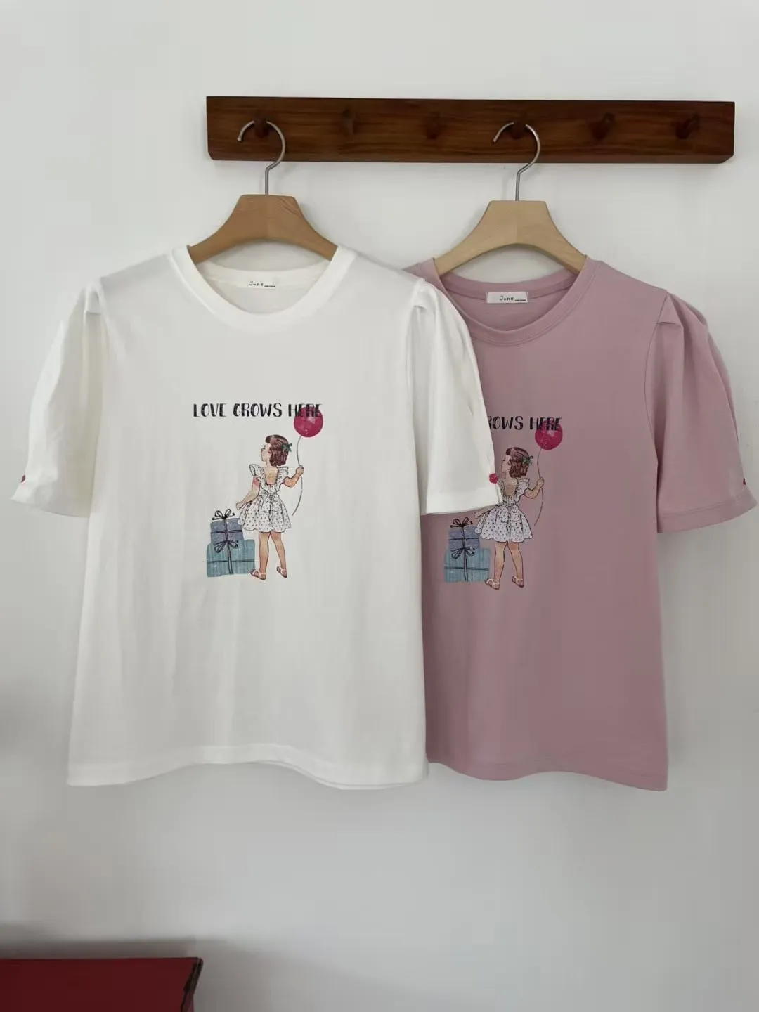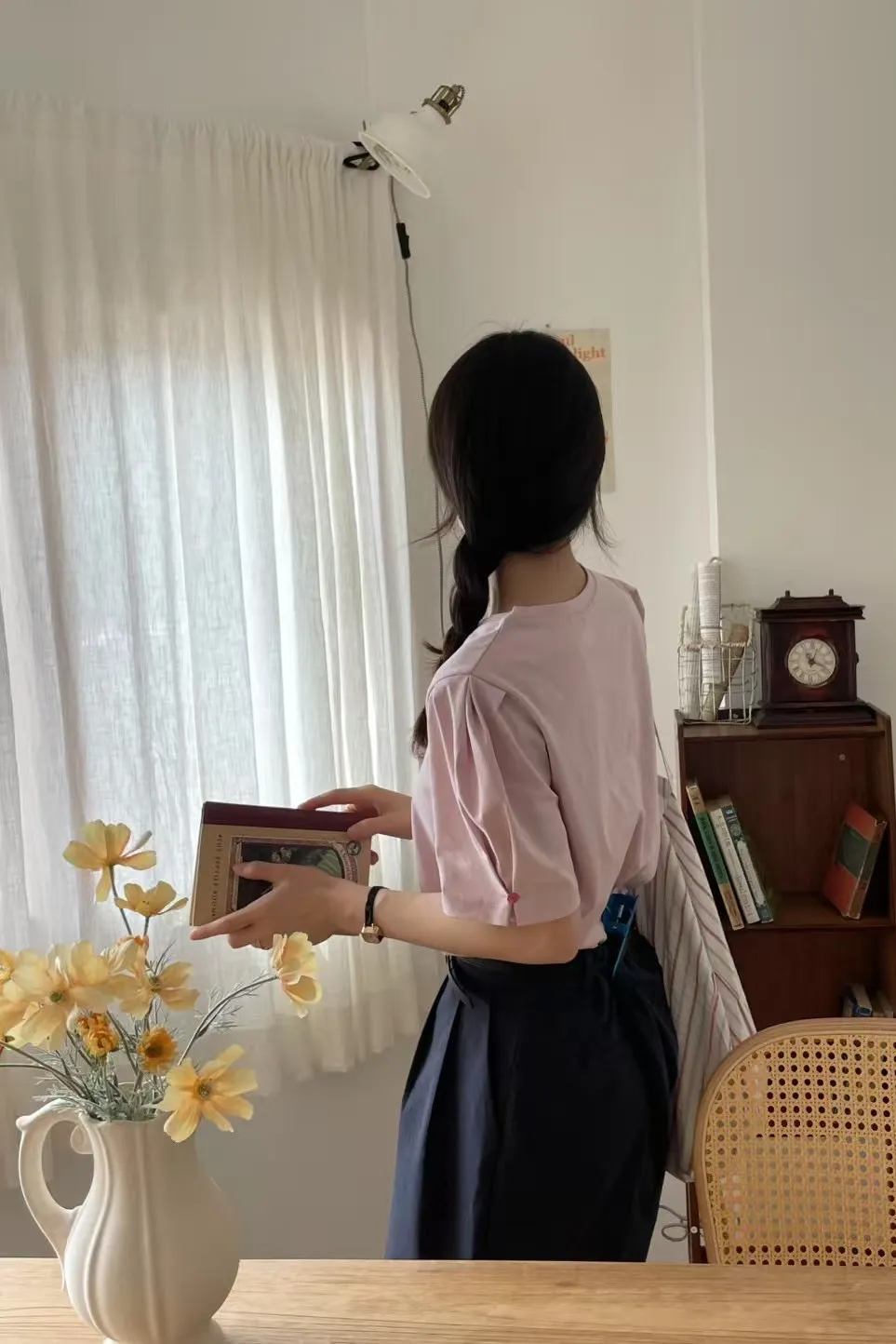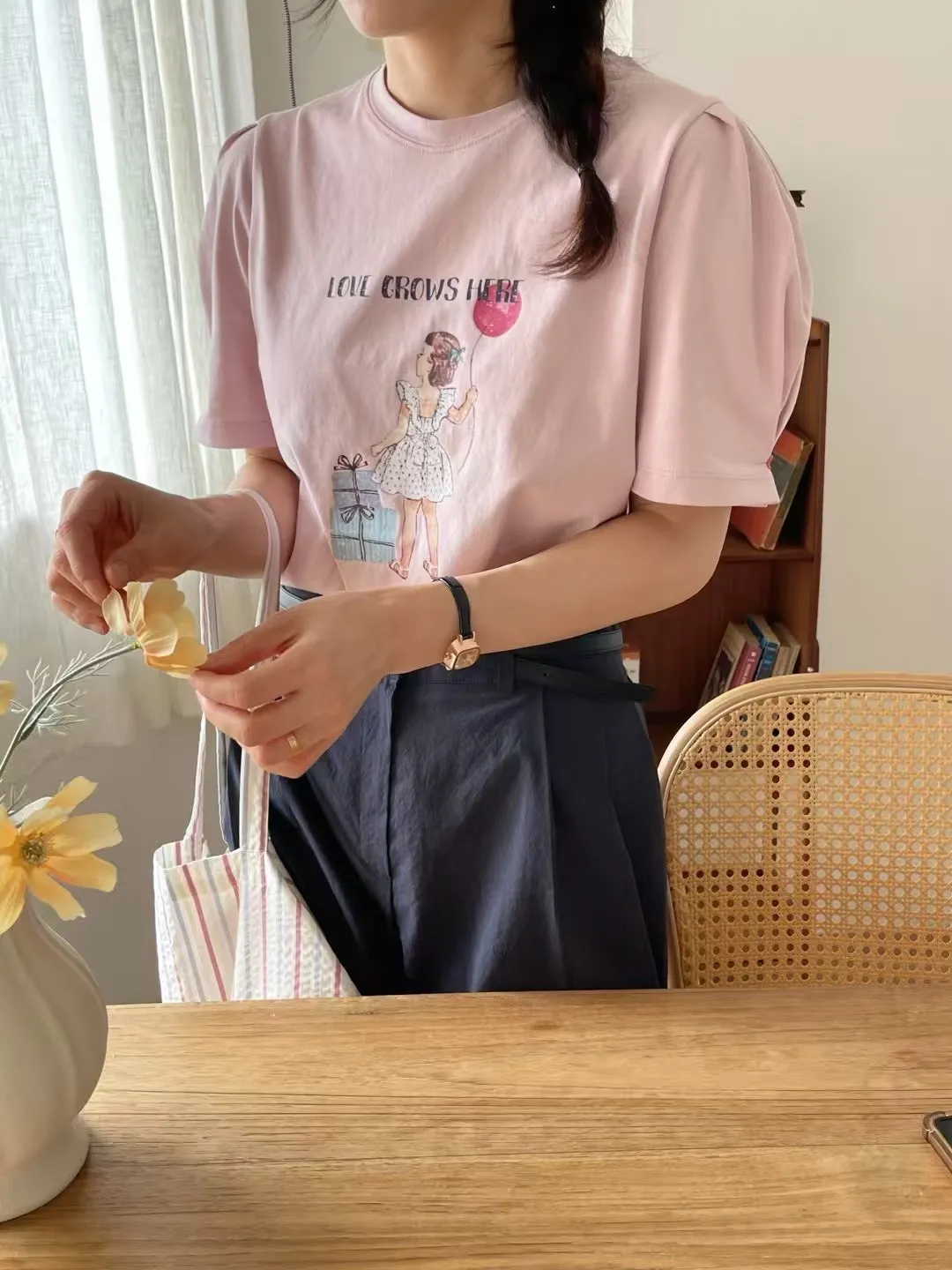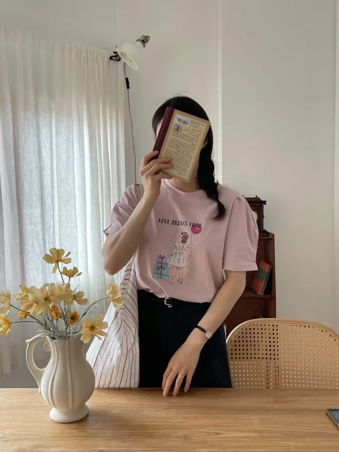 絲綢棉 光滑柔順 舒適透氣 質感磅數 袖口小花摺釦 法式插畫