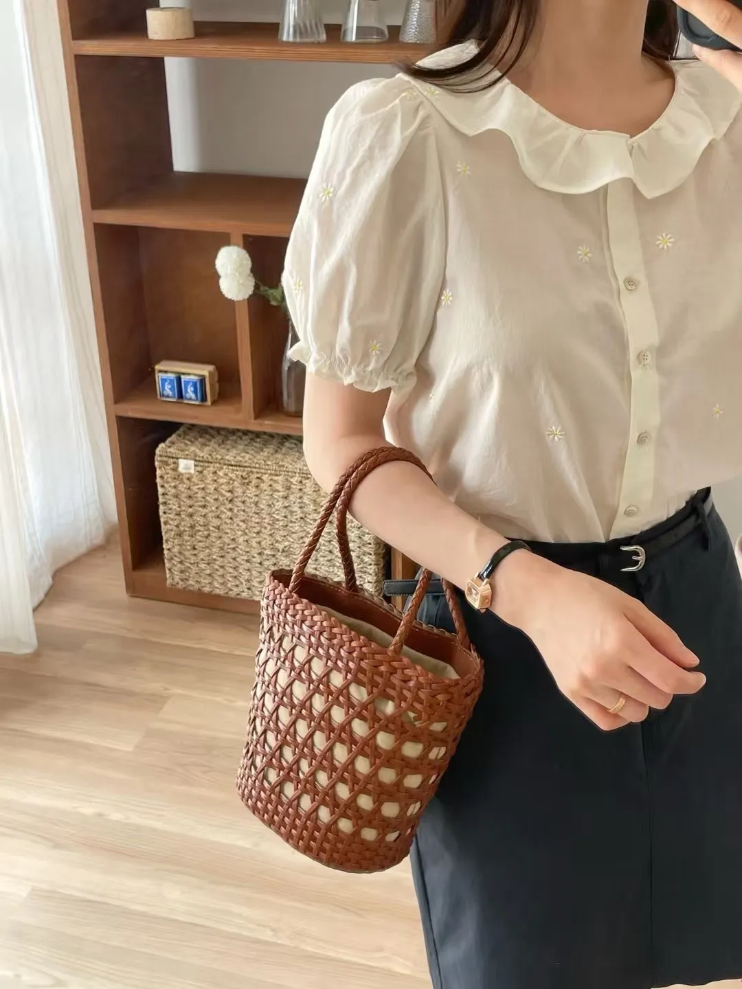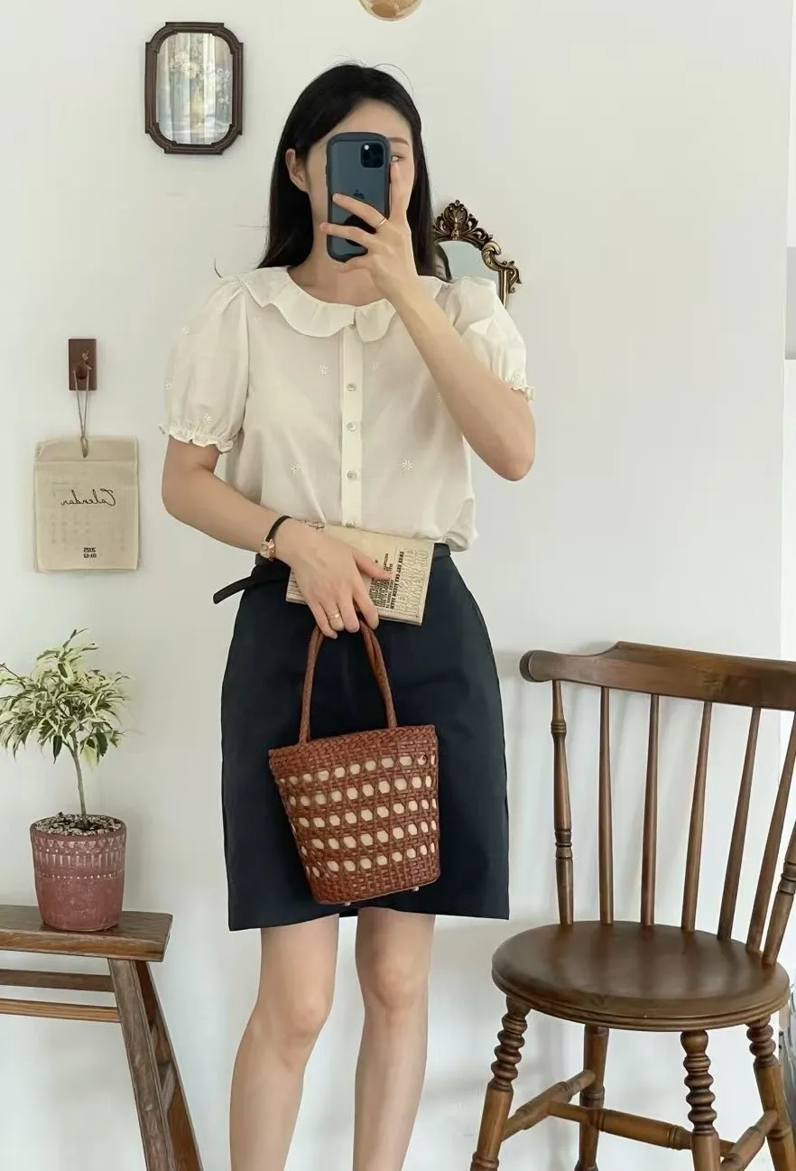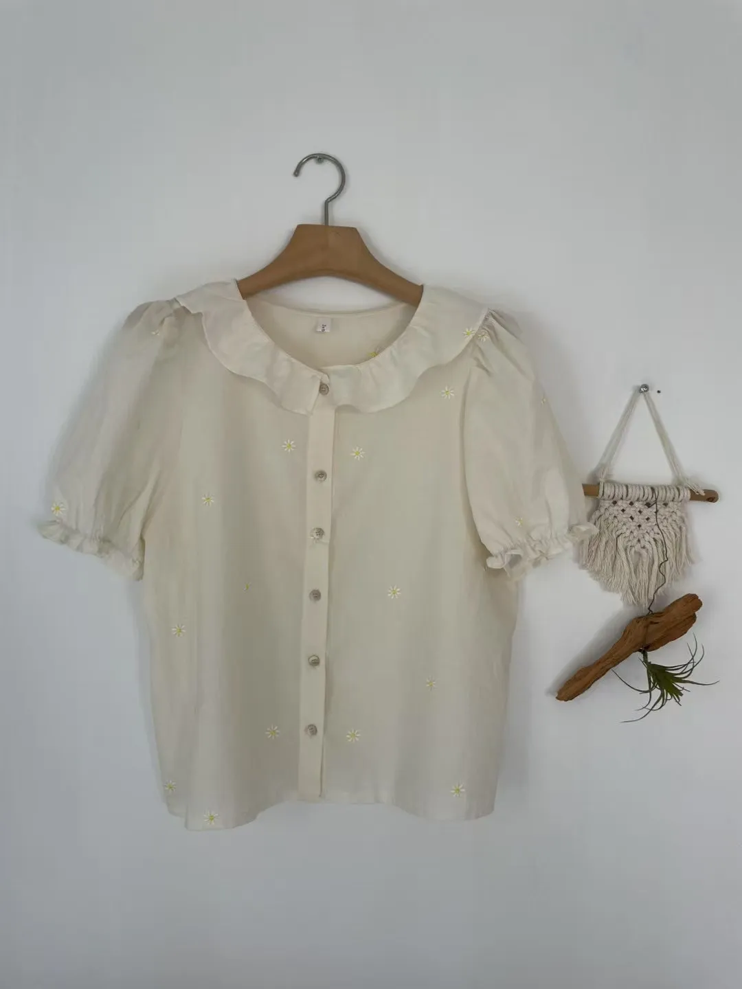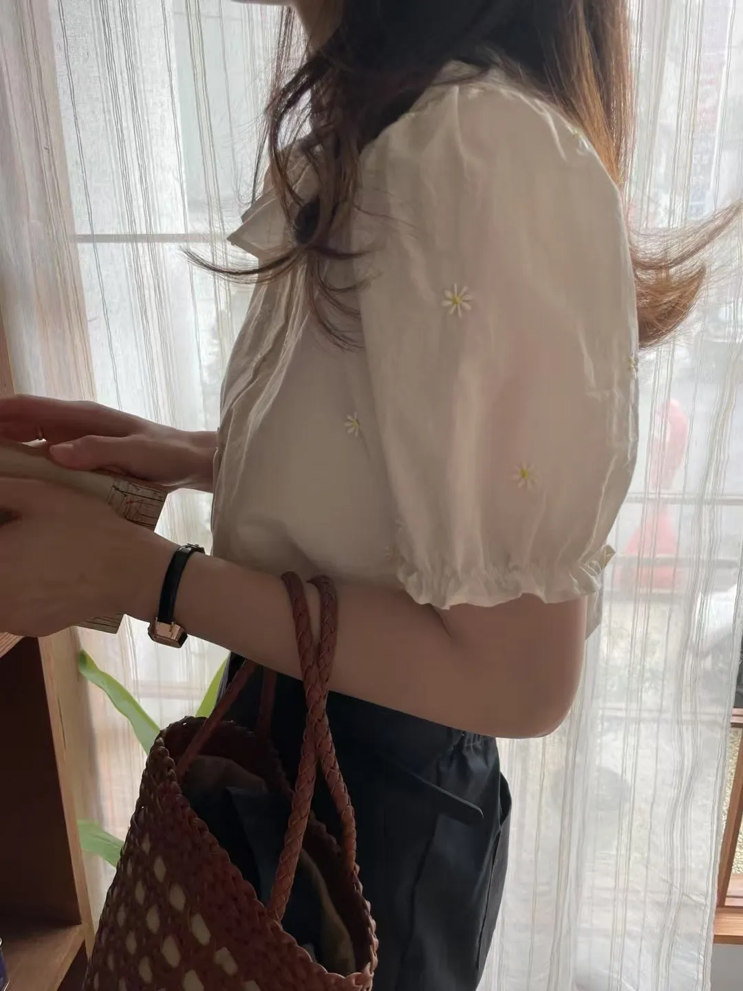棉 非常薄款 透氣舒適 觸感像雪紡滑順 刺繡小雛菊 穿到小L
