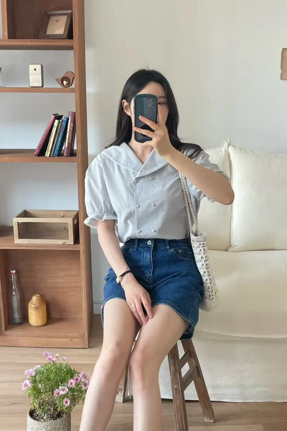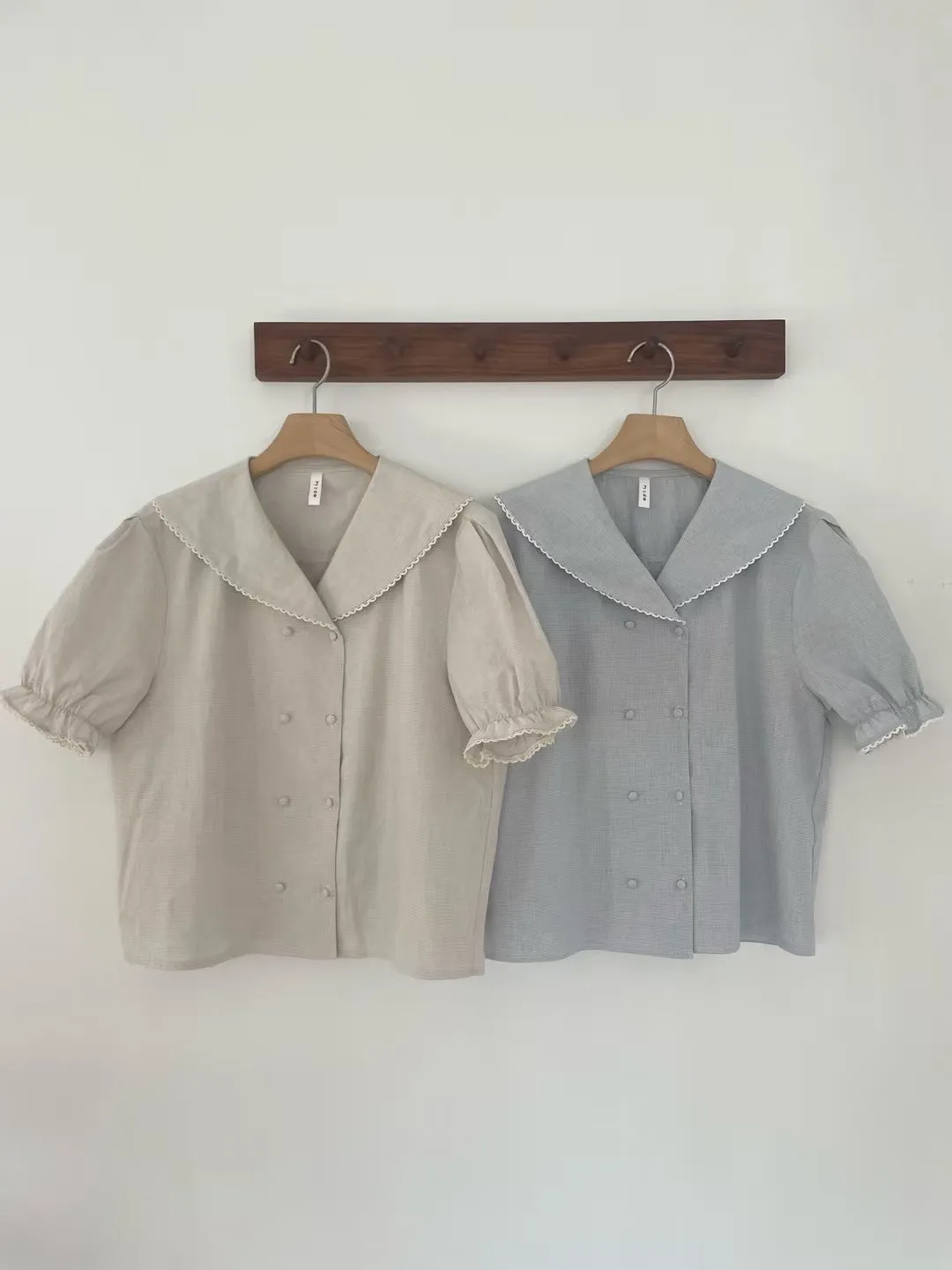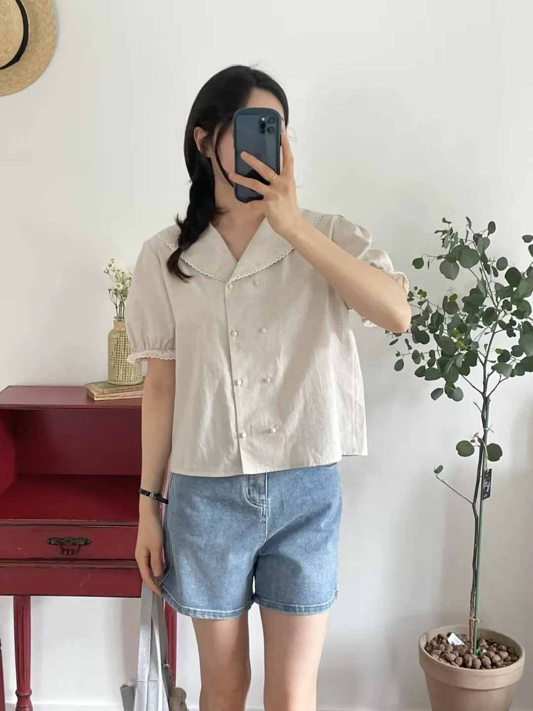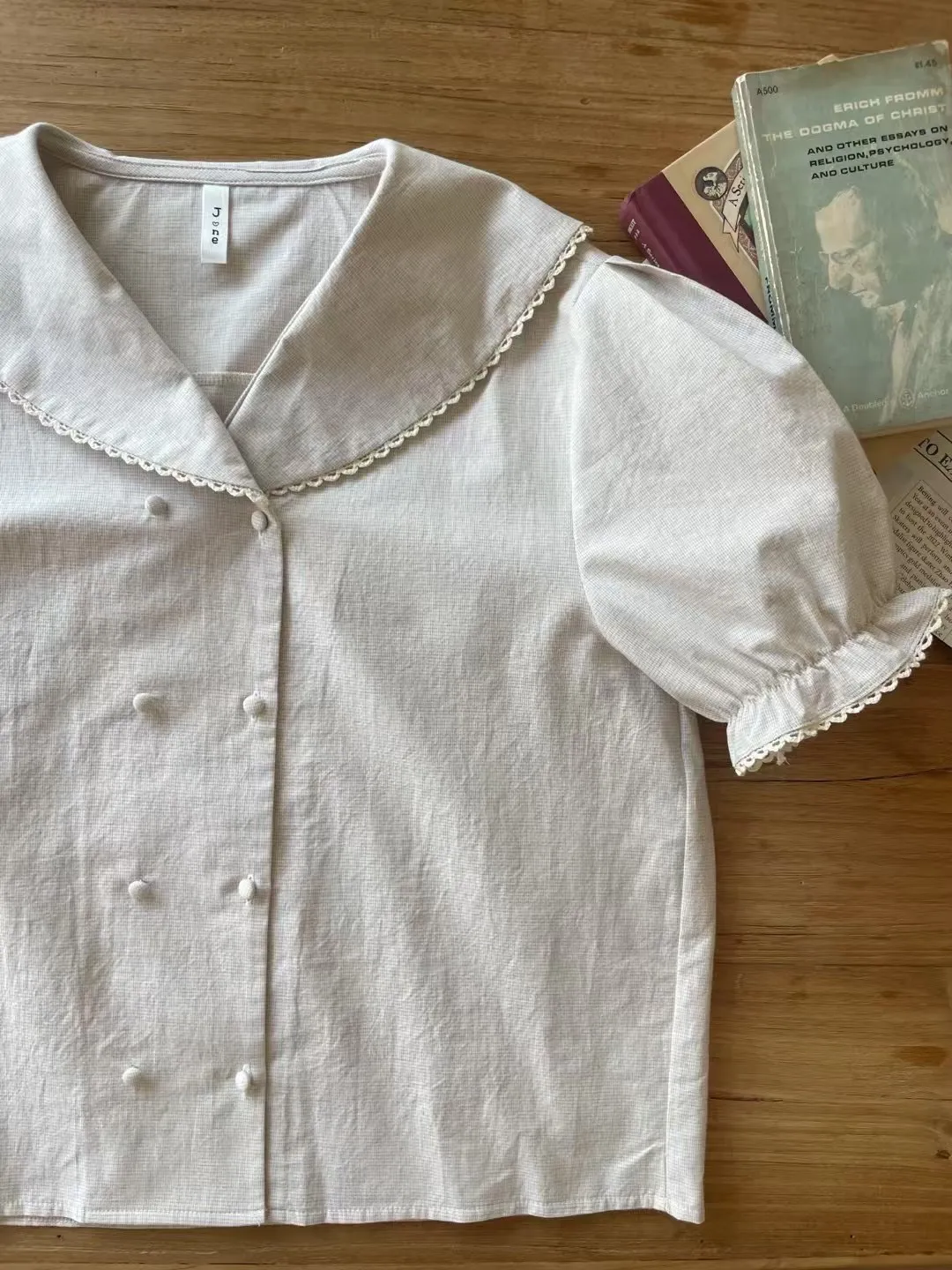 棉 薄款透氣 無內裡 領口袖口蕾絲滾邊 適合夏天