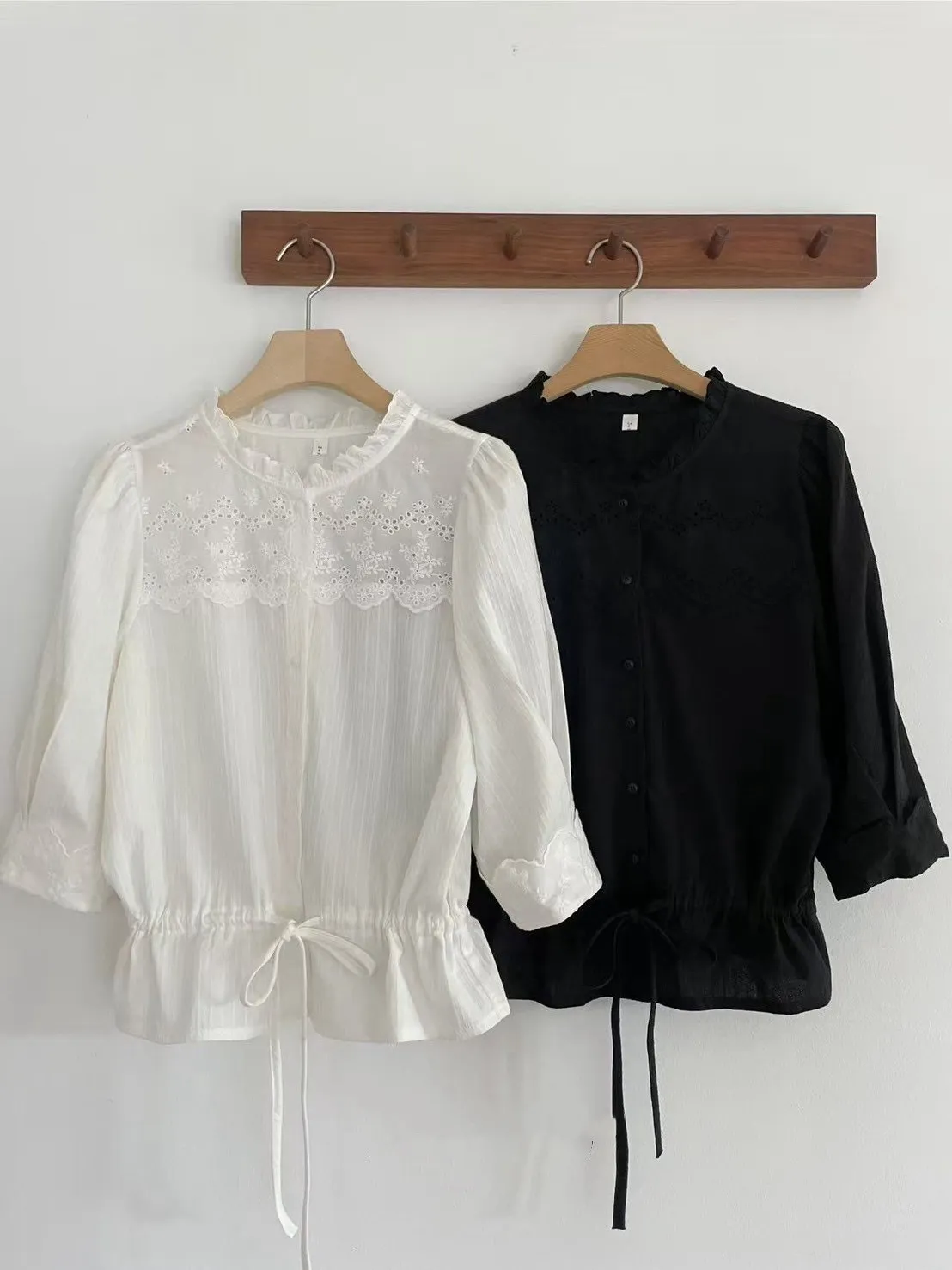 棉 精緻紋理 細腰綁帶 適合夏天 排釦穿脫