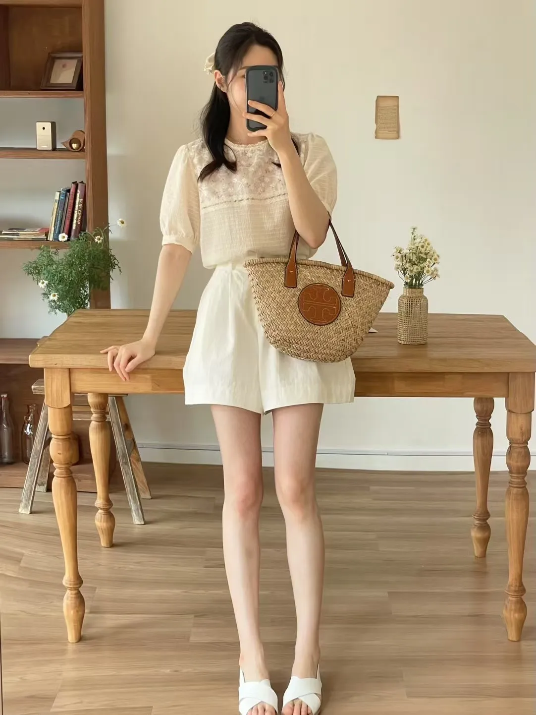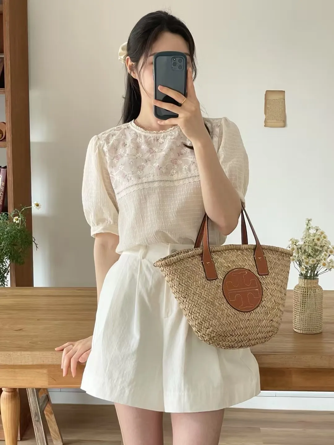 棉+聚酯 輕薄透氣 胸前精緻小花 L號友善