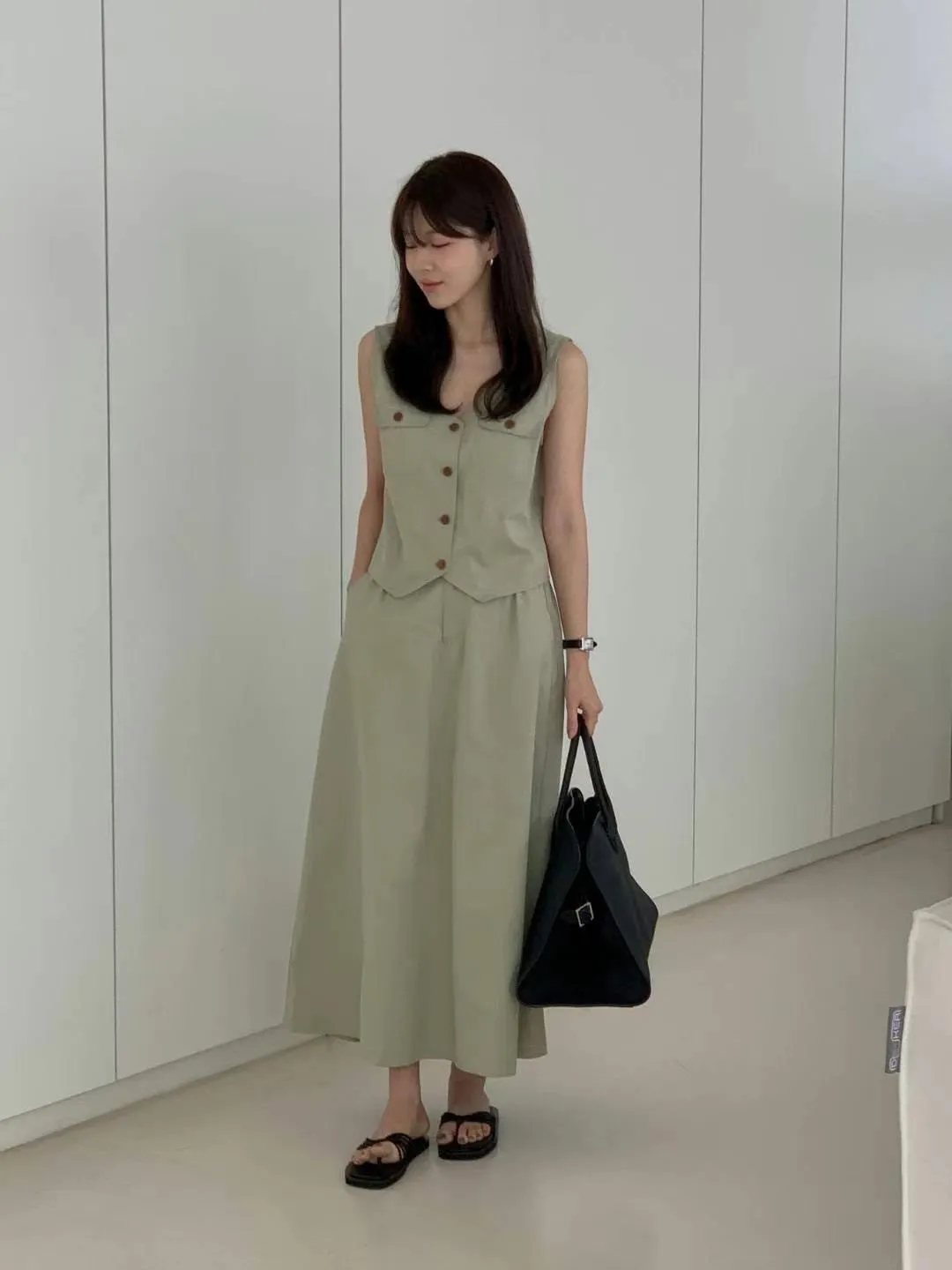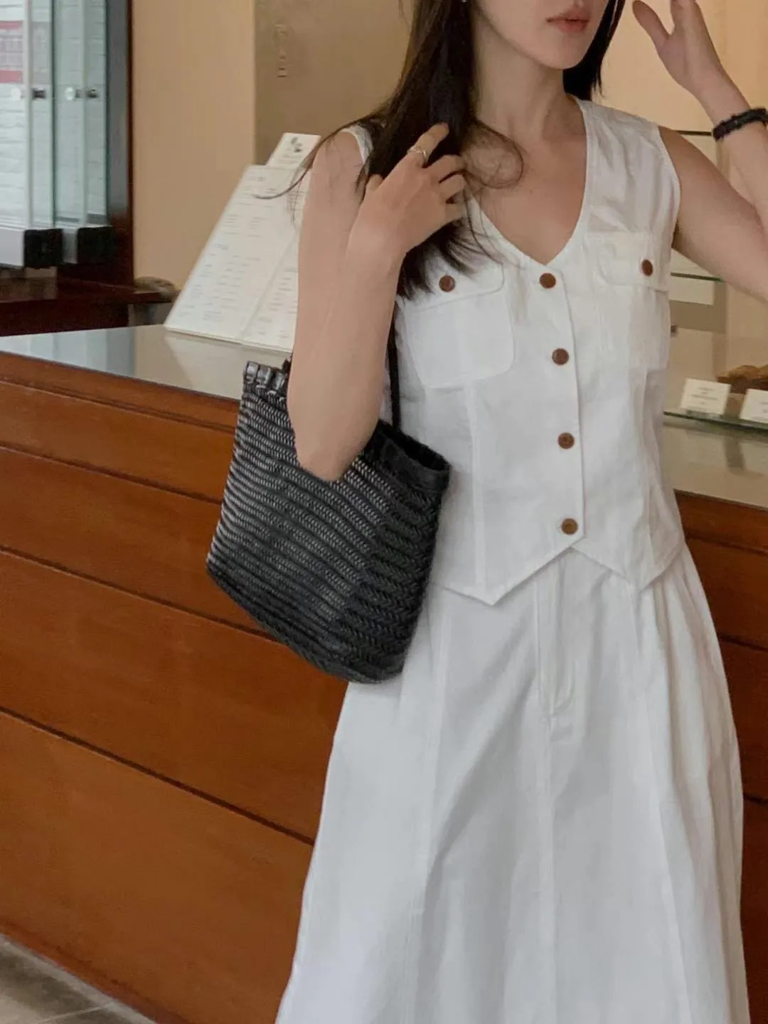 NR313套裝的雙口袋背心 白 綠 卡其 S M 原價$ 特價$699特價限量,只有白S13 M16, 綠S18 M20, 卡其S4特價+1視同購買,購物車無法自行刪除S胸寬43全長50M胸寬45全長50以下卡其色穿搭👇🏻 以下綠色穿搭👇🏻 以下白色穿搭👇🏻 以下顏色,如圖所示