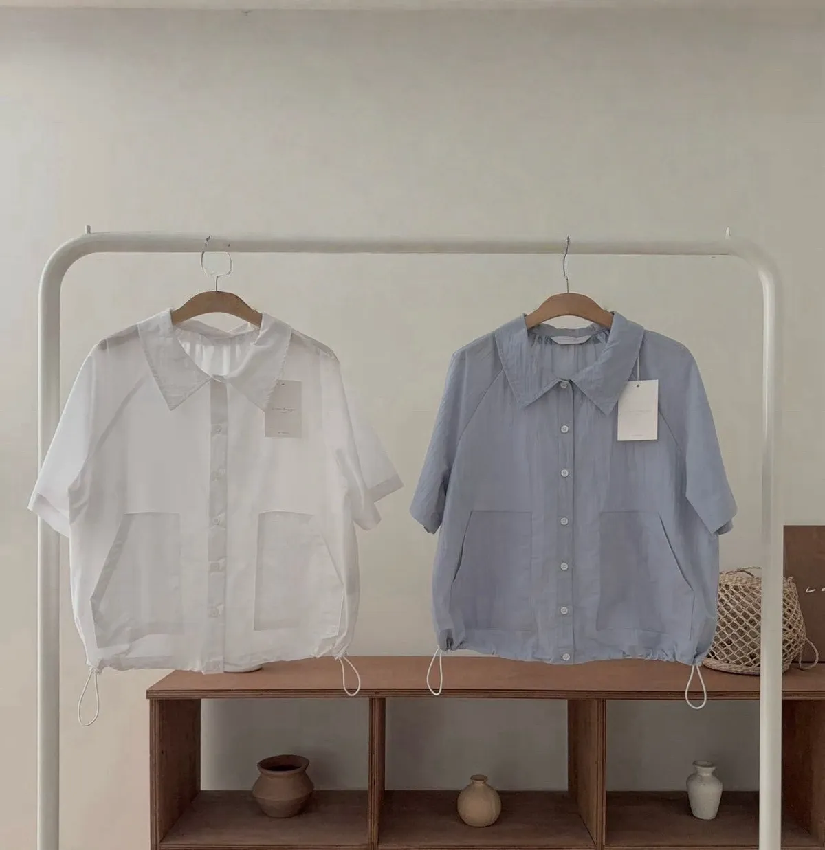棉+尼龍+彈力 下擺抽繩 雙腰口袋 排釦穿脫 可上衣可罩衫
