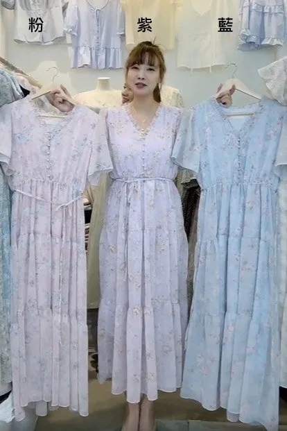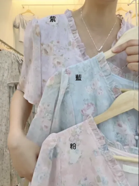 雪紡 推薦款 荷葉V領 視覺高級 版型優秀 細腰綁繩 有內裡