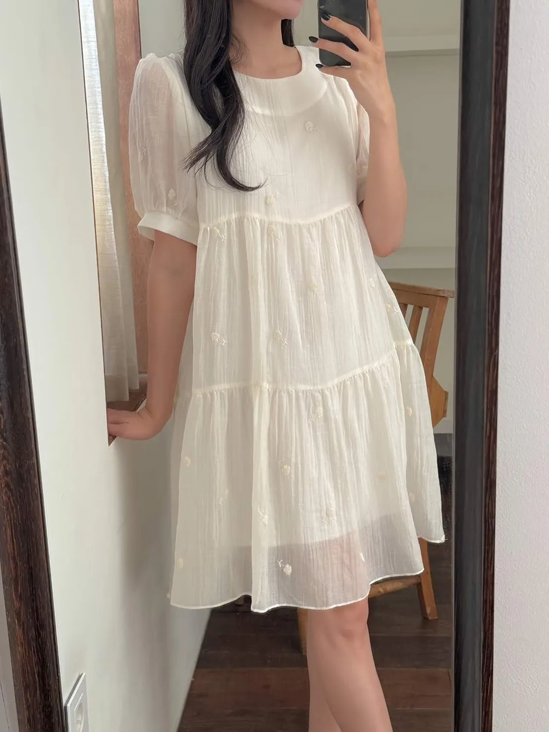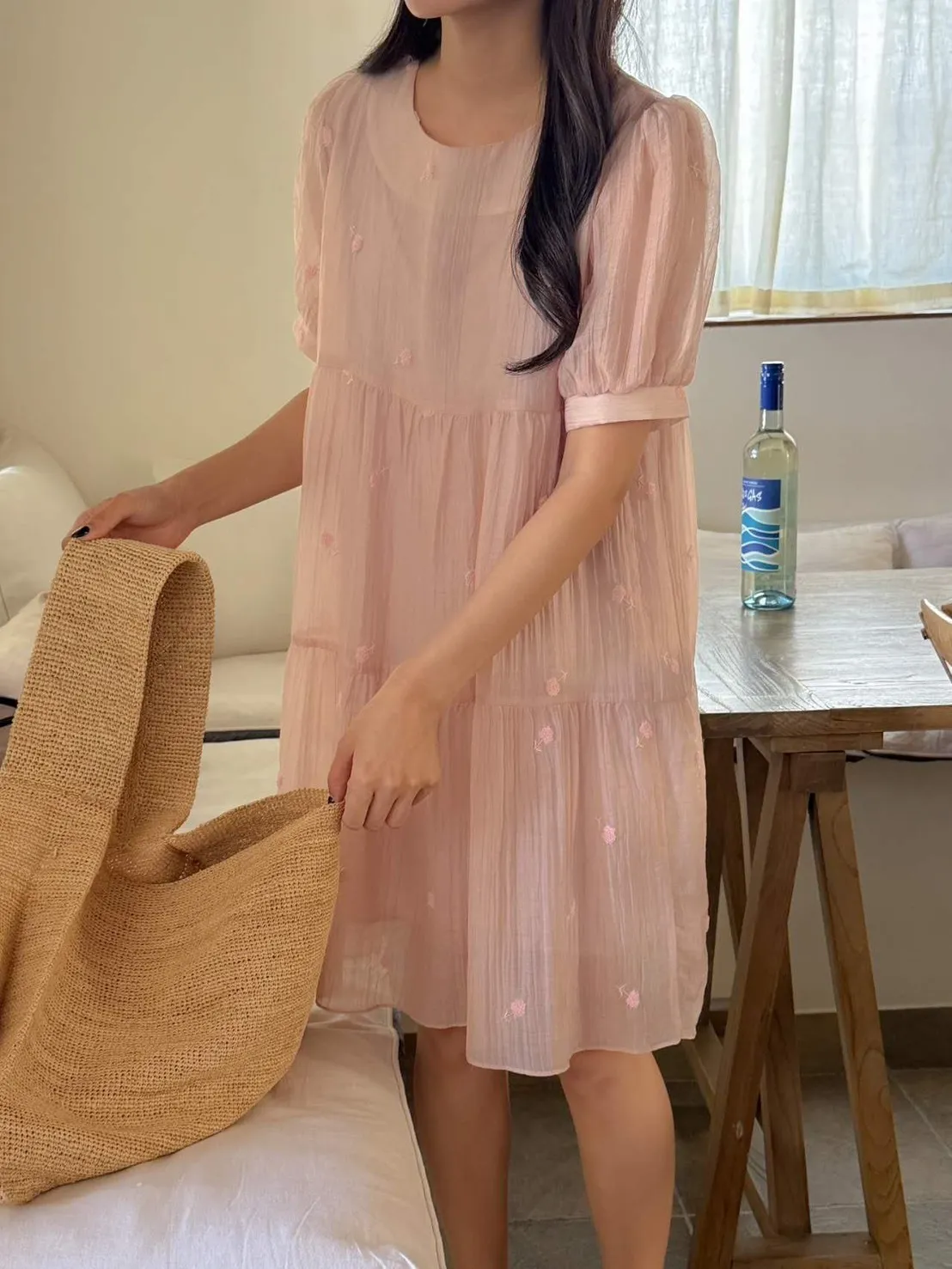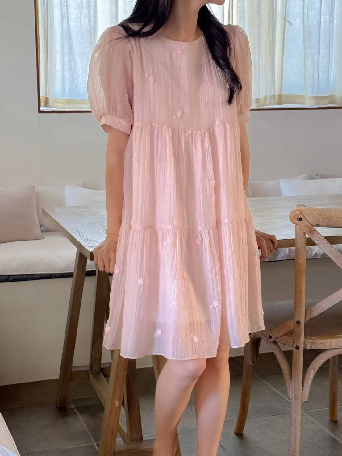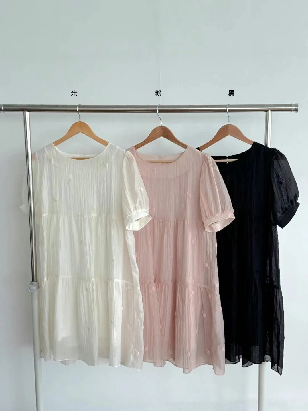 NR471推薦款細緻蒲公英刺繡洋裝 米 粉 黑 官網價$1250 永恆甜甜價$950
