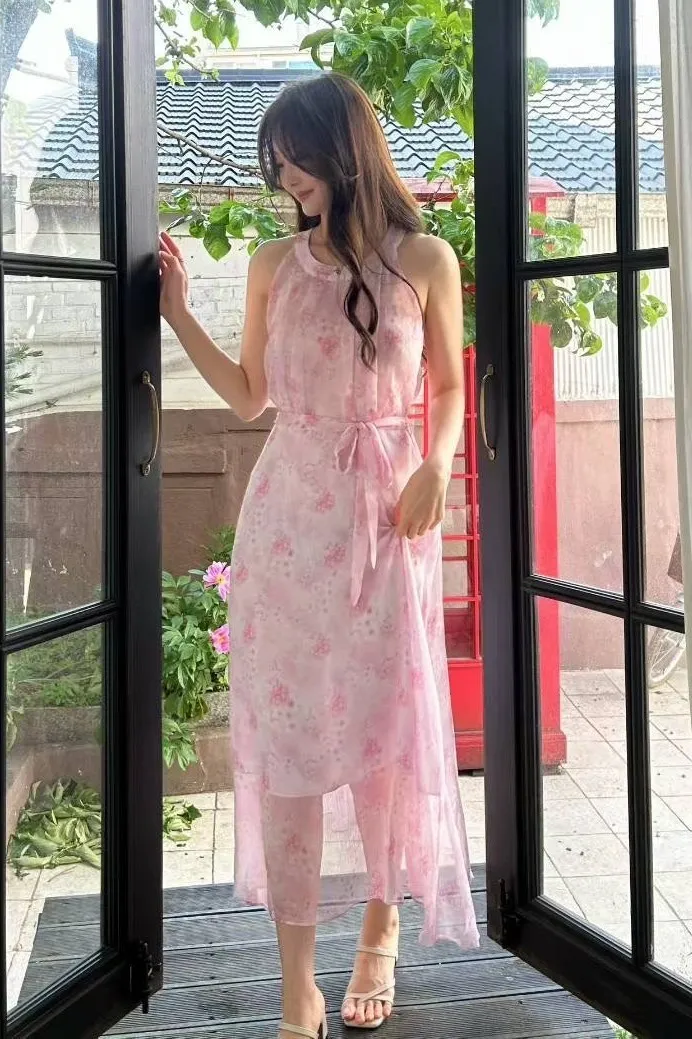髮絲雪紡 氣質削肩 後腰鬆緊有綁帶 後拉鍊 無口袋 有內裡