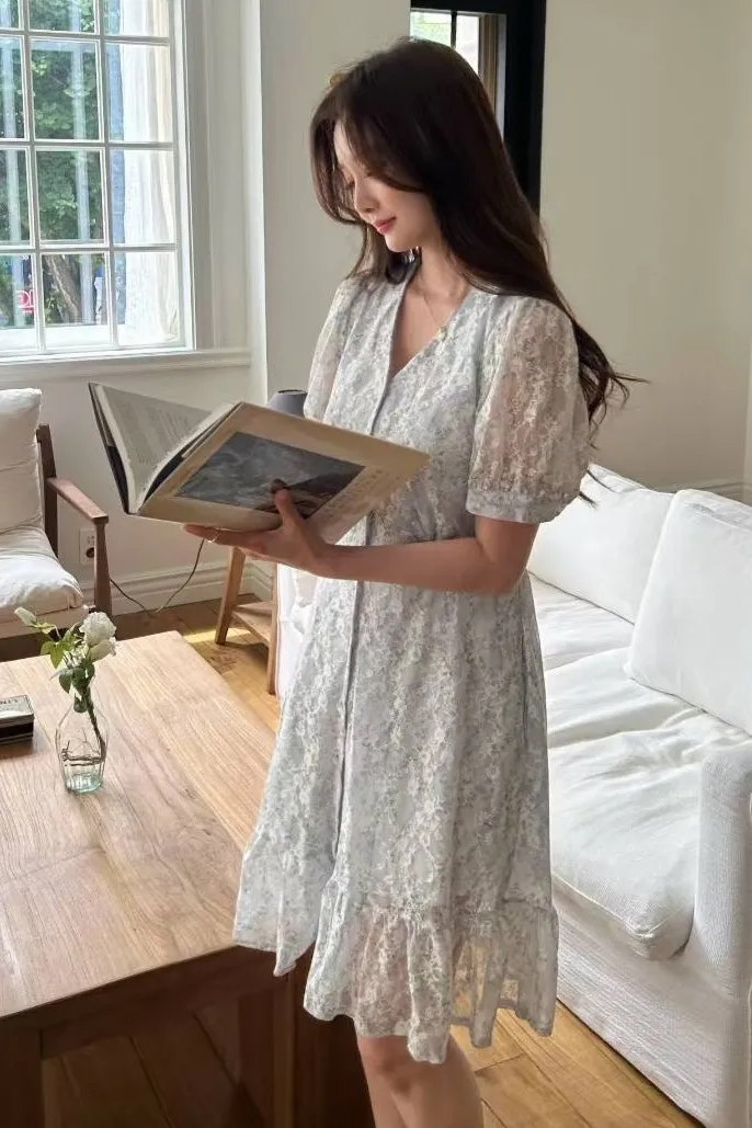雪紡 網紗細絲面料 後腰綁帶 排釦穿脫 腰寬空間佳 V領顯瘦 有內裡有口袋
