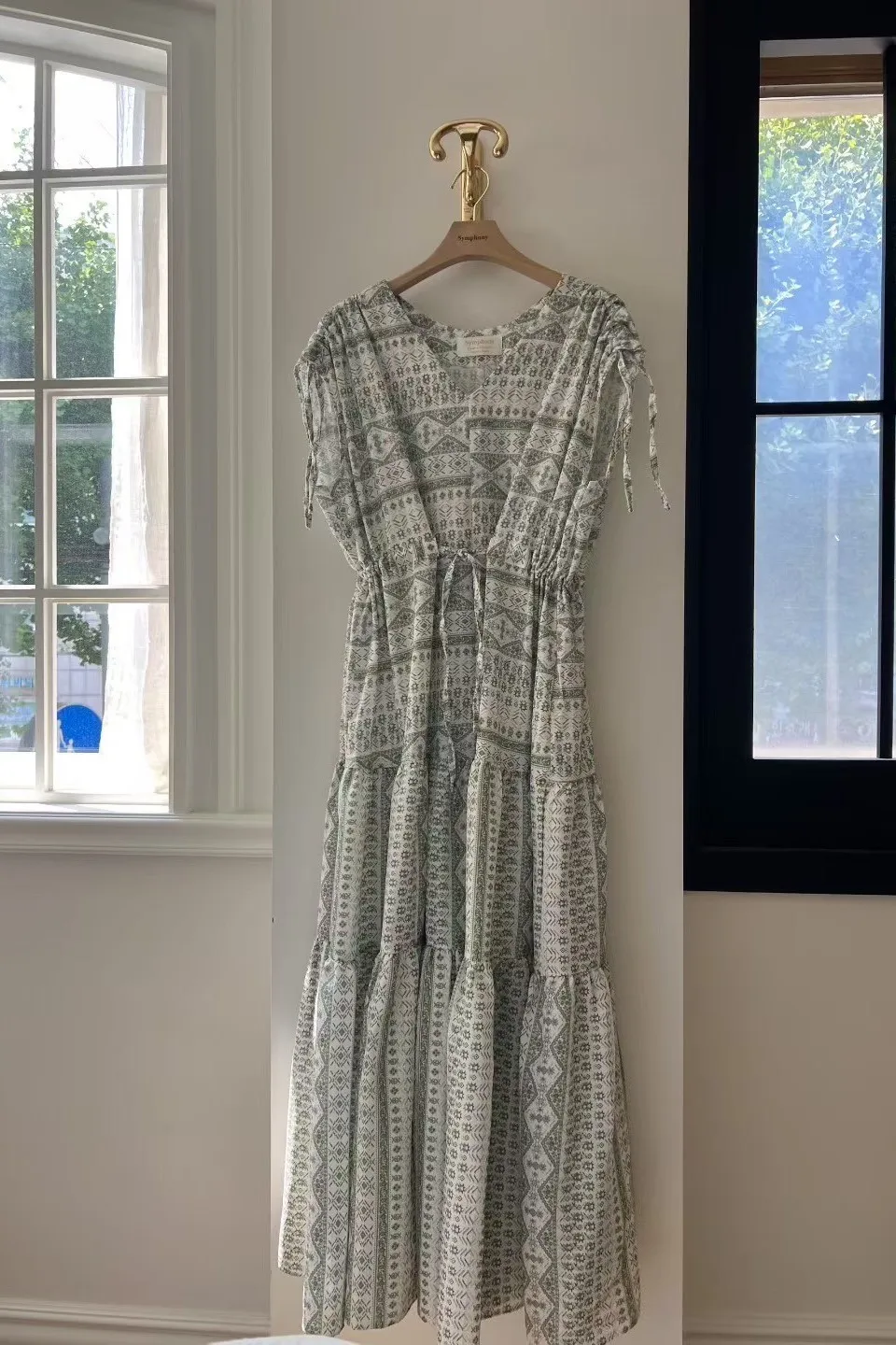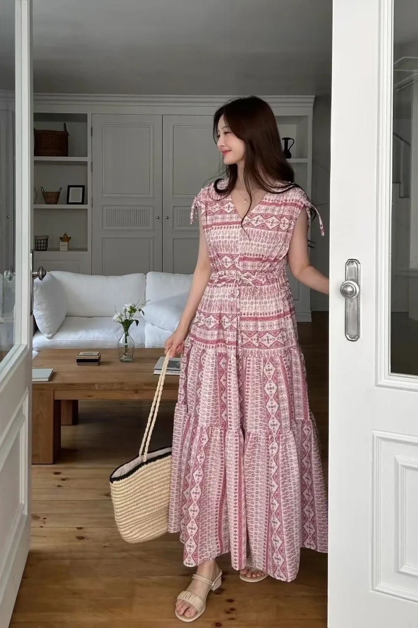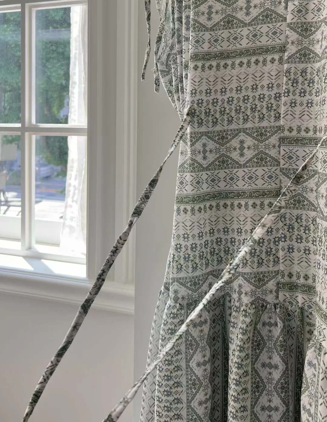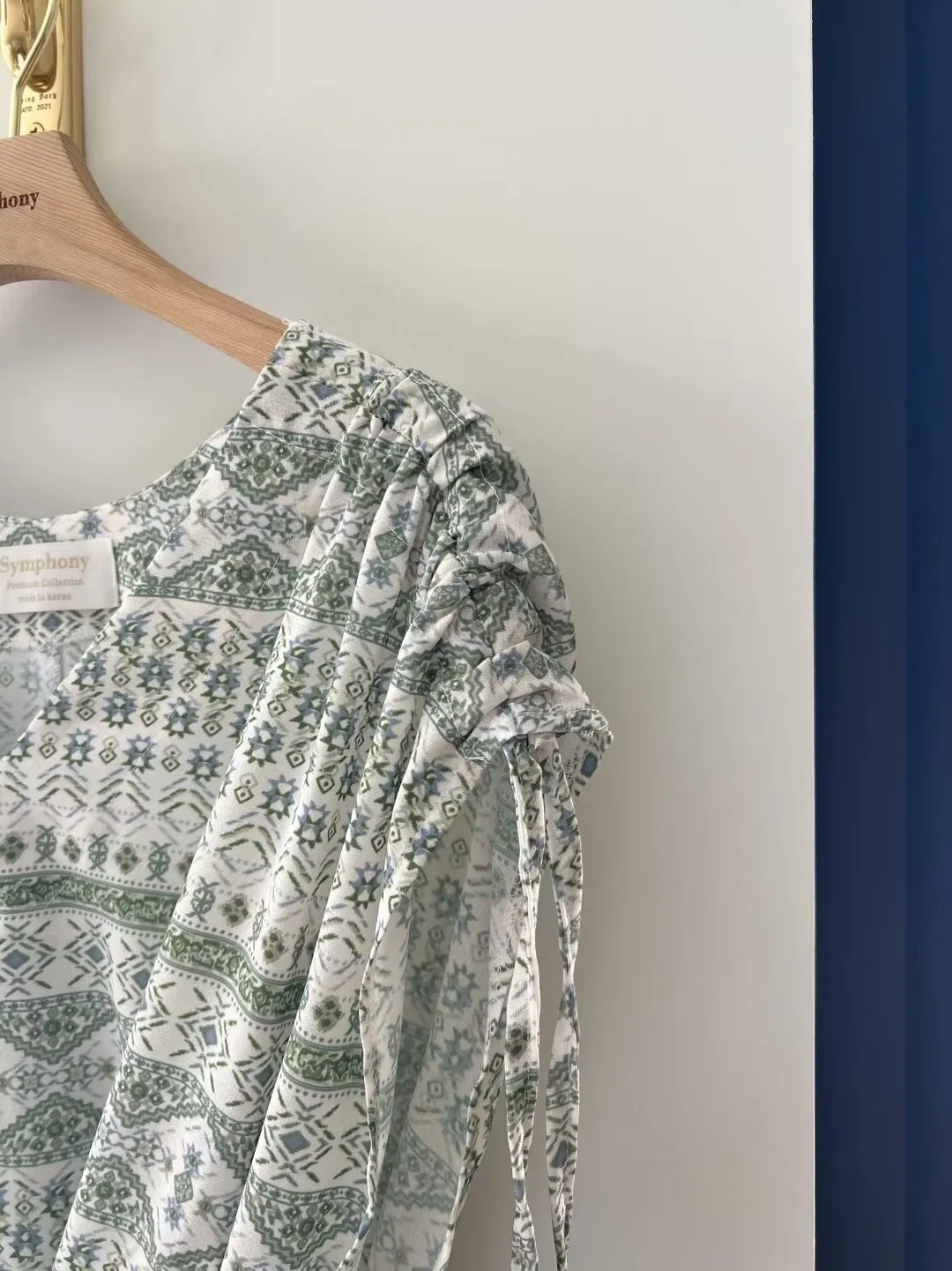 雪紡 雙層裙擺 V領顯瘦 細腰綁繩 袖口綁帶 無內裡 不易皺
